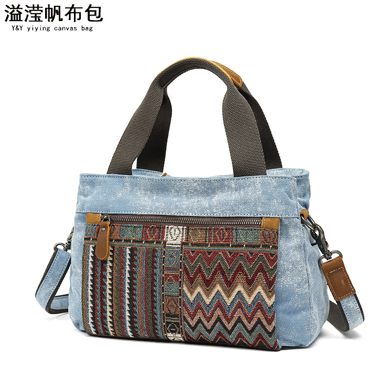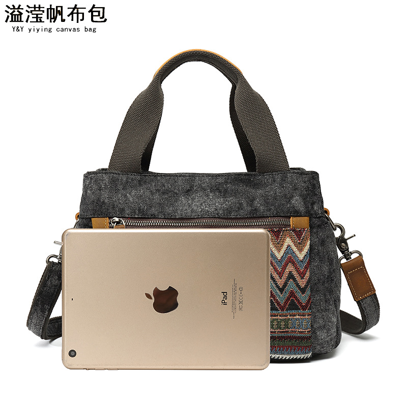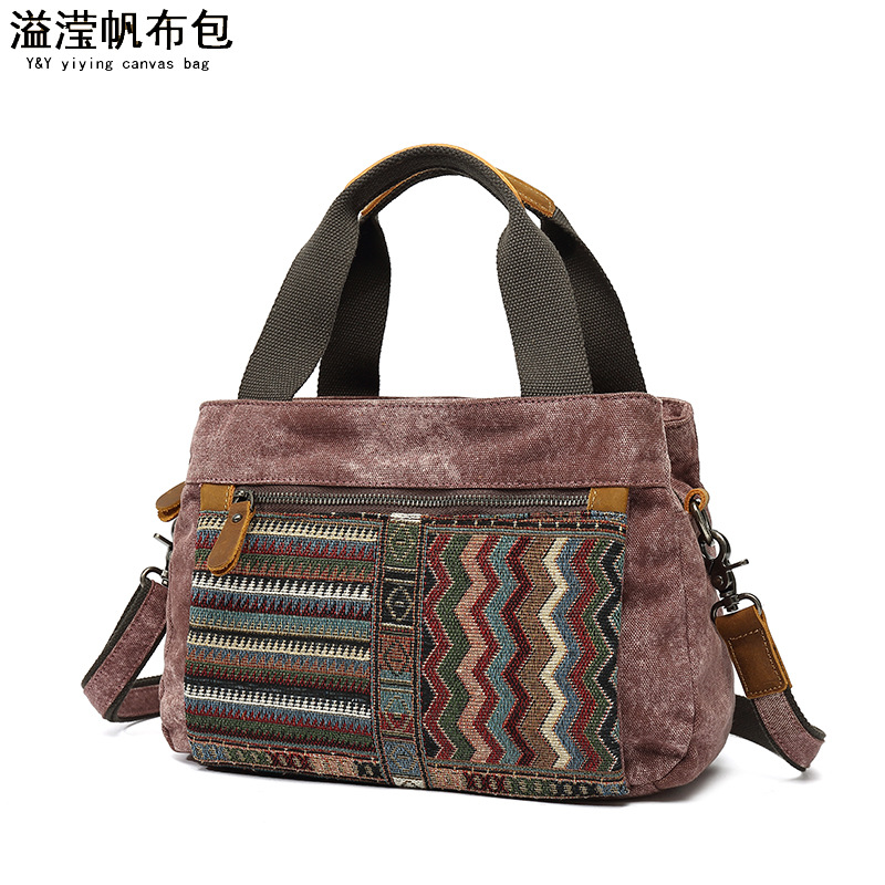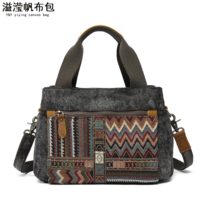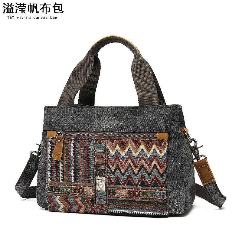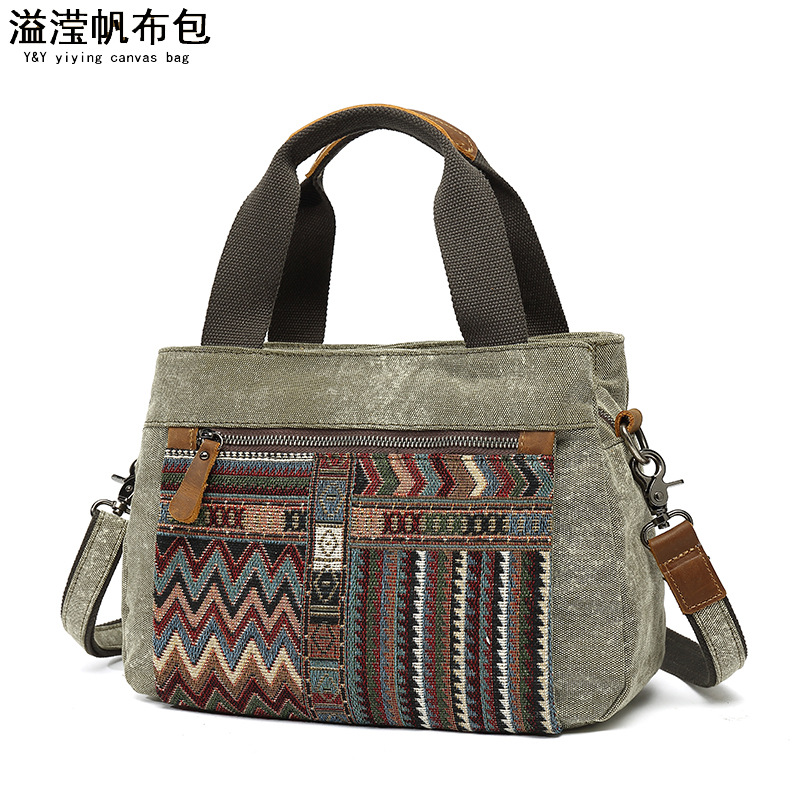 Túi xách nữ dáng đeo v với phong cách dân tộc cổ điển. Chất liệu chính là vải bạt chống nước, kết hợp phần qu cầm làm từ lớp da thật đầu tiên. Họa tiết in trên túi mang nét đặc trưng truyền thống, tạo điểm nhấn sinh động. Túi có kích thước vừa phải, dễ dàng đựng các vật dụng cá nhân thường ngày. Có thể mang bằng tay hoặc khoác v một cách thuận tiện. Thiết kế phù hợp để sử dụng khi đi làm, dạo phố hoặc trong các dịp gặp gỡ thông thường. | Tên sản phẩm: Túi Xách Nữ Chất Liệu Vải Thô Chống Nước Họa Tiết Hoa Phục Cổ Cổ Điển - Túi Ví Nữ | Mã sản phẩm: G0257 - Giá: 990.000đ | Mã nhà sản xuất: GUDIN-G03Hình ảnh sản phẩm
