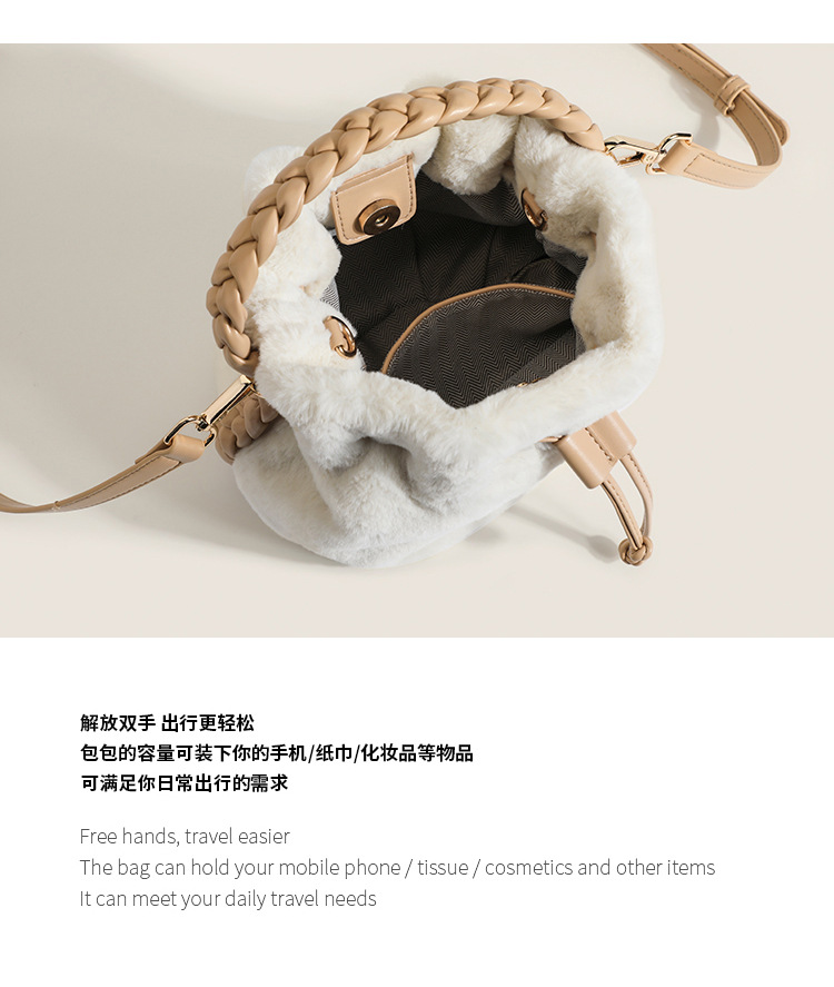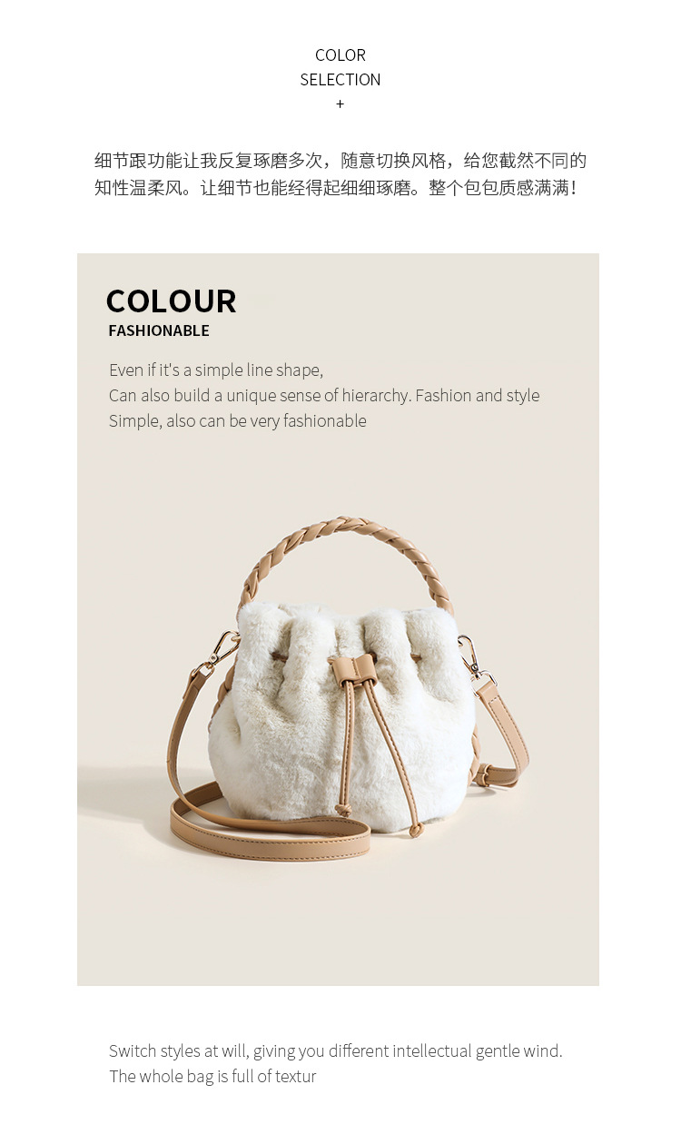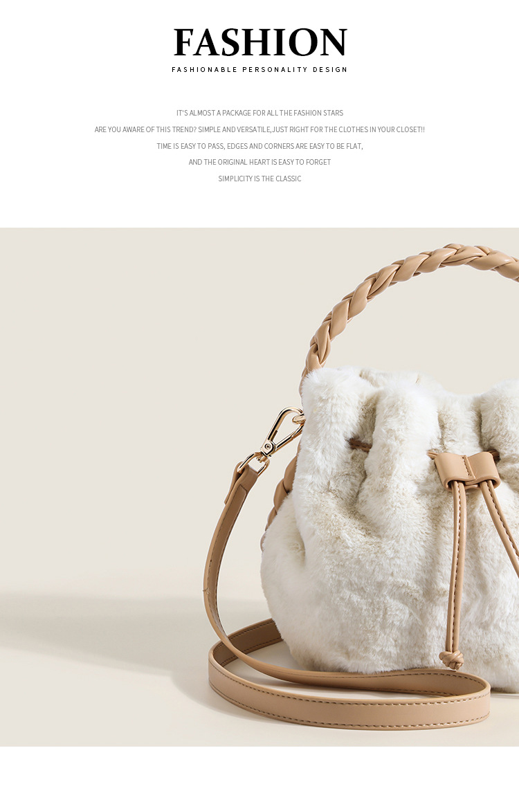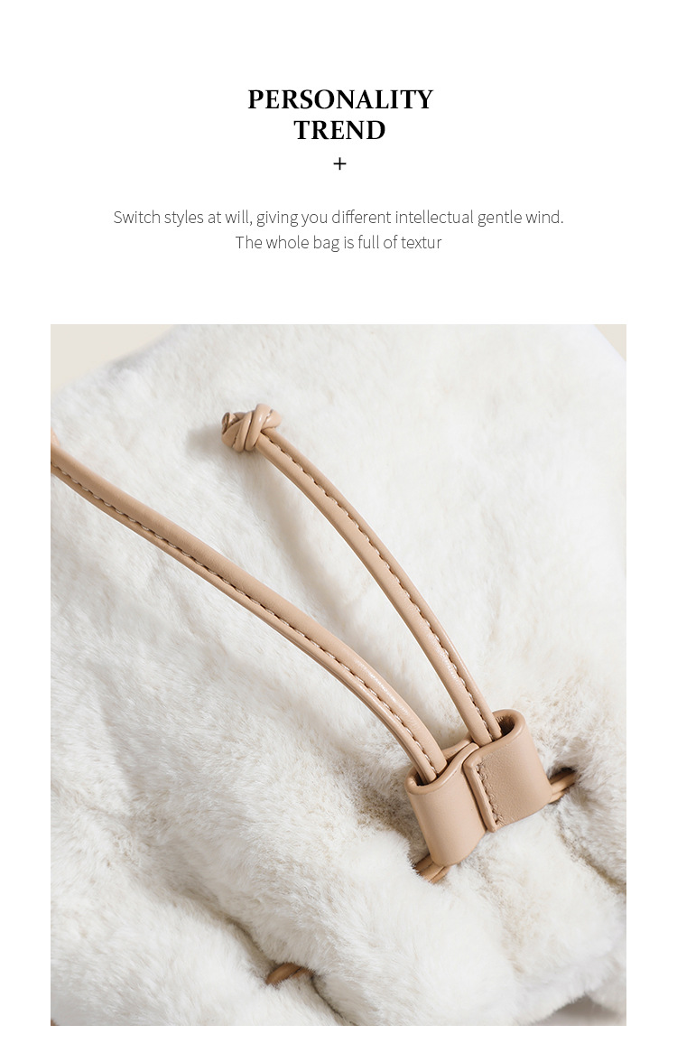 Túi mùa thu đông với chất liệu lông mềm mại, mang đến cảm giác ấm áp và dễ chịu khi chạm vào. Kiểu dáng tròn trịa đáng yêu như một chiếc xô nhỏ, kết hợp cùng màu trắng tinh khôi. Bạn có thể dễ dàng điều chỉnh dây đeo để mang theo nhiều cách: đeo chéo body, khoác v hoặc xách tay tiện lợi. Thiết kế nhỏ gọn nhưng vẫn đủ rộng để đựng các vật dụng cá nhân cần thiết mỗi ngày. Phù hợp cho nhiều dịp sử dụng khác nhau. | Tên sản phẩm: Túi Xách Nữ Hàng Mùa Xuân Thu Đông - Túi Ví Nữ | Mã sản phẩm: A1093 - Giá: 560.000đ | Mã nhà sản xuất: GURELE-G01Hình ảnh sản phẩm