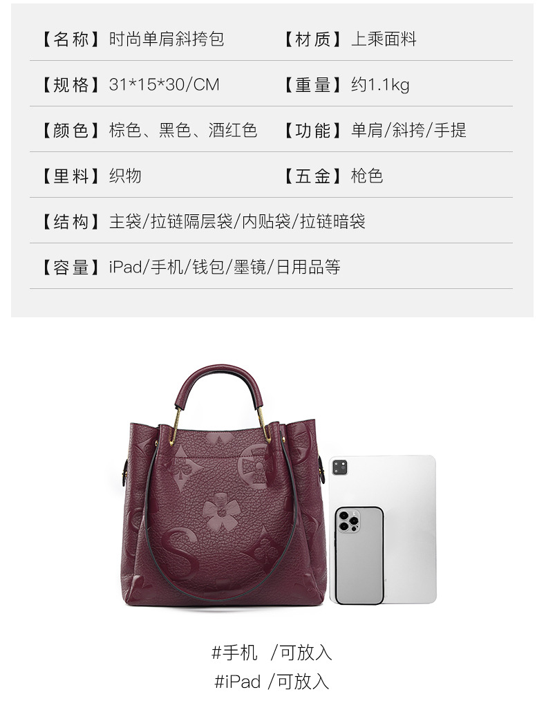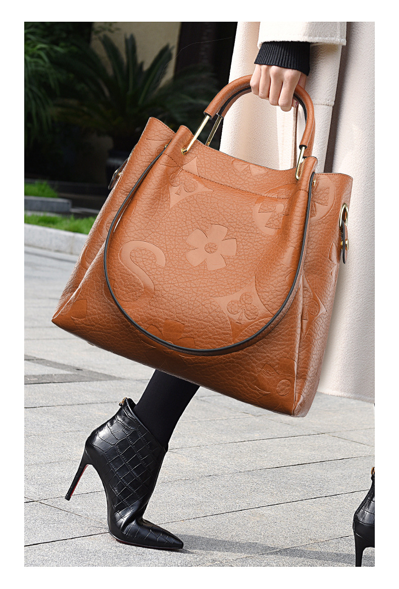 Túi xách thiết kế kiểu dáng thùng nước thời thượng, tạo điểm nhấn với họa tiết ép nổi tinh tế. Sản phẩm có kích thước rộng rãi, đi kèm một túi nhỏ bên trong rất tiện lợi, giúp bạn sắp xếp đồ đạc gọn gàng. Bạn có thể xách tay hoặc mang vắt v một cách linh hoạt. Sử dụng đơn giản, thích hợp cho nhiều dịp đi làm, đi chơi hoặc dạo phố hàng ngày. | Tên sản phẩm: Túi Xách Nữ Họa Tiết Hoa - Túi Ví Nữ | Mã sản phẩm: A5740 - Giá: 1.060.000đ | Mã nhà sản xuất: BADM-G03Hình ảnh sản phẩm