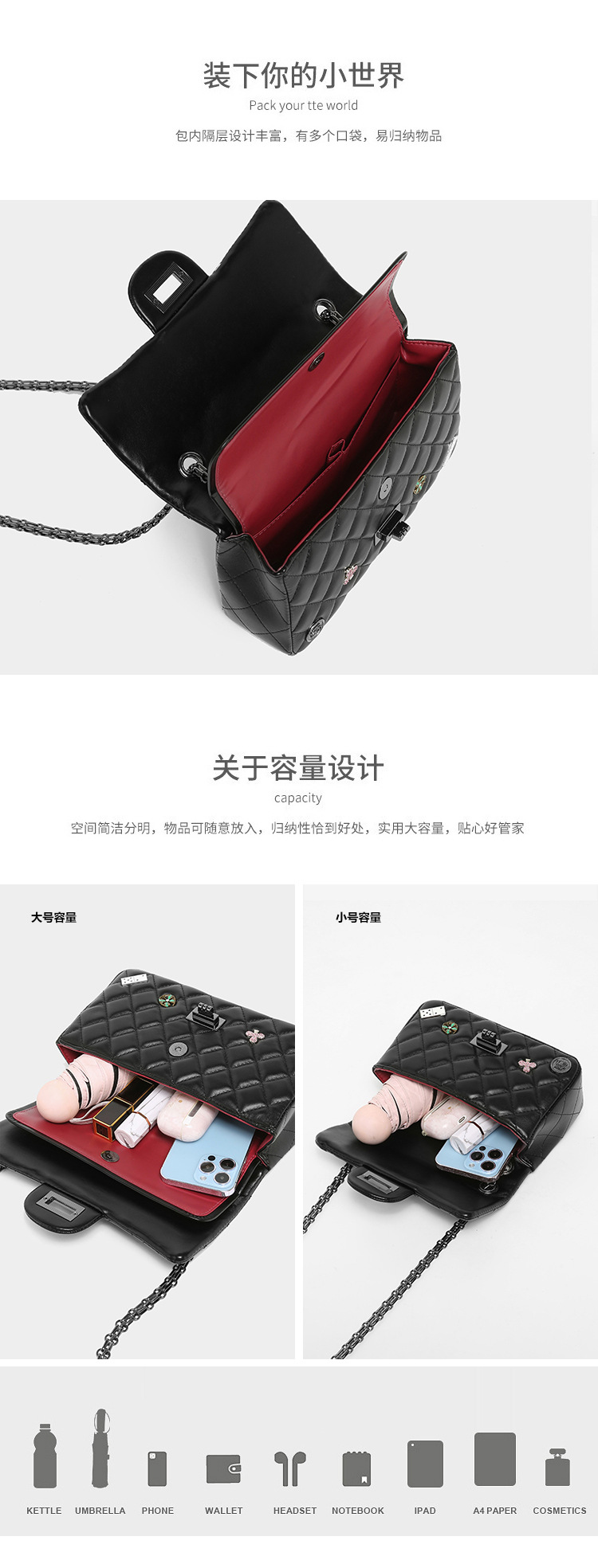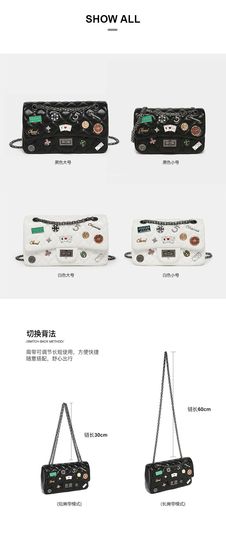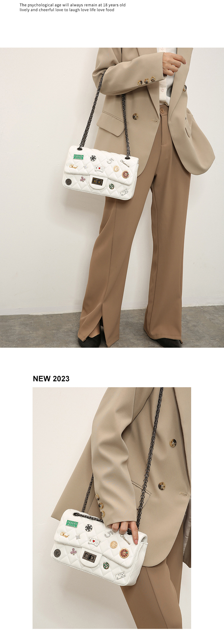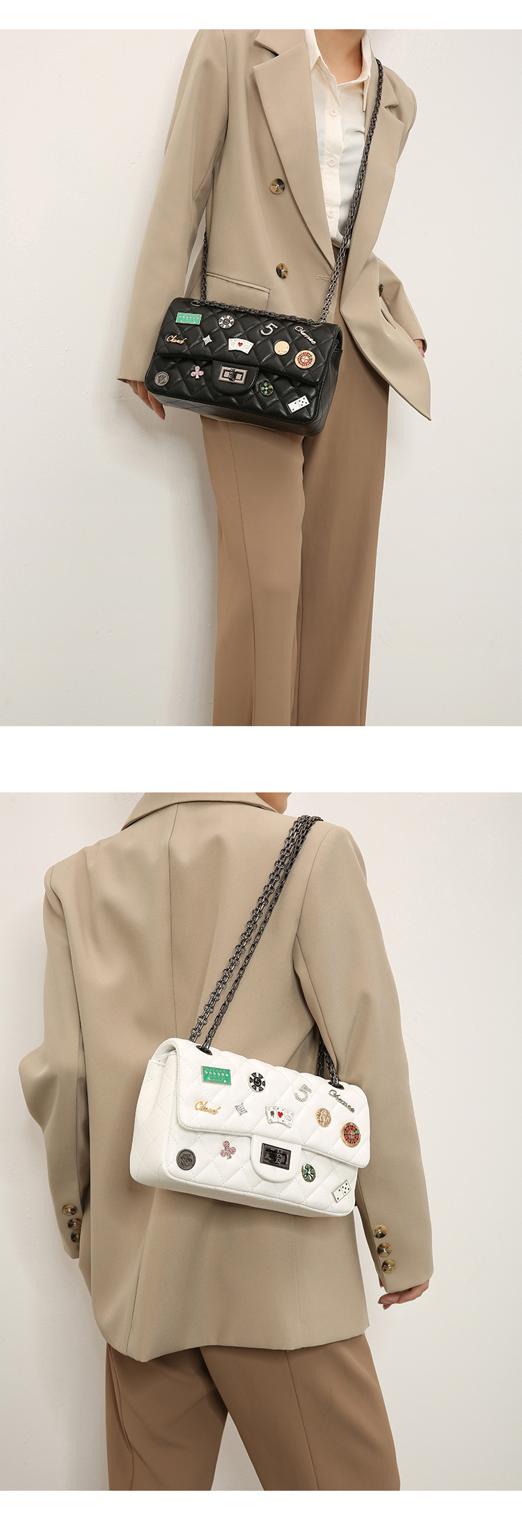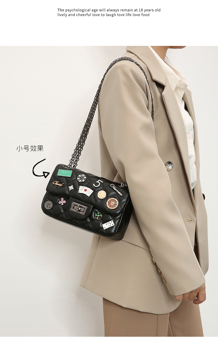 Túi xách nữ mới cho mùa xuân năm nay, mang phong cách thiết kế họa tiết hình thoi đặc trưng và có mặt chữ cùng phù hiệu trang trí. Dây đeo làm bằng dây xích kim loại, có thể điều chỉnh linh hoạt để đeo v hoặc khoác chéo tùy thích. Kiểu dáng nhỏ gọn, phù hợp để sử dụng hằng ngày, đi làm, đi chơi hay dự tiệc. Cách sử dụng đơn giản, chỉ cần đeo lên và kết hợp với nhiều loại trang phục khác nhau. | Tên sản phẩm: Túi Xách Nữ Kẻ Caro Kẻ Caro Hàng Mùa Xuân Thu Đông - Túi Ví Nữ | Mã sản phẩm: A3128 - Giá: 670.000đ | Mã nhà sản xuất: GUDTH-G02Hình ảnh sản phẩm
