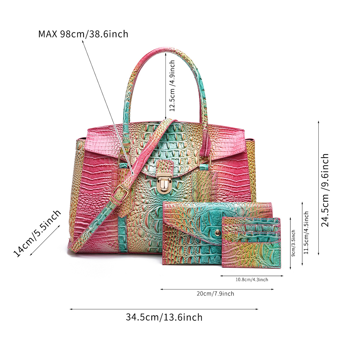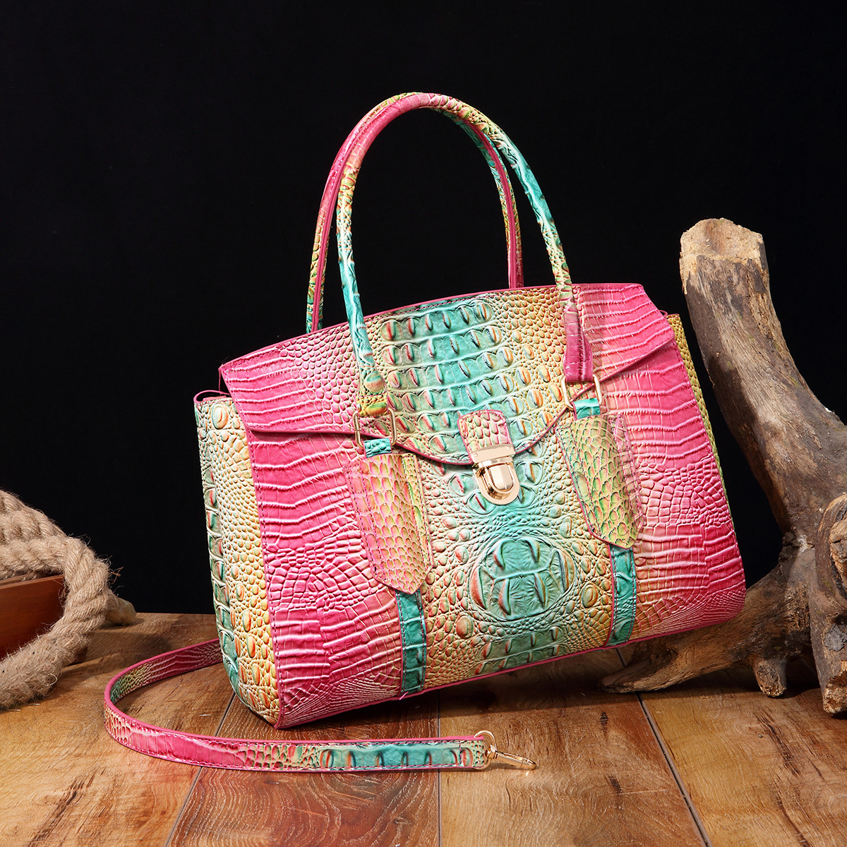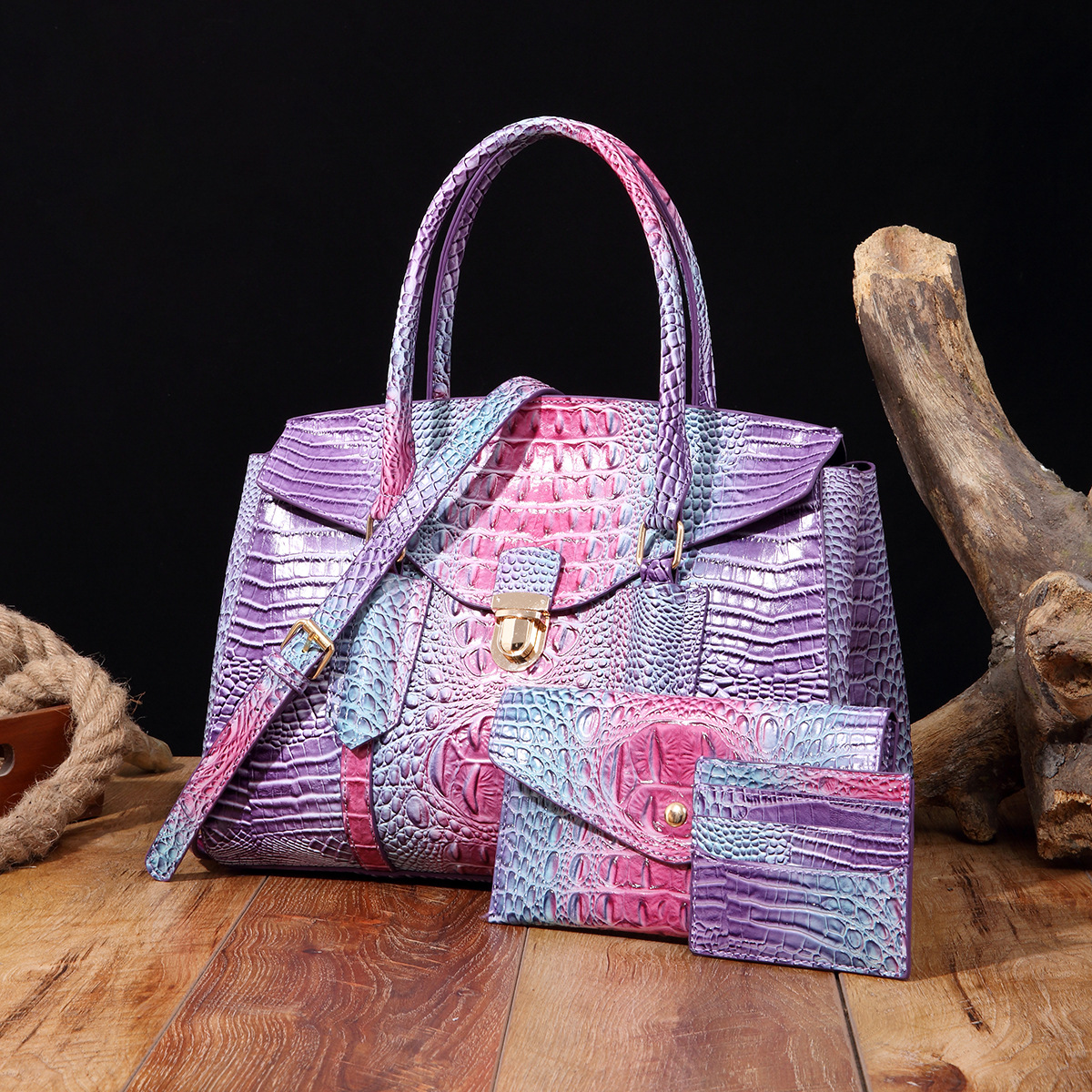 Túi xách tay dáng tròn mang phong cách cổ điển châu Âu, thiết kế thành bộ mẹ con tiện lợi. Mặt ngoài túi có họa tiết vân da cá sấu cùng hiệu ứng ánh sáng đổi màu tinh tế. Bạn có thể đeo túi làm phụ kiện bằng cách xách tay hoặc mang chéo người tùy thích. Bên trong túi lớn có ngăn đựng riêng cho túi nhỏ, giúp sắp xếp các món đồ cá nhân gọn gàng và dễ dàng tìm thấy khi cần. | Tên sản phẩm: Túi Xách Nữ Vân Da Cá Sấu Phong Cách Âu Mỹ - Túi Ví Nữ | Mã sản phẩm: A6497 - Giá: 870.000đ | Mã nhà sản xuất: GUDAT-G03Hình ảnh sản phẩm