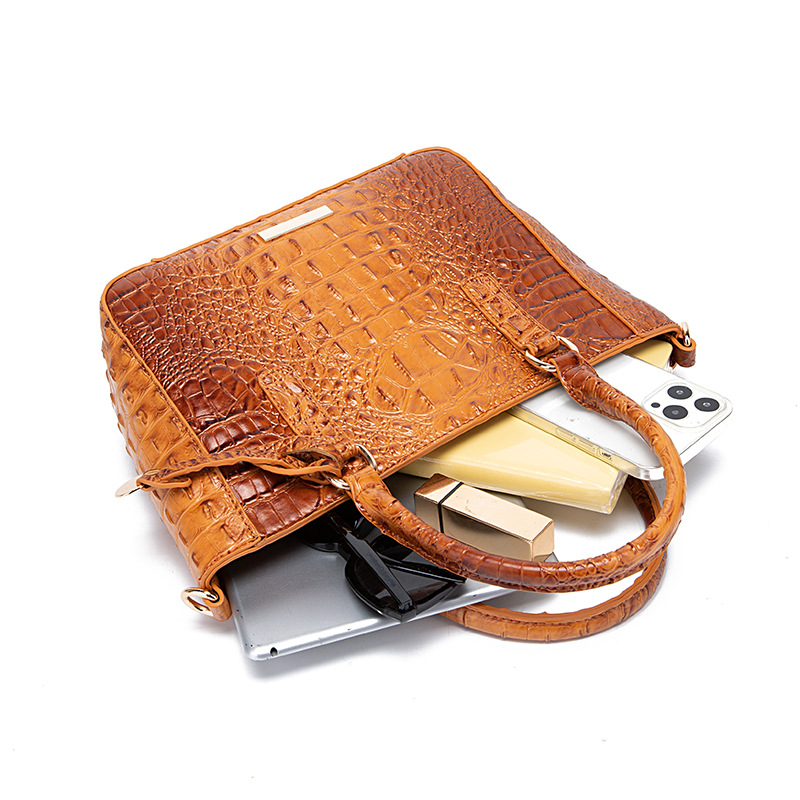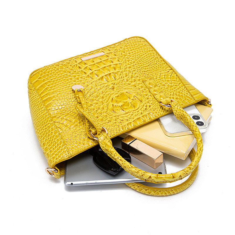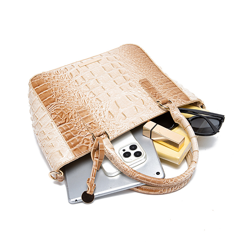 Chiếc túi xách tay mang phong cách cổ điển, được thiết kế dạng túi tote đa năng. Sản phẩm có thể đeo làm túi xách tay, khoác dưới cánh tay hoặc đeo chéo người một cách linh hoạt. Bề mặt túi có họa tiết da cá sấu ấn tượng, tạo điểm nhấn riêng biệt. Chất liệu bền đẹp, kết cấu chắc chắn với không gian rộng rãi bên trong. Phù hợp để sử dụng hàng ngày khi đi làm, đi chơi hay dạo phố. Cách sử dụng đơn giản, chỉ cần điều chỉnh qu đeo theo ý thích là đã có ngay phong cách thời trang. | Tên sản phẩm: Túi Xách Nữ Vân Da Cá Sấu Phong Cách Âu Mỹ - Túi Ví Nữ | Mã sản phẩm: A6520 - Giá: 780.000đ | Mã nhà sản xuất: GUDAT-G02Hình ảnh sản phẩm