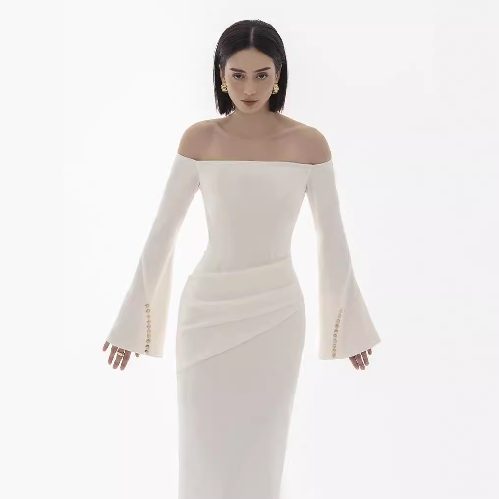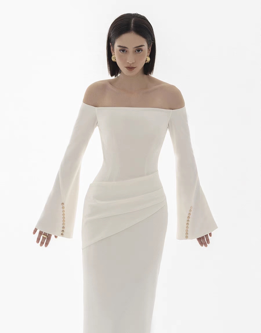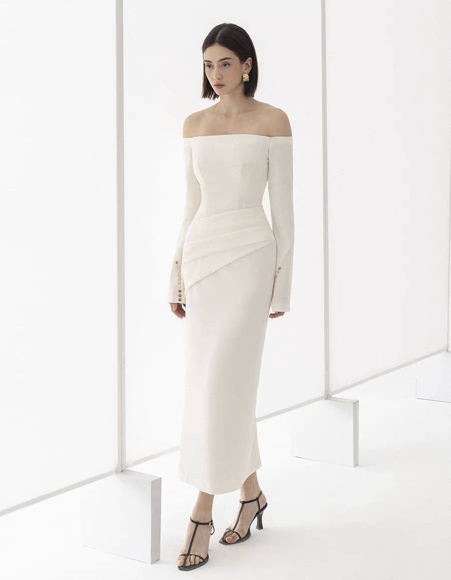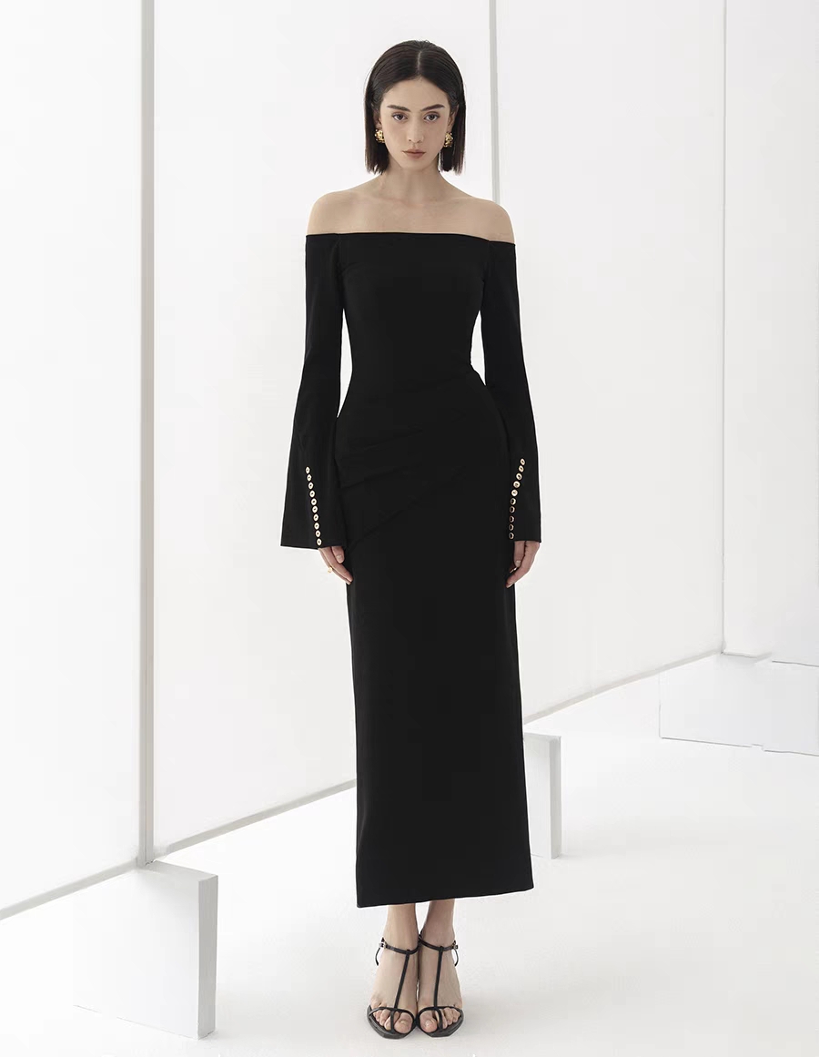 Váy dài tôn dáng với phần cổ khoét ngang v tạo nên điểm nhấn thanh lịch. Tay váy xòe nhẹ ở phần cổ tay, giúp bộ trang phục thêm phần duyên dáng và uyển chuyển. Thiết kế ôm nhẹ ở eo rồi xòe ra ở phần thân dưới, tạo đường nét cơ thể mềm mại. Sản phẩm phù hợp để mặc đi làm, dự tiệc hoặc những dịp gặp mặt. Có thể giặt bằng tay hoặc máy với chế độ nhẹ để giữ form váy bền đẹp. | Tên sản phẩm: Váy Đầm Liền Thân Dáng Dài Nữ - Thời Trang Nữ | Mã sản phẩm: K6740 - Giá: 2.760.000đ | Mã nhà sản xuất: FORYCT-G06Hình ảnh sản phẩm