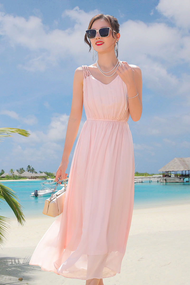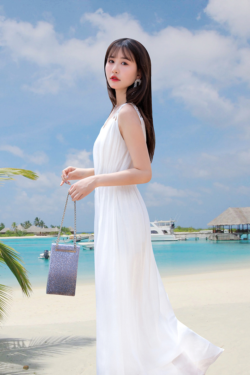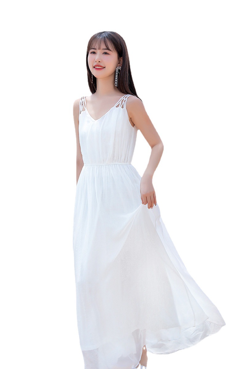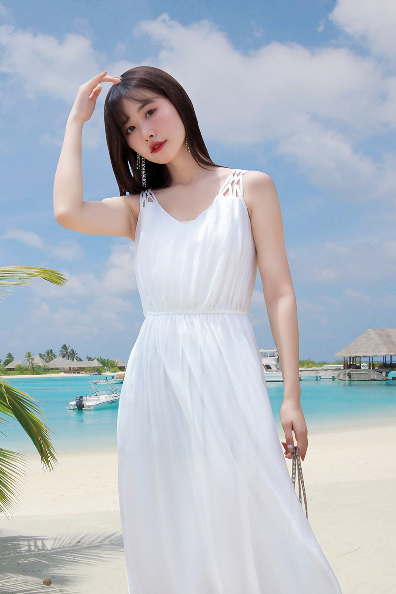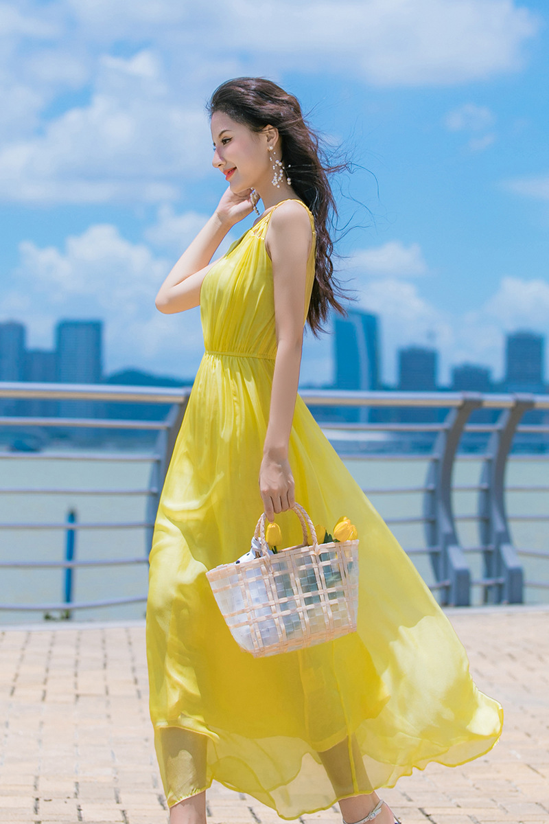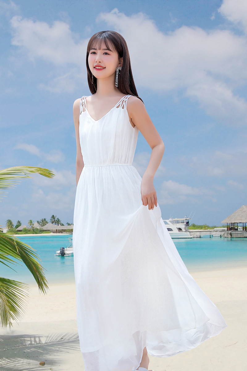 Chiếc váy dài mang phong cách dân gian với cổ chữ V tôn dáng. Váy được làm từ chất liệu tơ lụa mềm mại, thoáng mát, toàn thân màu trắng tinh khôi. Phần eo có dây thun co giãn nhẹ nhàng, ôm vừa vặn và thoải mái. Bạn có thể mặc khi đi dạo biển, dự tiệc nhẹ hay trong những dịp thường ngày. Sản phẩm dễ dàng giặt bằng tay và phơi trong bóng râm. | Tên sản phẩm: Váy Đầm Liền Thân Dáng Dài Nữ Chất Liệu Lụa Tơ Tằm Cổ Chữ V - Thời Trang Nữ | Mã sản phẩm: H8307 - Giá: 1.780.000đ | Mã nhà sản xuất: SHDTR-G05Hình ảnh sản phẩm