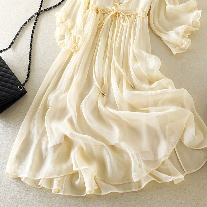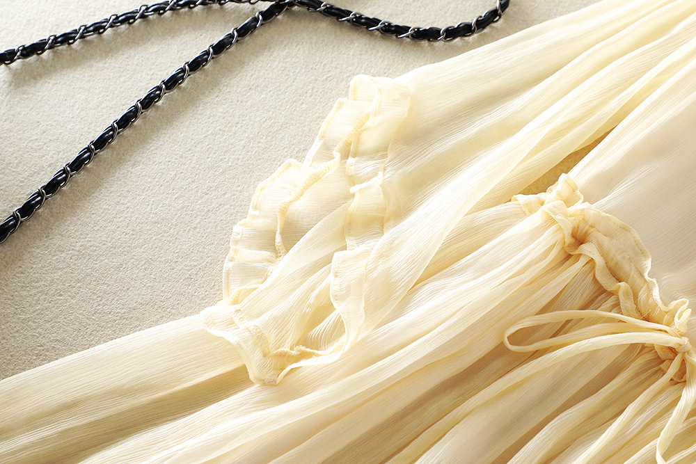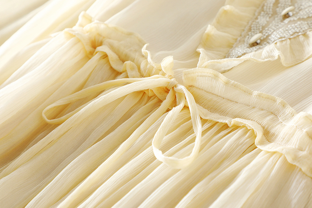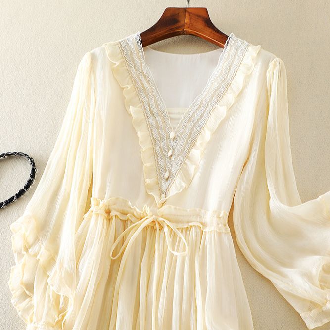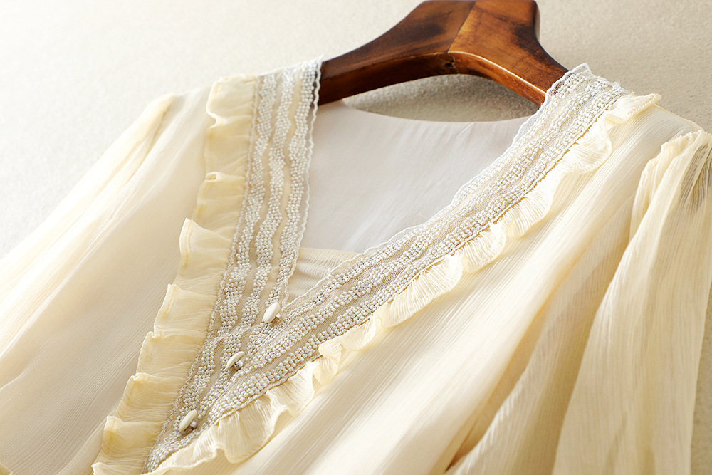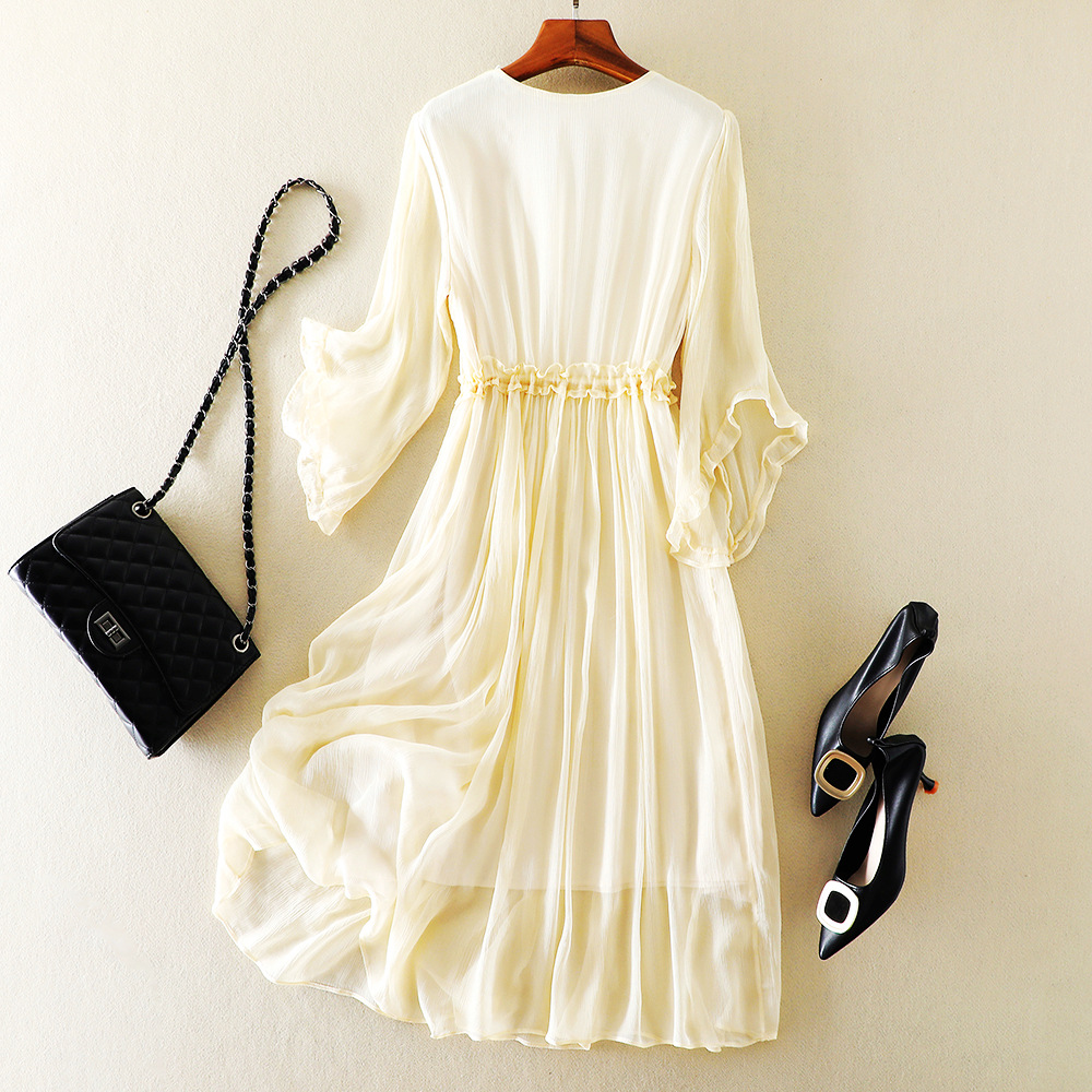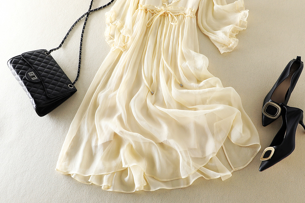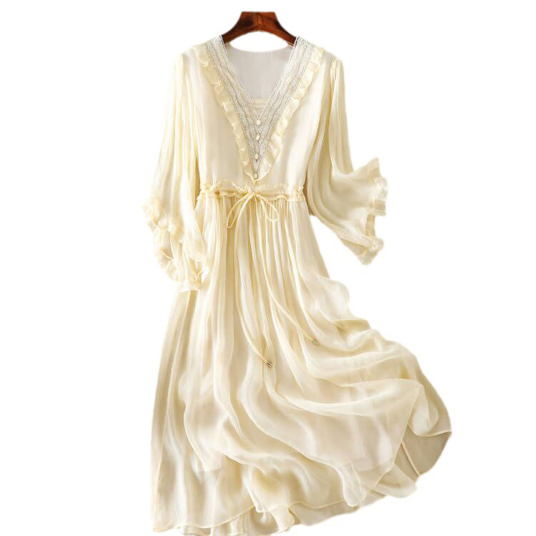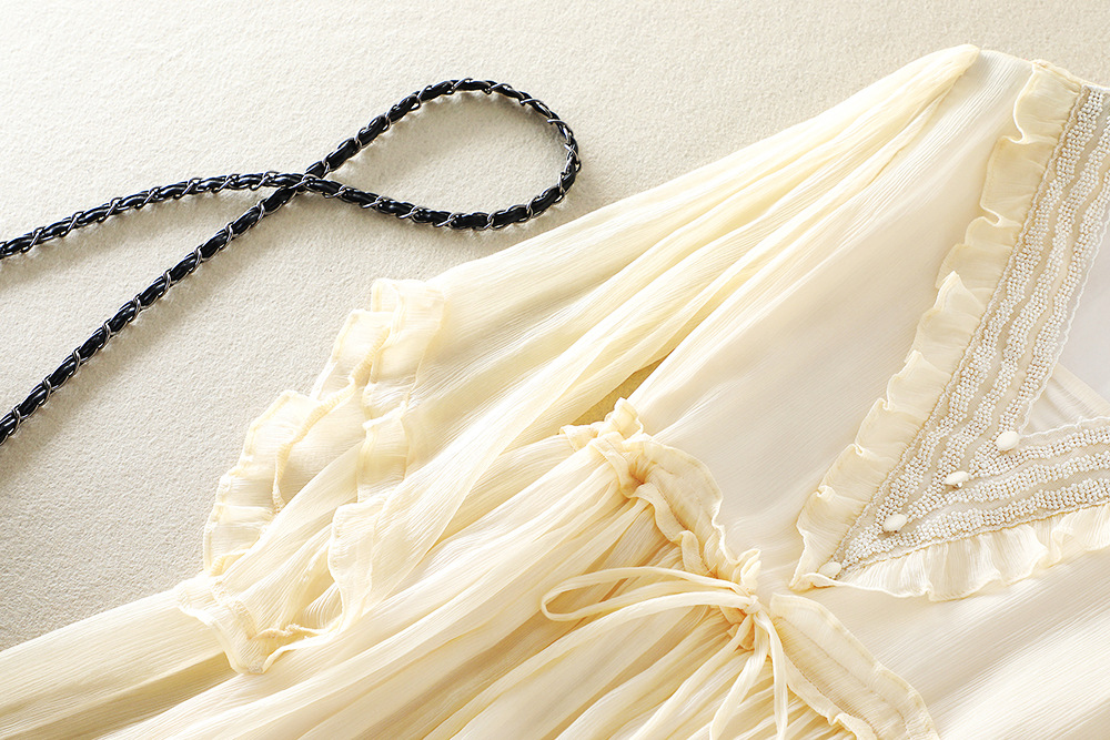 Chiếc váy dành cho mùa hè với chất liệu tơ tằm mềm mại, mang đến cảm giác mát mẻ và dễ chịu. Thiết kế kiểu dáng Pháp thanh lịch với cổ chữ V tôn dáng, điểm nhấn là đường viền ren tinh tế dọc theo phần cổ và tay áo. Sản phẩm phù hợp cho nhiều dịp khác nhau, từ những buổi gặp mặt thân mật đến các sự kiện đòi hỏi sự chỉn chu. Khi giặt, nên vò nhẹ nhàng bằng nước lạnh và phơi nơi râm mát để giữ form váy và chất vải được bền đẹp. | Tên sản phẩm: Váy Đầm Liền Thân Dáng Dài Nữ Chất Liệu Lụa Tơ Tằm Họa Tiết Hoa Hàng Mùa Hè - Thời Trang Nữ | Mã sản phẩm: H8336 - Giá: 2.550.000đ | Mã nhà sản xuất: SHDTR-G06Hình ảnh sản phẩm