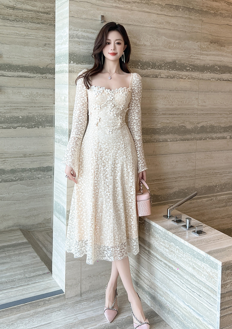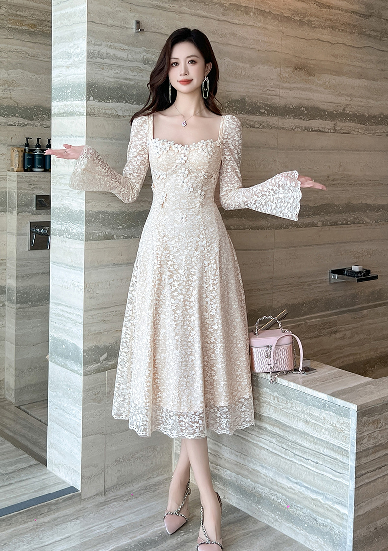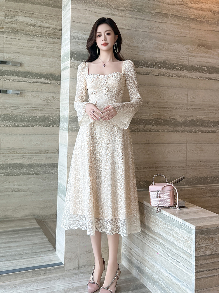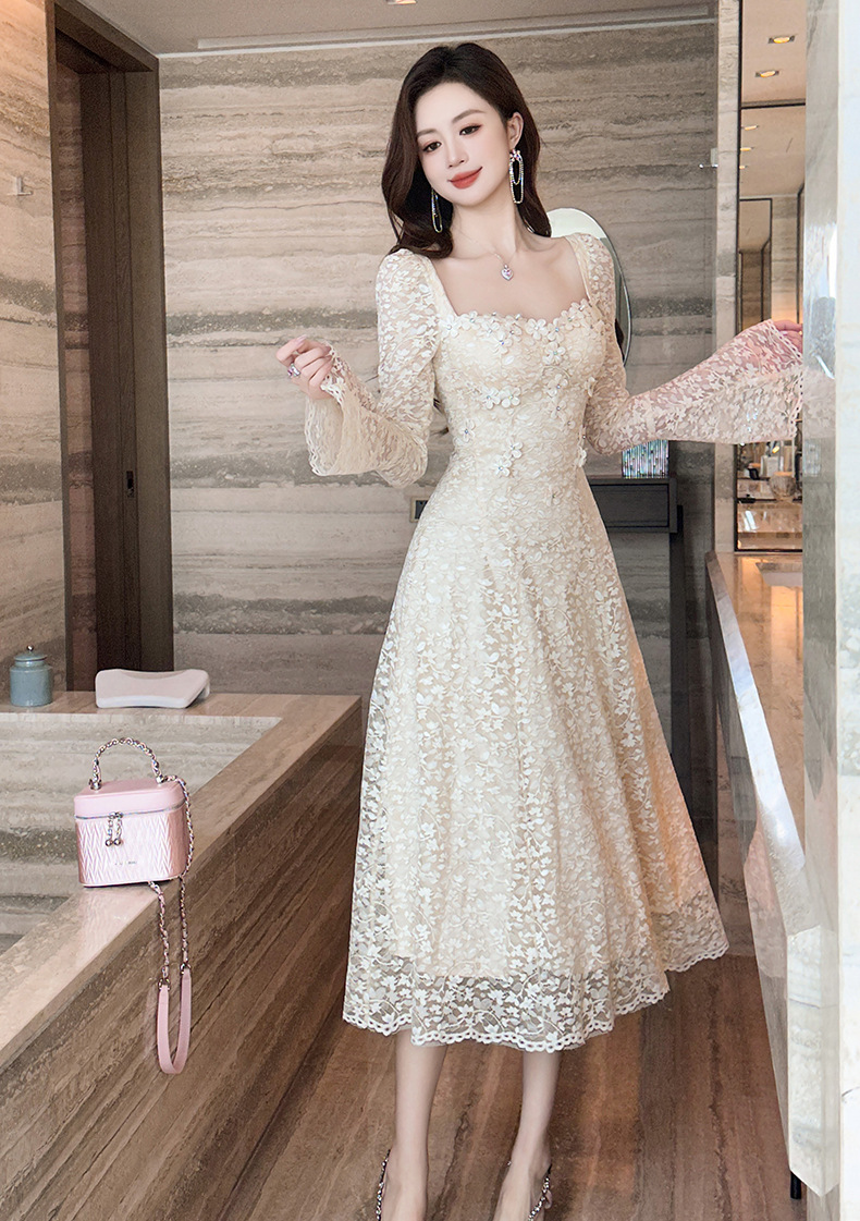 Chiếc đầm dài tay qua gối cho nàng thêm phần dịu dàng, duyên dáng. Thiết kế cổ vuông kiểu cách, eo thắt nhẹ nhàng tôn lên những đường nét cơ thể. Điểm nhấn là chi tiết ren hoa văn hình cánh hoa tinh tế, tạo nên vẻ đẹp nữ tính và lãng mạn. Chất vải mềm mại, thoải mái cho những ngày thu se lạnh. Dễ dàng phối cùng giày cao gót hay giày bệt để đi làm, dạo phố hay dự tiệc. | Tên sản phẩm: Váy Đầm Liền Thân Dáng Dài Nữ Chất Liệu Ren Dài Quá Gối Họa Tiết Hoa Hàng Mùa Xuân Thu Đông - Thời Trang Nữ | Mã sản phẩm: B1235 - Giá: 1.440.000đ | Mã nhà sản xuất: CHDG-G04Hình ảnh sản phẩm