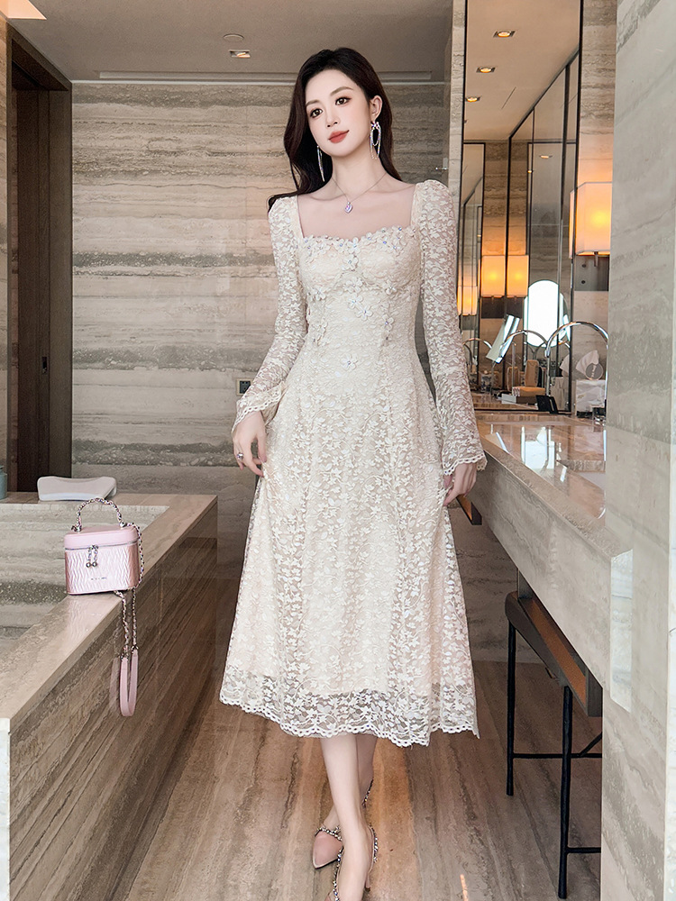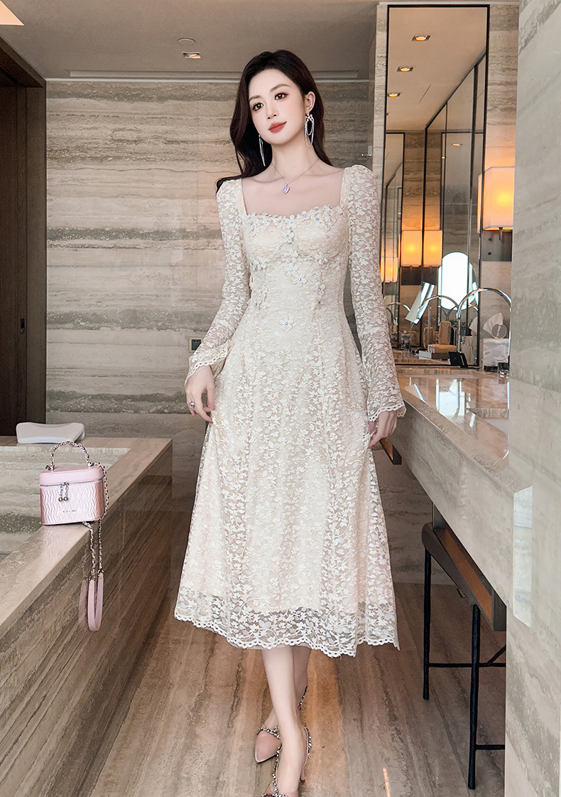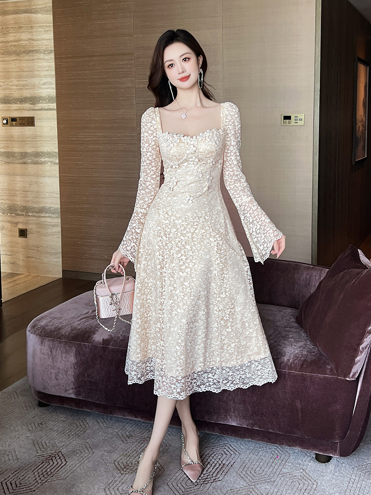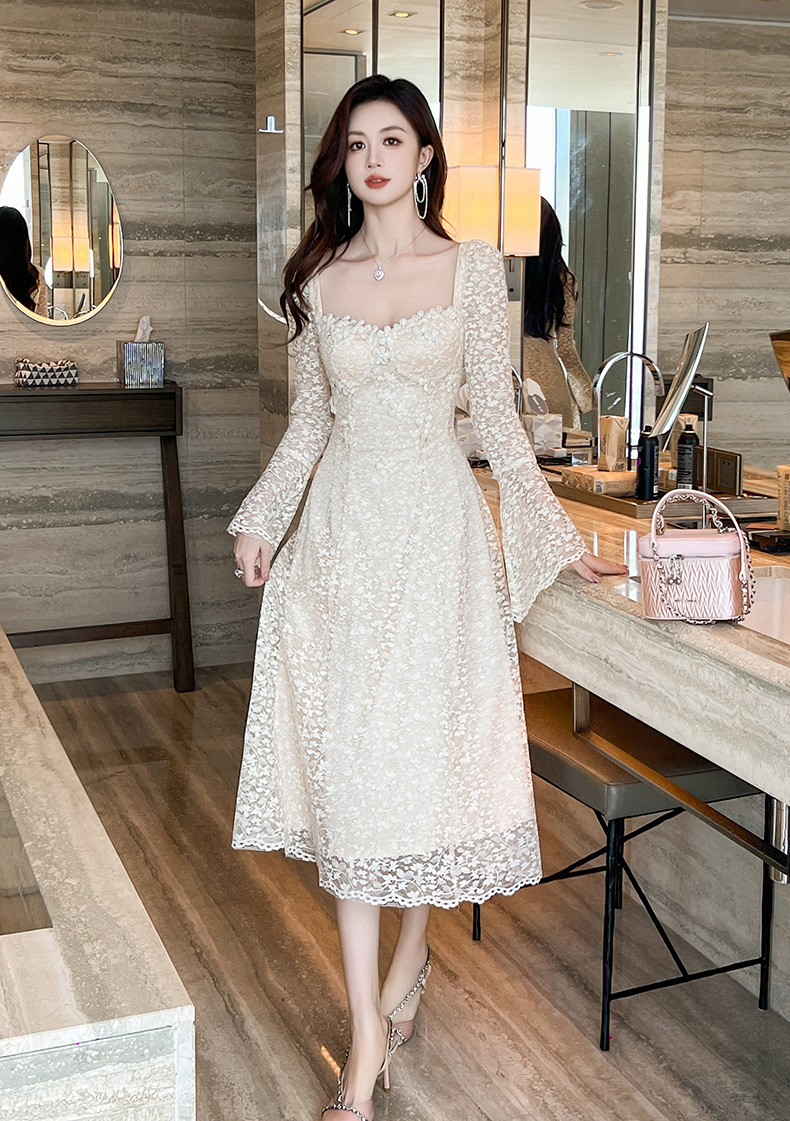 Chiếc đầm dài tay qua gối cho nàng thêm phần dịu dàng, duyên dáng. Thiết kế cổ vuông kiểu cách, eo thắt nhẹ nhàng tôn lên những đường nét cơ thể. Điểm nhấn là chi tiết ren hoa văn hình cánh hoa tinh tế, tạo nên vẻ đẹp nữ tính và lãng mạn. Chất vải mềm mại, thoải mái cho những ngày thu se lạnh. Dễ dàng phối cùng giày cao gót hay giày bệt để đi làm, dạo phố hay dự tiệc. | Tên sản phẩm: Váy Đầm Liền Thân Dáng Dài Nữ Chất Liệu Ren Dài Quá Gối Họa Tiết Hoa Hàng Mùa Xuân Thu Đông - Thời Trang Nữ | Mã sản phẩm: B1235 - Giá: 1.440.000đ | Mã nhà sản xuất: CHDG-G04Hình ảnh sản phẩm