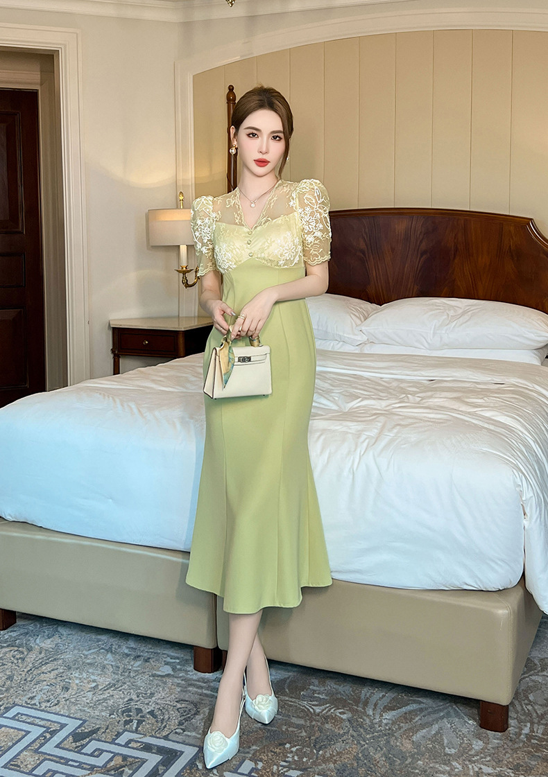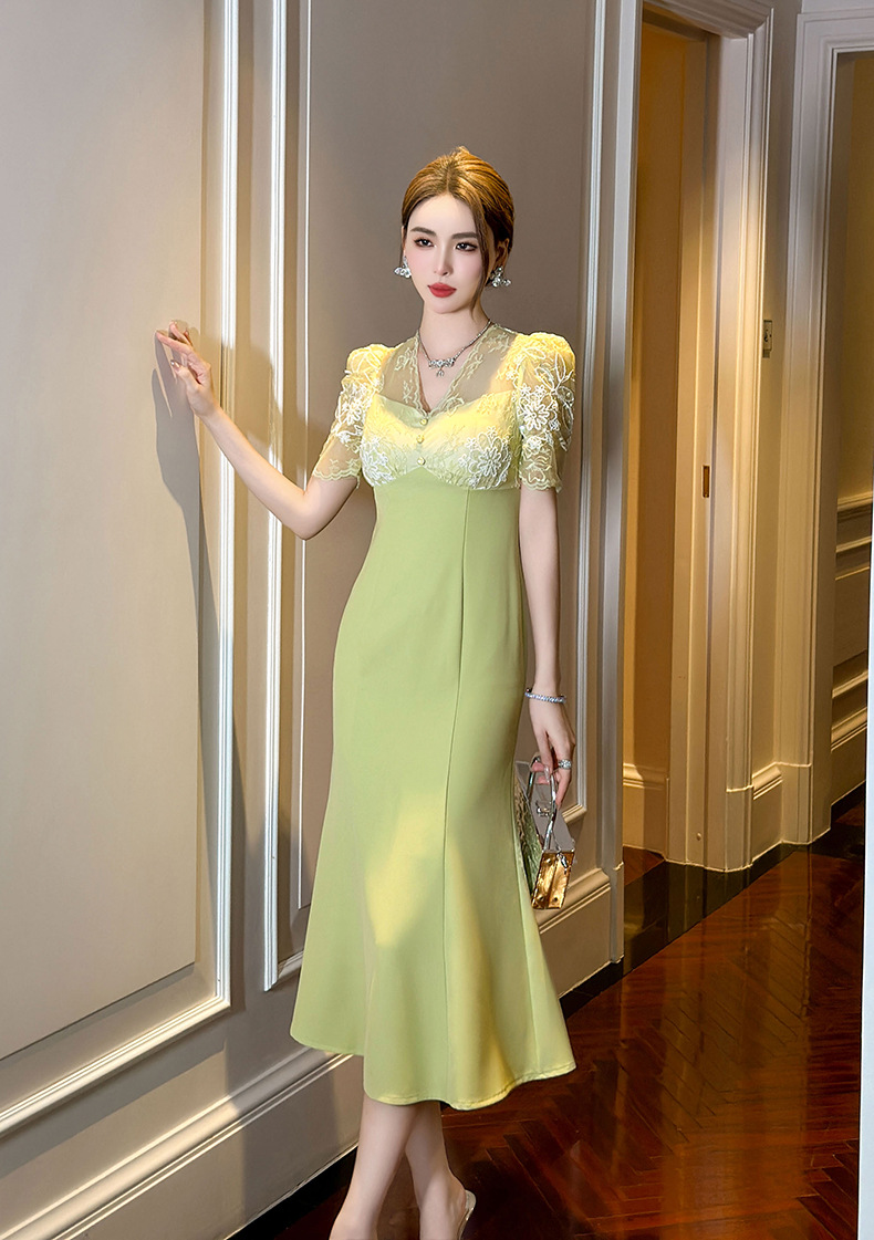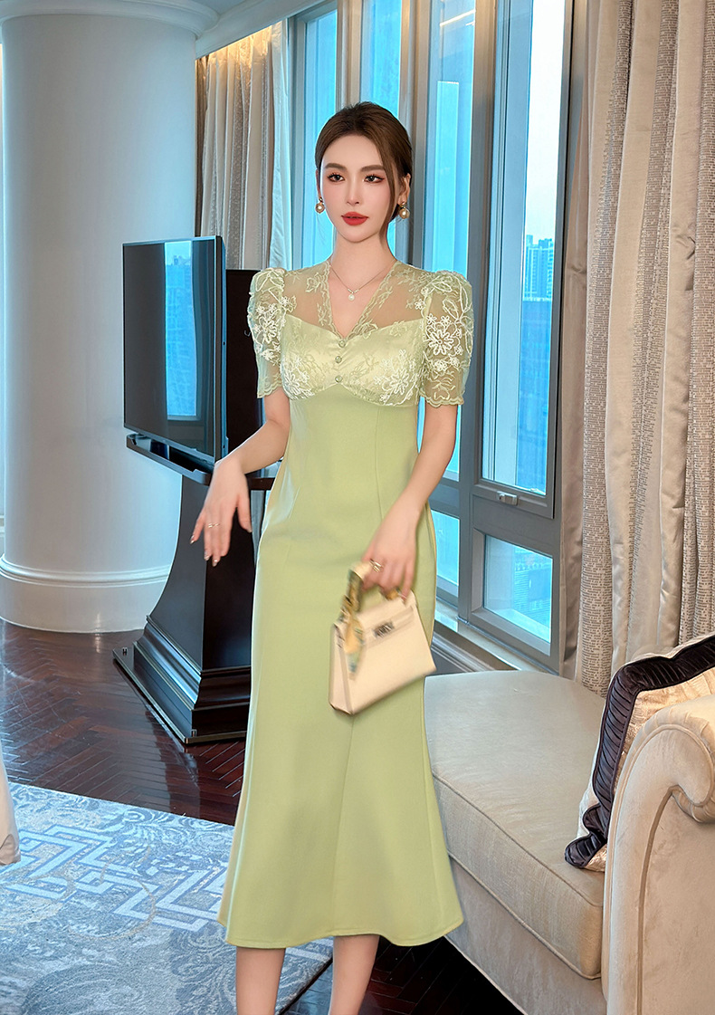 Chiếc đầm dành cho những buổi tiệc trà nhẹ nhàng, được thiết kế cho mùa hè với phong cách thanh lịch. Cổ chữ V tôn dáng, kết hợp điểm nhấn từ chất liệu ren mềm mại ở phần tay và thân. Đầm ôm eo nhẹ nhàng rồi xòe ra ở phần viền tạo dáng đuôi cá duyên dáng. Mặc cùng giày sandal hoặc giày gót thấp để tạo nên vẻ ngoại hình ưa nhìn và thoải mái. | Tên sản phẩm: Váy Đầm Liền Thân Dáng Dài Nữ Chất Liệu Ren Kiểu Đuôi Cá Cổ Chữ V Hàng Mùa Hè - Thời Trang Nữ | Mã sản phẩm: L2342 - Giá: 1.280.000đ | Mã nhà sản xuất: CHDG-G04Hình ảnh sản phẩm