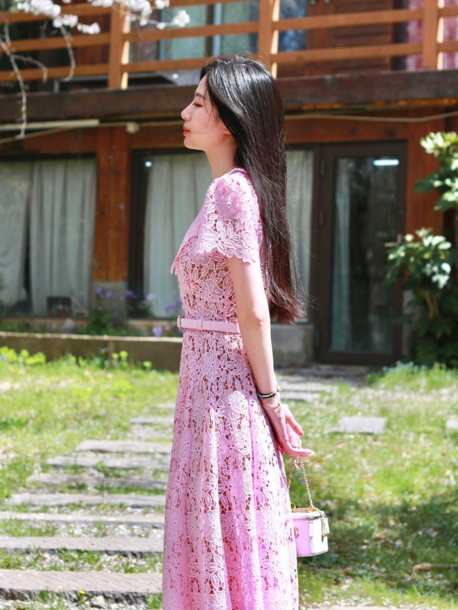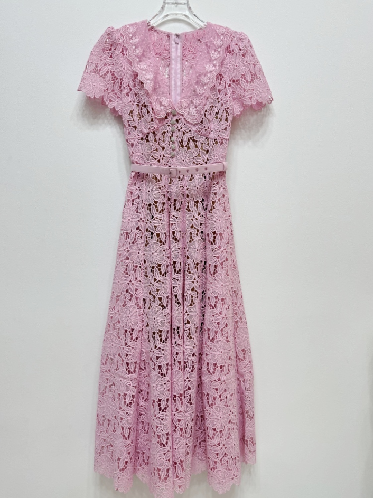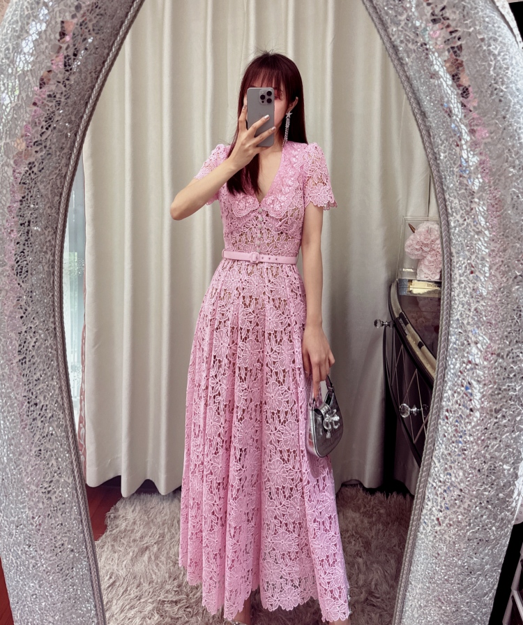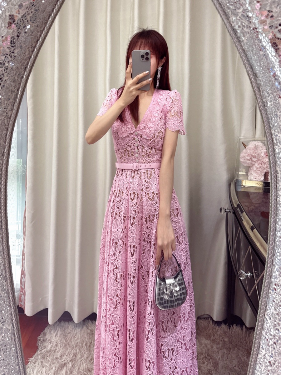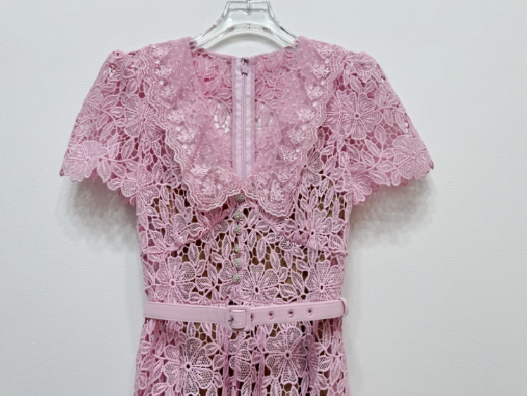 Chiếc váy ngắn tay này có màu hồng dịu dàng, được làm từ chất vải dày dặn và thoáng mát. Điểm nhấn là phần cổ bẻ cùng những đường thêu tinh xảo và chi tiết ren trong suốt. Thân váy kết hợp nhiều mảnh vải tạo nên những đường nét ấn tượng. Phần chân váo xòe rộng, tạo dáng điệu đà. Sản phẩm đi kèm một chiếc thắt lưng để bạn có thể điều chỉnh form dáng. Mặc kèm với giày bệt hoặc giày có qu để hoàn thiện bộ trang phục. | Tên sản phẩm: Váy Đầm Liền Thân Dáng Dài Nữ Chất Liệu Ren Ngắn Tay Thêu Họa Tiết Hoa Kín Cổ - Thời Trang Nữ | Mã sản phẩm: A0701 - Giá: 2.680.000đ | Mã nhà sản xuất: HADN-G06Hình ảnh sản phẩm