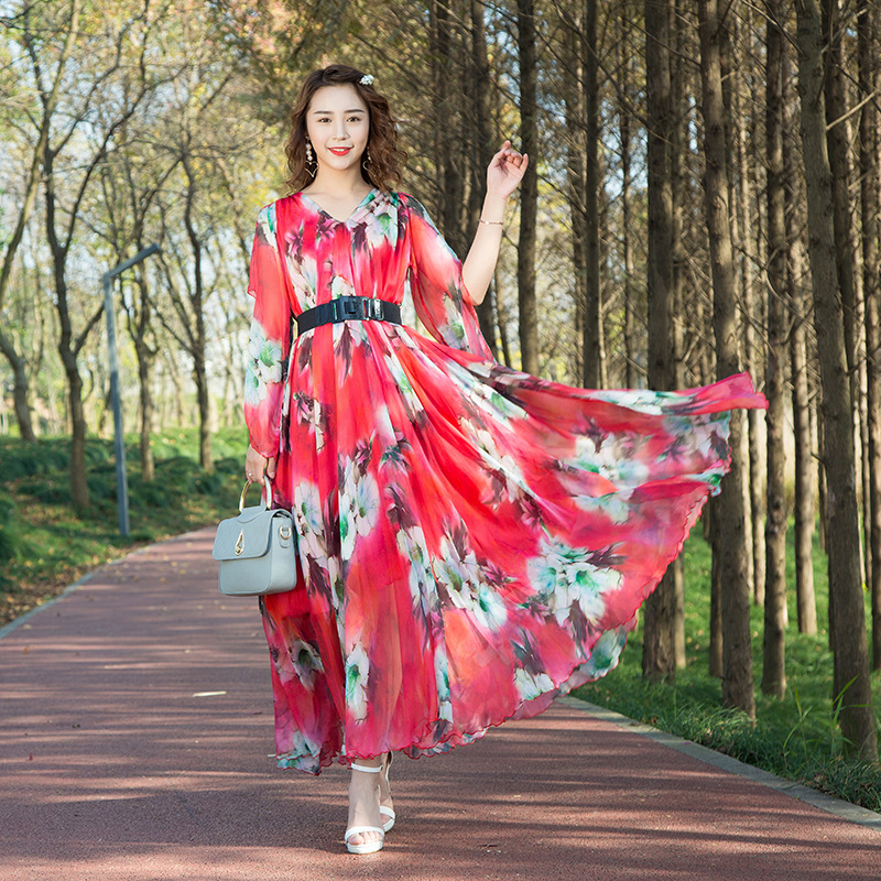 Chiếc váy dài mới cho mùa xuân năm nay, mang phong cách dạo biển tự do. Chất liệu mỏng nhẹ tạo cảm giác thoải mái, dễ chịu khi mặc. Váy có họa tiết in bắt mắt cùng thiết kế xòe rộng, giúp tôn dáng người mặc. Sản phẩm phù hợp để đi chơi, dạo bãi biển hoặc tham gia các buổi tiệc ngoài trời. Có thể giặt bằng tay hoặc máy ở chế độ nhẹ để giữ form váy được lâu. | Tên sản phẩm: Váy Đầm Liền Thân Dáng Dài Nữ Chất Liệu Vải Voan Họa Tiết Hoa Hàng Mùa Xuân Thu Đông Đồ Đi Biển Váy Maxi - Thời Trang Nữ | Mã sản phẩm: H5101 - Giá: 830.000đ | Mã nhà sản xuất: TARYUN-G03Hình ảnh sản phẩm