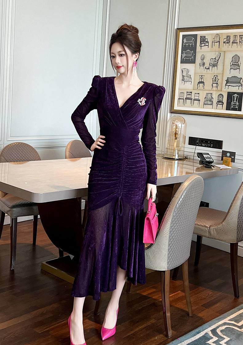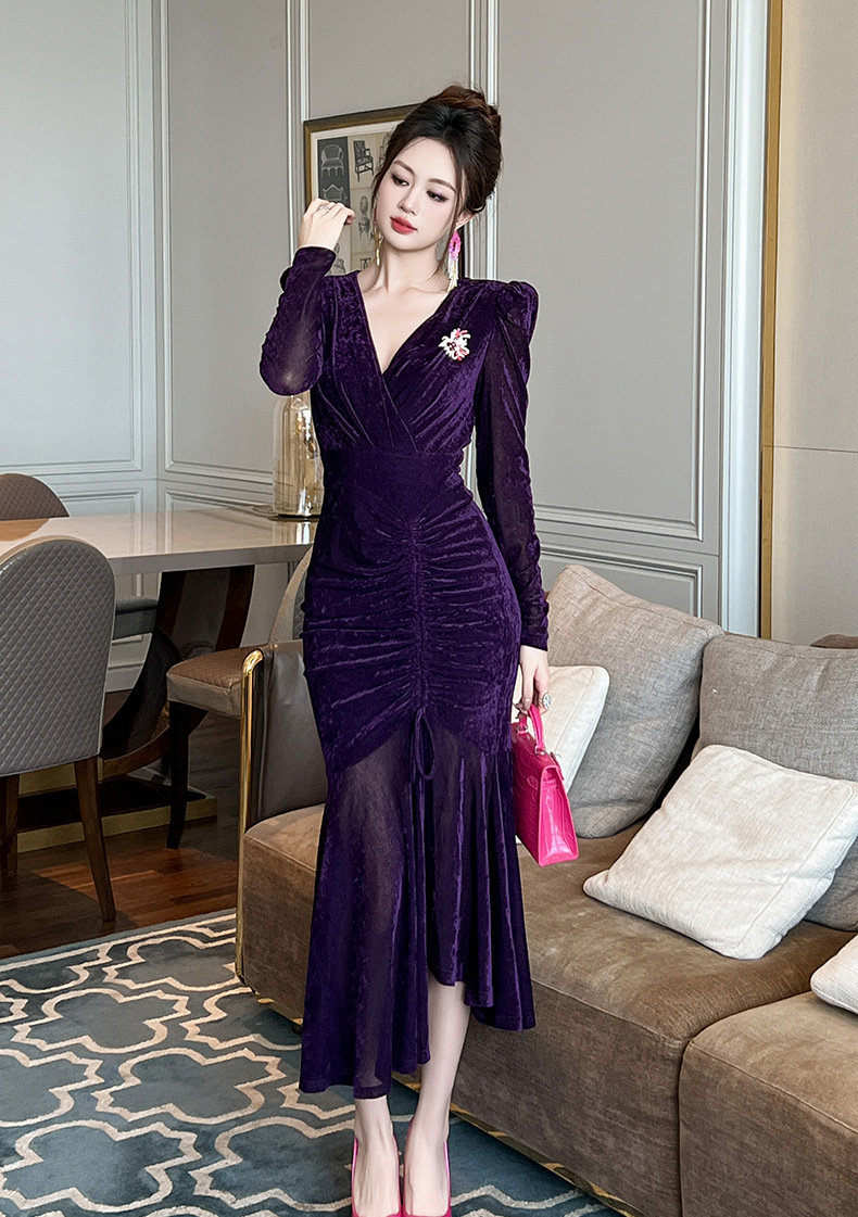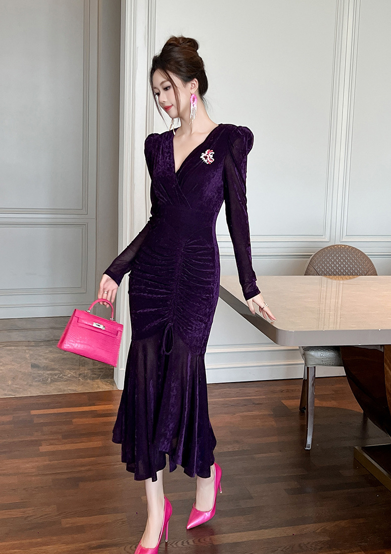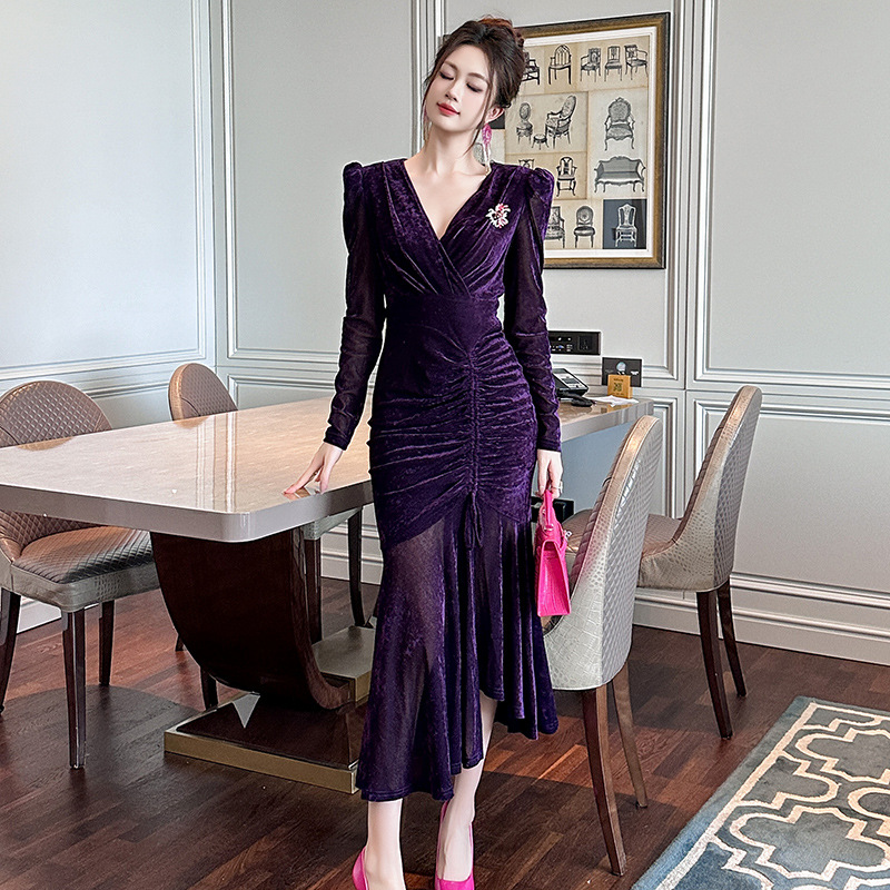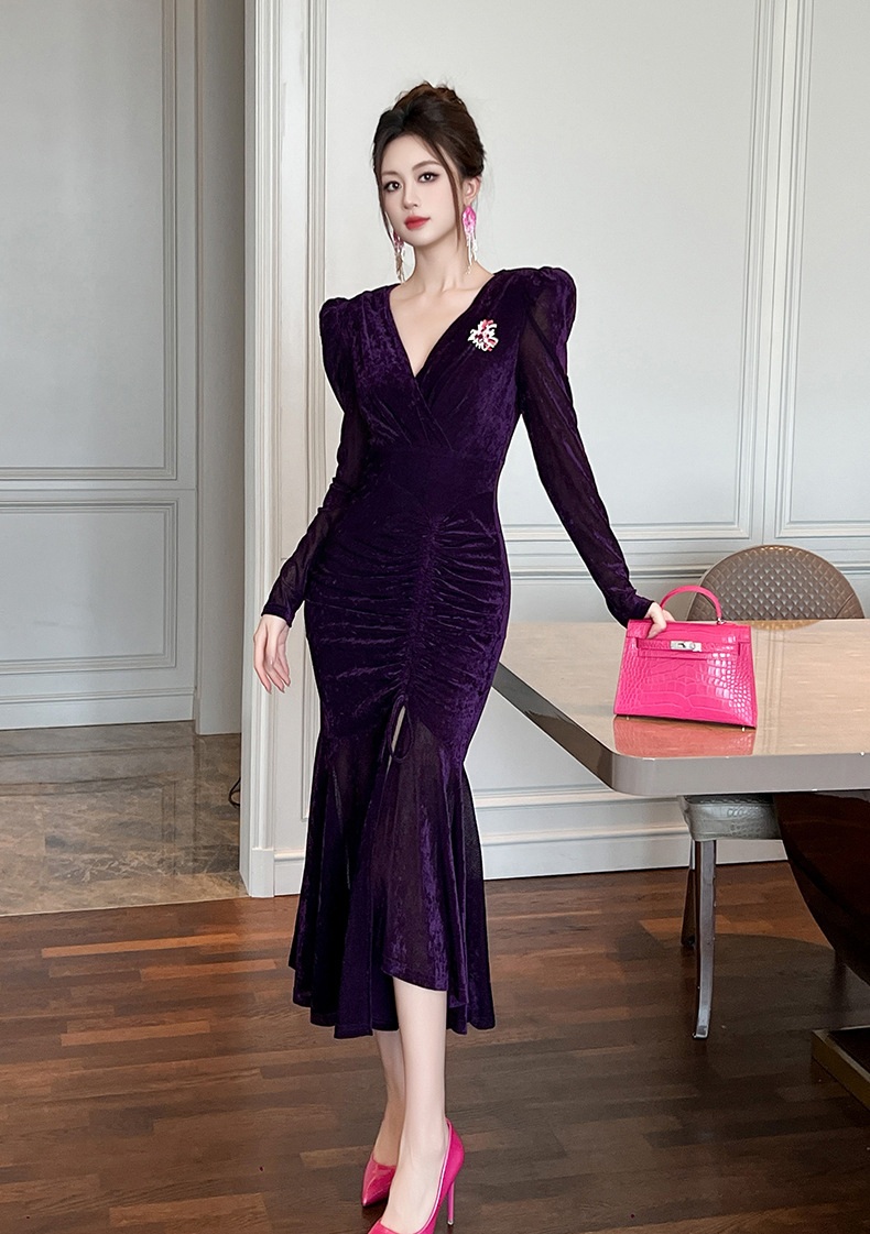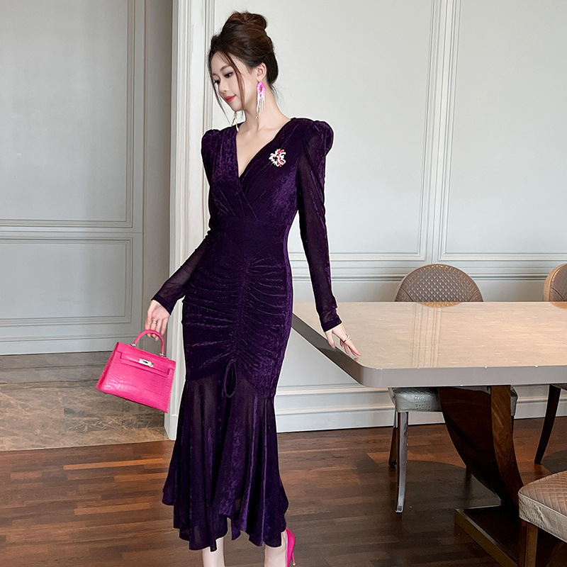Chiếc đầm dáng dài cho mùa thu đông năm 2025, được thiết kế ôm sát cơ thể và xòe bồng bềnh ở phần thân dưới như đuôi cá. Tay áo dài cùng chất vải mềm mại tạo cảm giác dễ chịu khi mặc. Kiểu dáng mang nét cổ điển, phù hợp cho nhiều dịp gặp mặt. Cách sử dụng đơn giản, mặc kèm với các loại phụ kiện để tạo điểm nhấn cho trang phục của bạn. | Tên sản phẩm: Váy Đầm Liền Thân Dáng Dài Nữ Dáng Ôm Kiểu Đuôi Cá Hàng Mùa Xuân Thu Đông Phục Cổ Cổ Điển - Thời Trang Nữ | Mã sản phẩm: B0190 - Giá: 1.230.000đ | Mã nhà sản xuất: CHDG-G04Hình ảnh sản phẩm