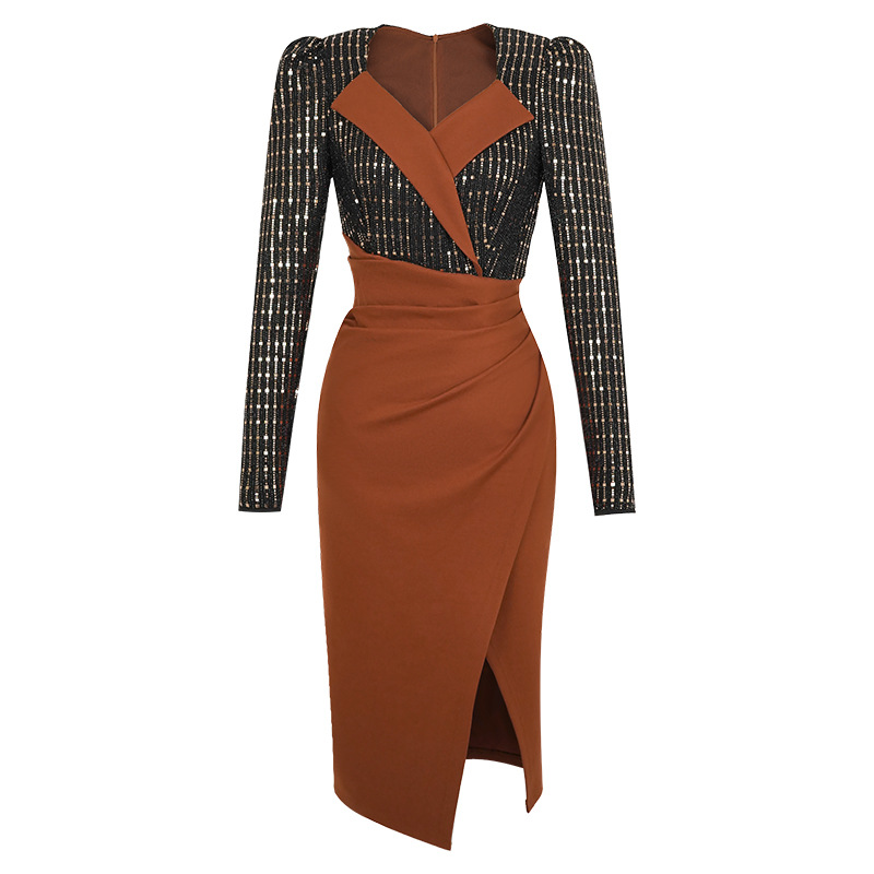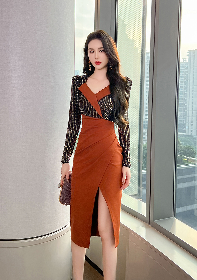 Đầm dáng ôm tay dài cho mùa thu, kiểu dáng mới với cổ bẻ tạo điểm nhấn thanh lịch. Đầm có phần eo cao giúp tôn dáng, điểm cộng từ các miếng ghép ánh nhẹ và đường xẻ nhẹ ở phần thân dưới, tăng thêm sự nữ tính và thoải mái khi di chuyển. Mặc kèm với giày cao gót hoặc giày đế bằng đều phù hợp, dễ dàng phối đồ cho nhiều dịp khác nhau. | Tên sản phẩm: Váy Đầm Liền Thân Dáng Dài Nữ Dáng Ôm Kín Cổ Hàng Mùa Xuân Thu Đông - Thời Trang Nữ | Mã sản phẩm: B0780 - Giá: 1.120.000đ | Mã nhà sản xuất: CHDG-G04Hình ảnh sản phẩm