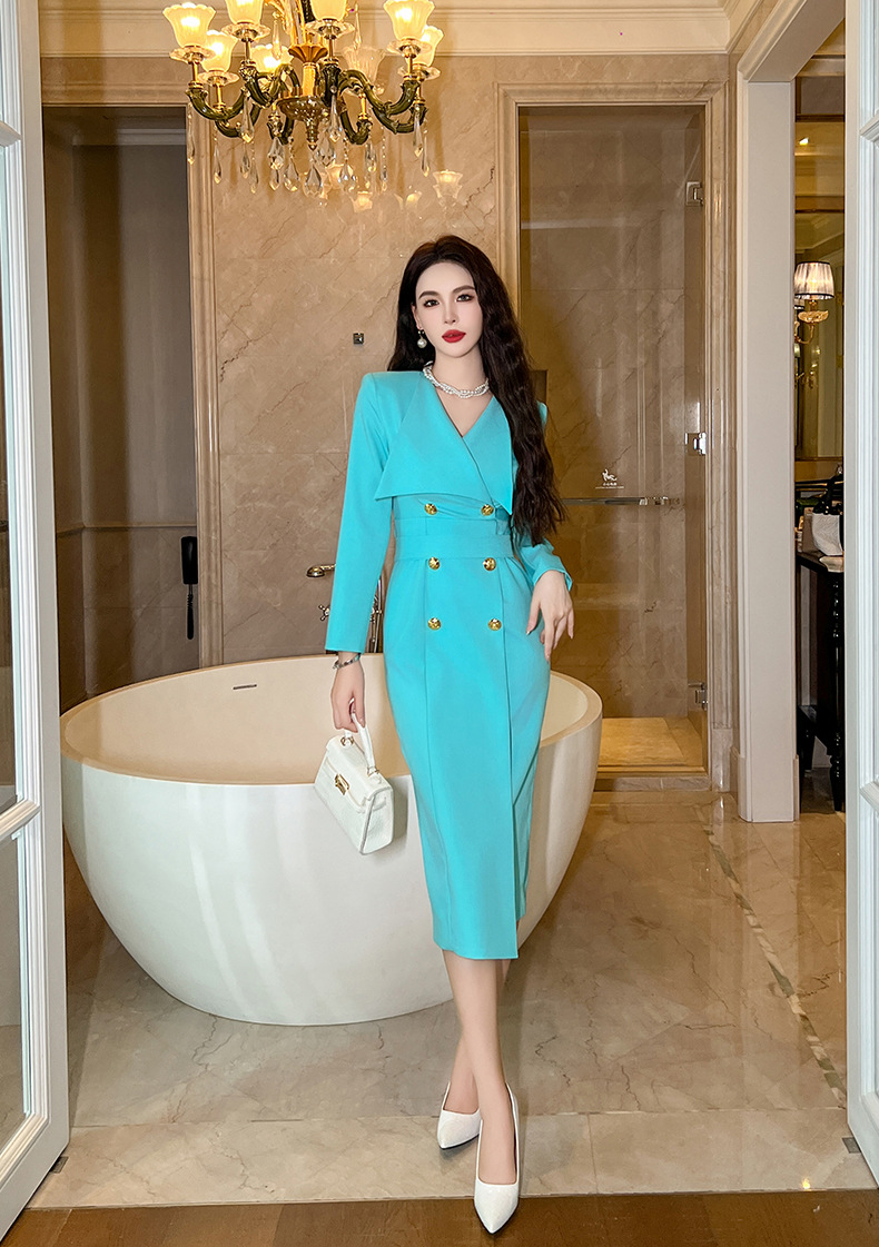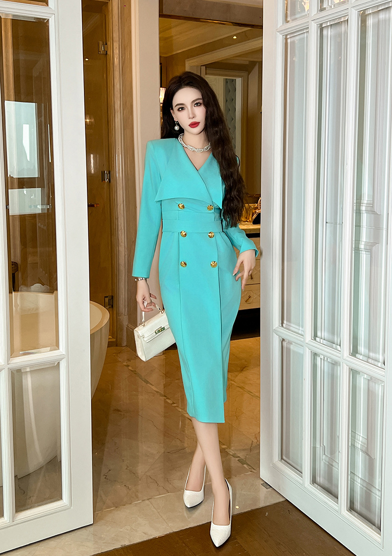Chiếc đầm dáng ôm này là lựa chọn phù hợp cho nơi làm việc và những buổi gặp mặt cần trang trọng. Thiết kế có cổ bẻ và thắt eo bằng dây, tạo điểm nhấn thanh lịch. Với kiểu dáng dài qua gối, trang phục mang đến vẻ ngoại hình chỉn chu, lịch sự. Bạn có thể mặc nó cùng áo khoác blazer hoặc đi giày cao gót để hoàn thiện set đồ công sở. Chất vải dày dặn phù hợp cho tiết trời thu đông. | Tên sản phẩm: Váy Đầm Liền Thân Dáng Dài Nữ Dáng Ôm Kín Cổ Hàng Mùa Xuân Thu Đông Đồ Công Sở - Thời Trang Nữ | Mã sản phẩm: B4539 - Giá: 1.400.000đ | Mã nhà sản xuất: CHDG-G04Hình ảnh sản phẩm