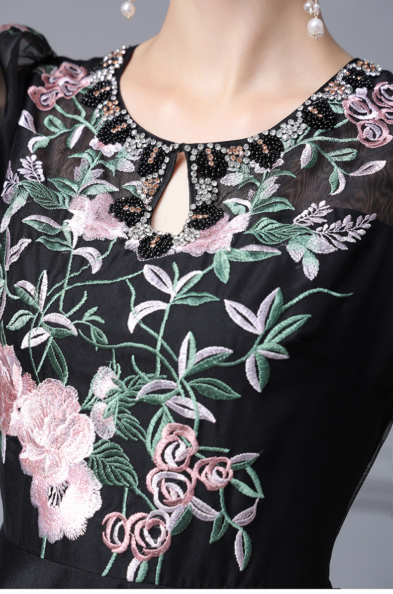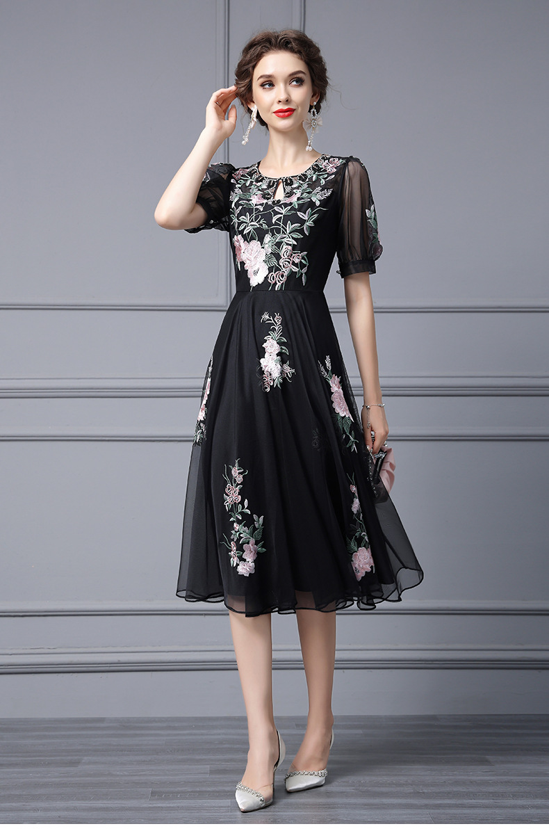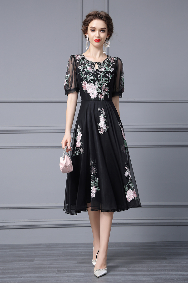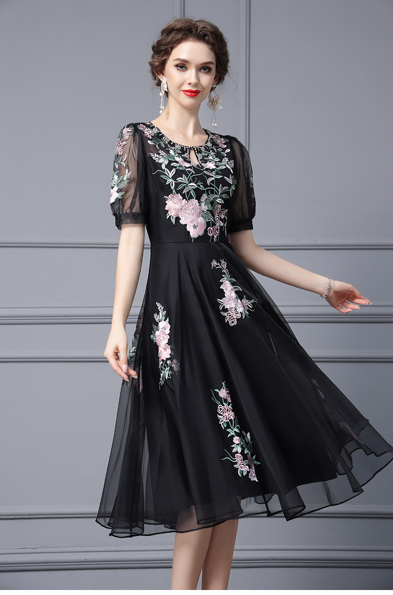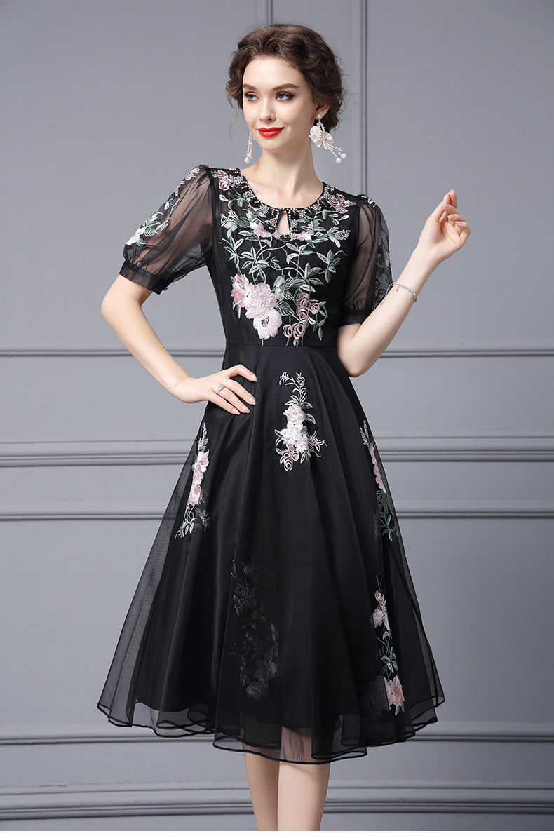 Chiếc đầm ngắn tay kiểu cách mang phong cách Pháp, nổi bật nhờ đường thêu tinh xảo và kỹ thuật gia công tỉ mỉ. Chất vải mỏng nhẹ tạo cảm giác thoải mái, phù hợp cho mùa hè. Điểm nhấn là những hạt đá lấp lánh được đính khéo léo trên nền voan, làm tăng thêm vẻ duyên dáng. Sản phẩm dễ dàng phối cùng giày sandal hoặc giày búp bê. Bạn có thể mặc đi làm, dự tiệc hoặc những dịp gặp mặt thông thường. | Tên sản phẩm: Váy Đầm Liền Thân Dáng Dài Nữ Lưới Mỏng Thêu Họa Tiết Hoa Hàng Mùa Hè - Thời Trang Nữ | Mã sản phẩm: K2849 - Giá: 4.350.000đ | Mã nhà sản xuất: SHDAP-G06Hình ảnh sản phẩm