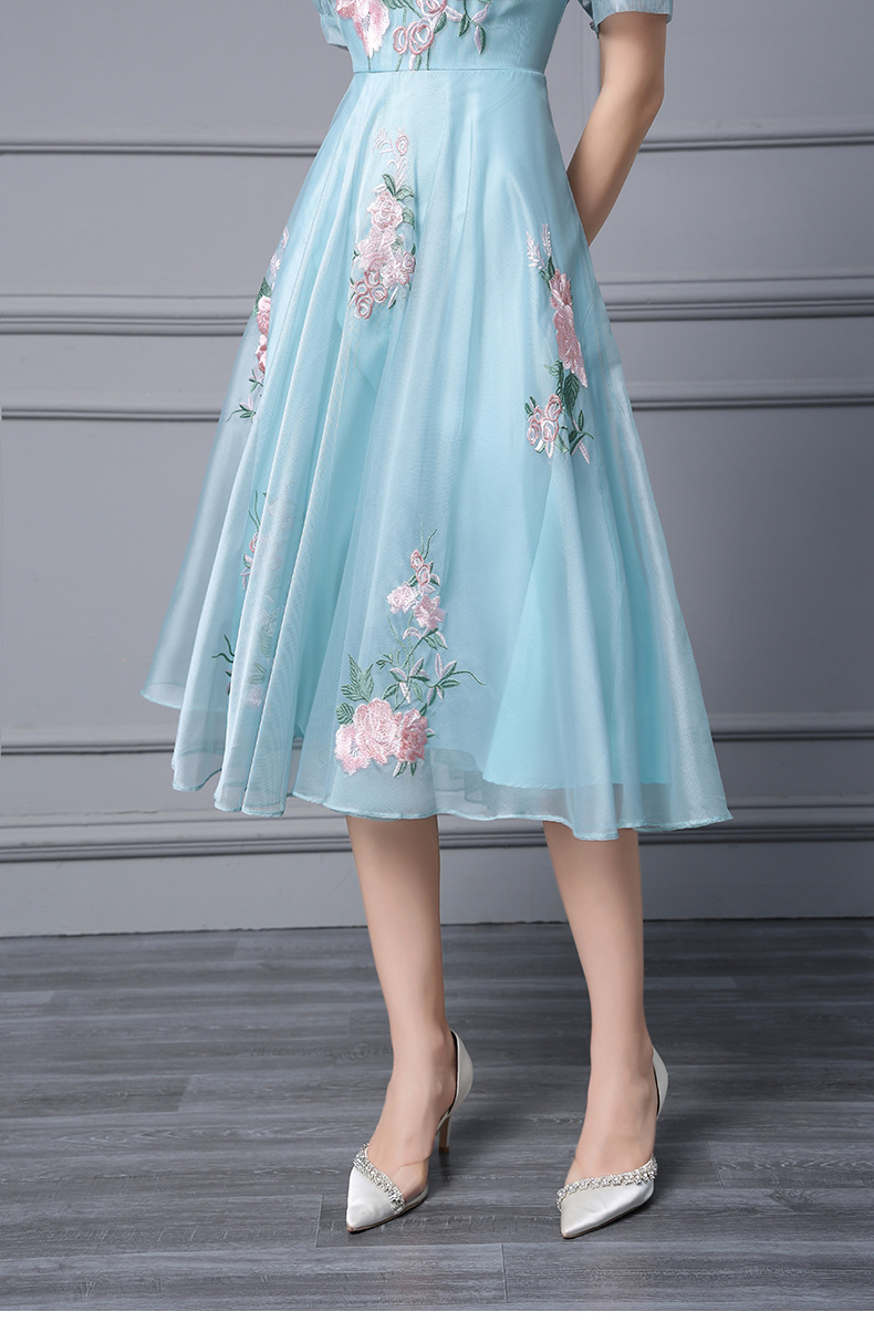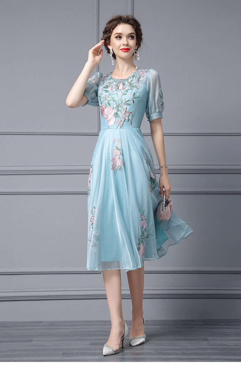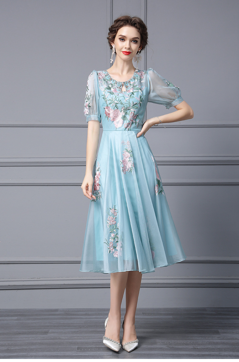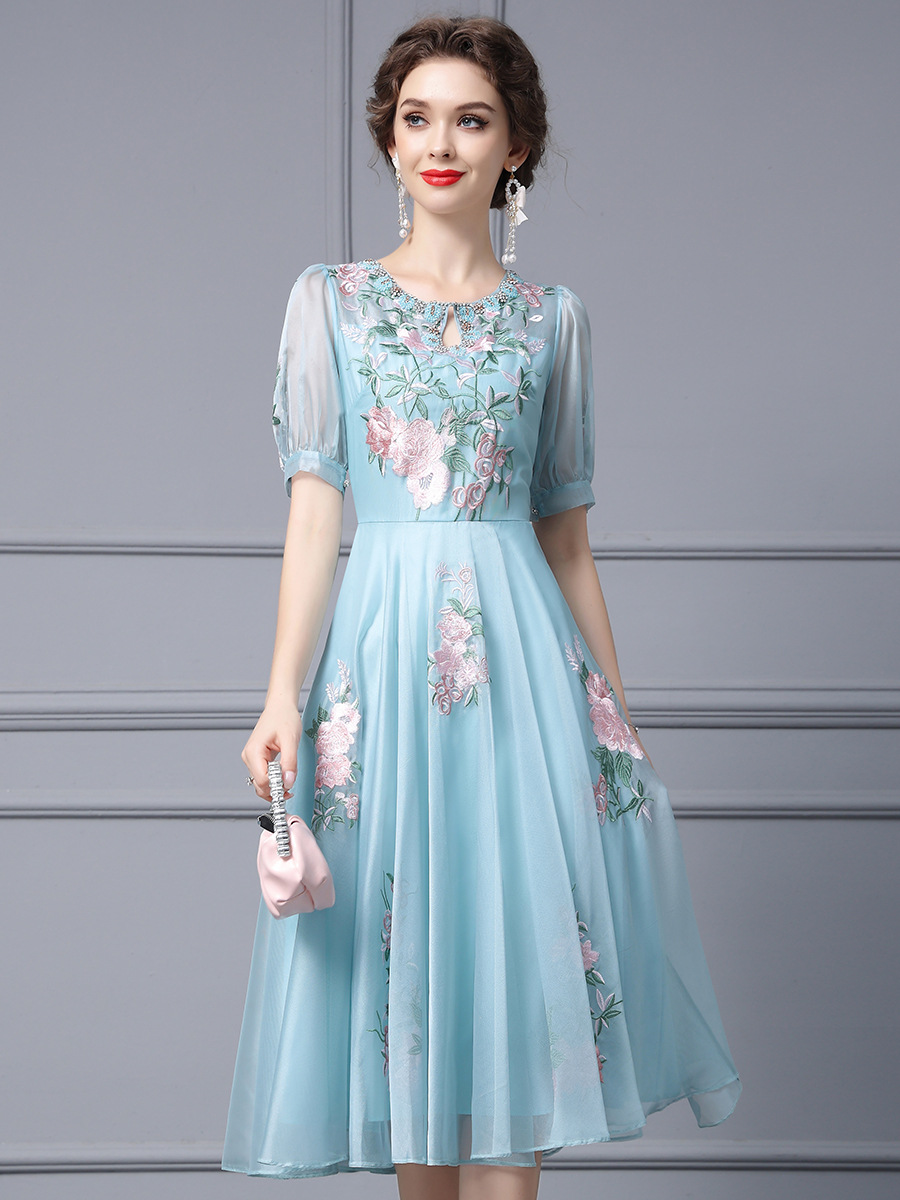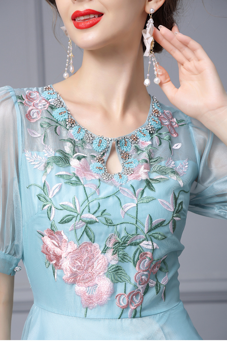 Chiếc đầm ngắn tay kiểu cách mang phong cách Pháp, nổi bật nhờ đường thêu tinh xảo và kỹ thuật gia công tỉ mỉ. Chất vải mỏng nhẹ tạo cảm giác thoải mái, phù hợp cho mùa hè. Điểm nhấn là những hạt đá lấp lánh được đính khéo léo trên nền voan, làm tăng thêm vẻ duyên dáng. Sản phẩm dễ dàng phối cùng giày sandal hoặc giày búp bê. Bạn có thể mặc đi làm, dự tiệc hoặc những dịp gặp mặt thông thường. | Tên sản phẩm: Váy Đầm Liền Thân Dáng Dài Nữ Lưới Mỏng Thêu Họa Tiết Hoa Hàng Mùa Hè - Thời Trang Nữ | Mã sản phẩm: K2849 - Giá: 4.350.000đ | Mã nhà sản xuất: SHDAP-G06Hình ảnh sản phẩm