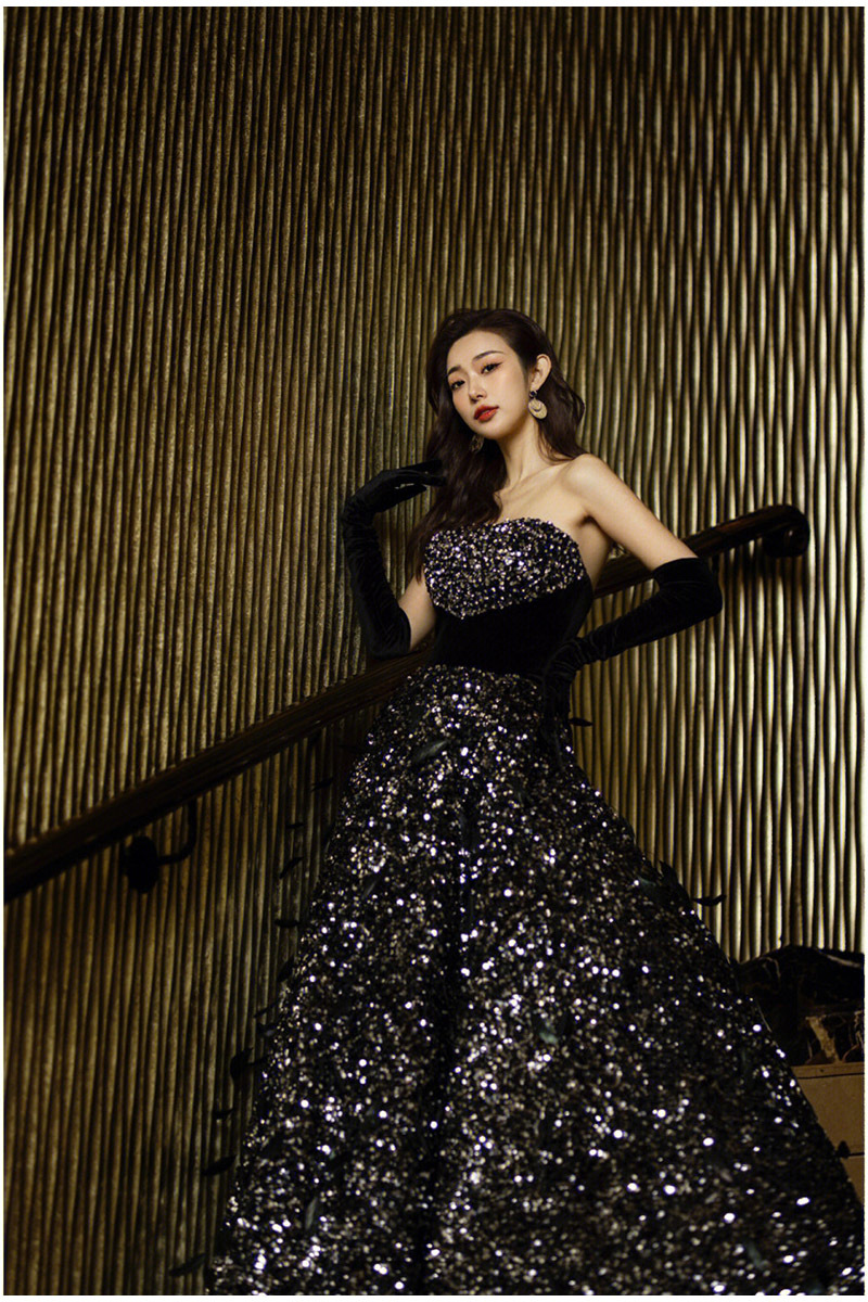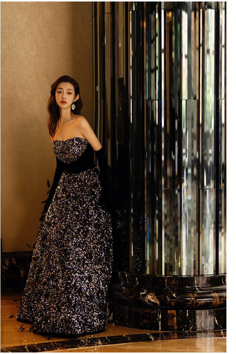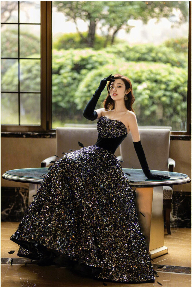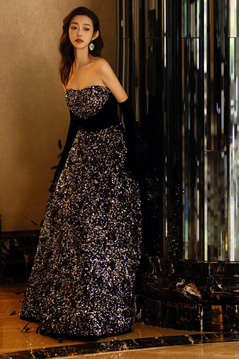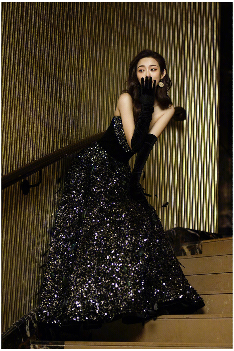 Váy dạ hội lấp lánh với hàng ngàn hạt kim tuyến đen tinh tế. Kiểu dáng ôm dáng hiện đại, phù hợp cho các buổi tiệc tối, sự kiện hoặc biểu diễn nghệ thuật. Đây cũng là lựa chọn ưa thích cho các dịp quan trọng như tiệc cưới. Sản phẩm dễ dàng mặc cùng giày cao gót và phụ kiện phù hợp để tạo nên một vẻ ngoài hoàn chỉnh và thu hút ánh nhìn. | Tên sản phẩm: Váy Đầm Liền Thân Dự Tiệc Nữ - Thời Trang Nữ | Mã sản phẩm: K0582 - Giá: 1.730.000đ | Mã nhà sản xuất: SHTYFA-G05Hình ảnh sản phẩm
