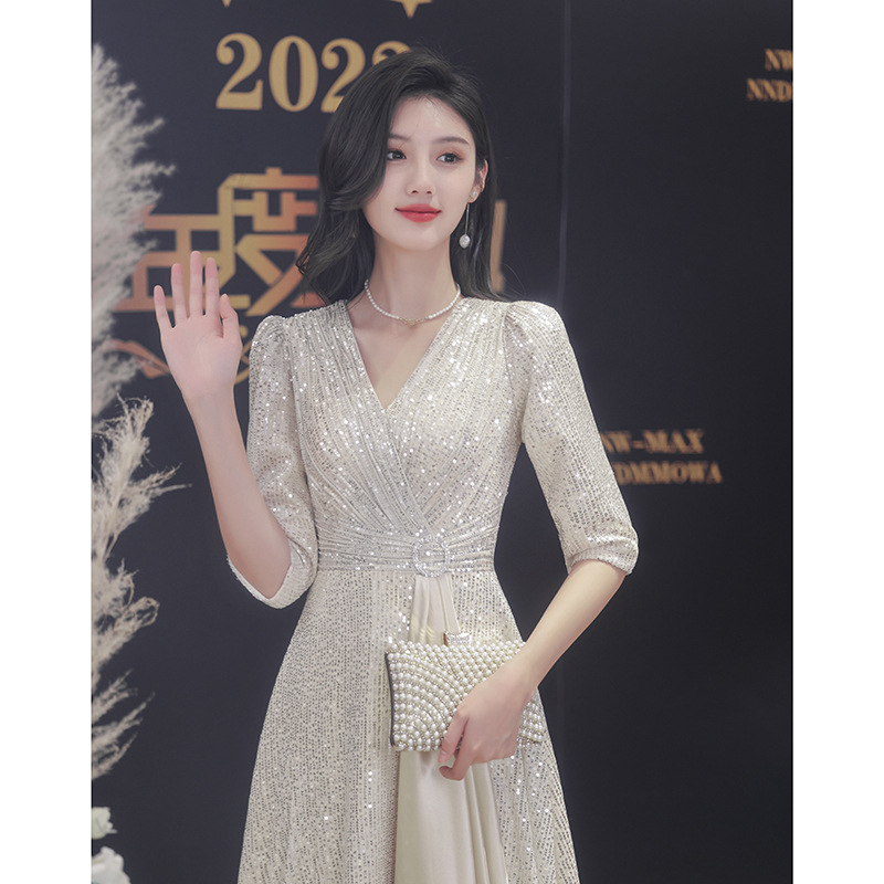 Chiếc đầm dạ hội cỡ nhỏ này có thiết kế ôm sát, tôn dáng một cách tinh tế. Chất vải mềm mại giúp bạn dễ dàng vận động và thoải mái suốt buổi tiệc. Điểm nhấn nổi bật là sắc vàng ánh kim nhẹ nhàng, phù hợp cho các dịp lễ hội hoặc khi bạn đảm nhận v trò người dẫn chương trình. Sản phẩm dễ dàng phối cùng phụ kiện và giày cao gót để hoàn thiện bộ trang phục. | Tên sản phẩm: Váy Đầm Liền Thân Dự Tiệc Nữ - Thời Trang Nữ | Mã sản phẩm: K6217 - Giá: 1.590.000đ | Mã nhà sản xuất: MITY,-G04Hình ảnh sản phẩm