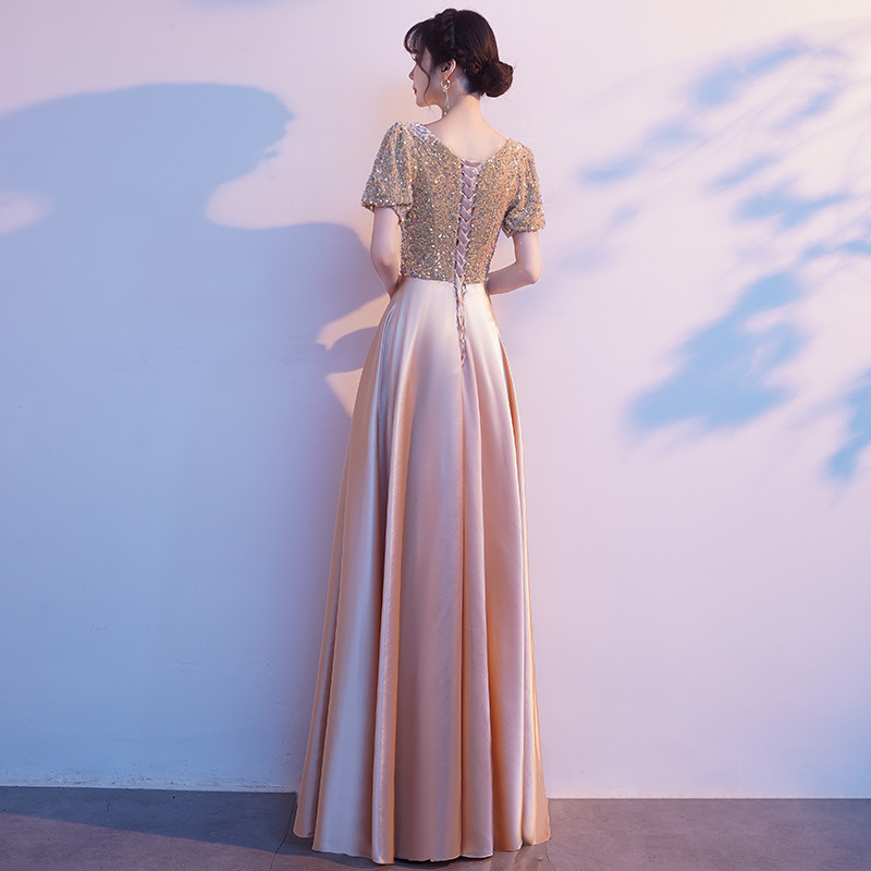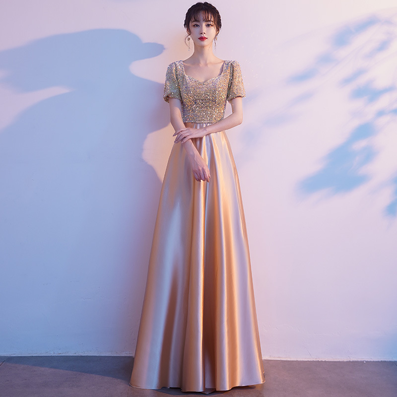Váy dạ hội dành cho nữ, thiết kế dáng dài thanh lịch, phù hợp dự tiệc hoặc biểu diễn. Áo có màu vàng nhạt nhẹ nhàng, được điểm xuyết bởi nhiều hạt kim tuyến lấp lánh dưới ánh đèn. Chất vải mềm mại, ôn nhẹ cơ thể, tôn lên nét duyên dáng của người mặc. Có thể kết hợp cùng giày cao gót và phụ kiện tóc để tạo điểm nhấn. Giặt tay và phơi khô trong bóng mát để giữ độ bền của sản phẩm. | Tên sản phẩm: Váy Đầm Liền Thân Dự Tiệc Nữ Hàng Mùa Hè - Thời Trang Nữ | Mã sản phẩm: K1012 - Giá: 1.280.000đ | Mã nhà sản xuất: SHTYFA-G04Hình ảnh sản phẩm