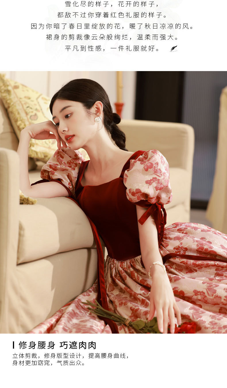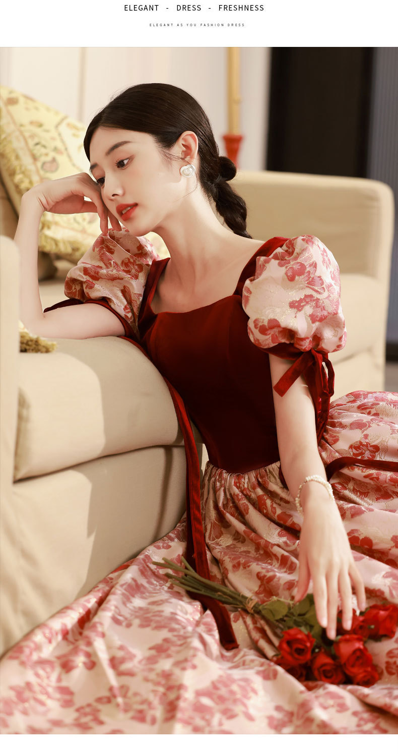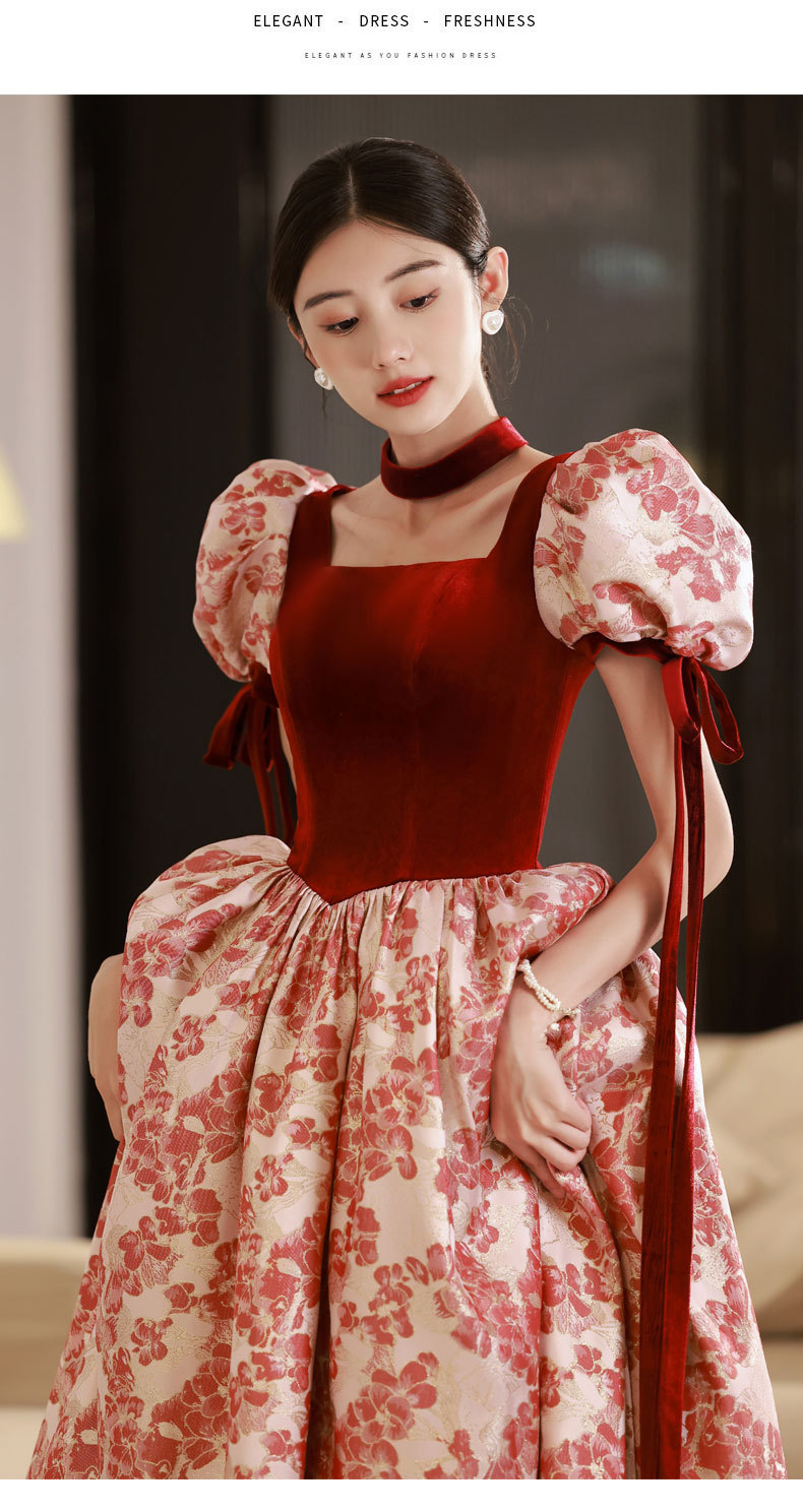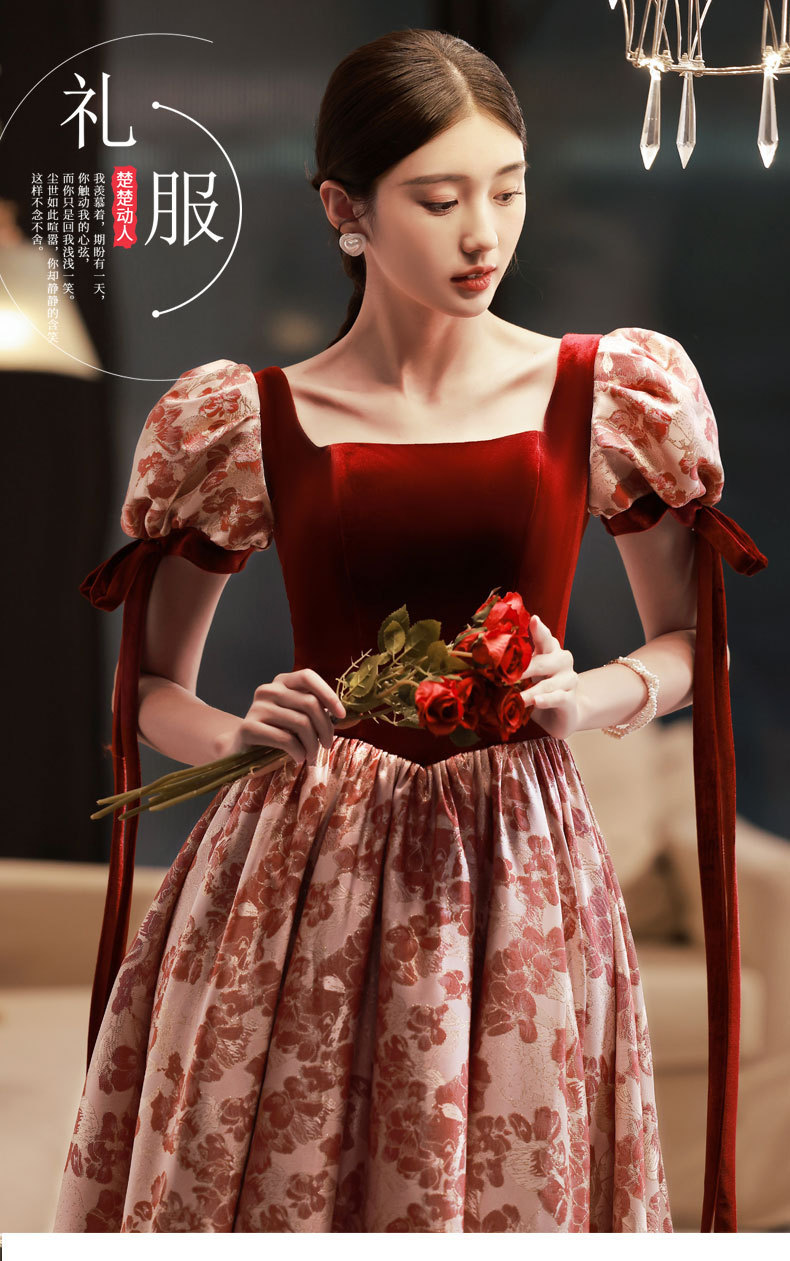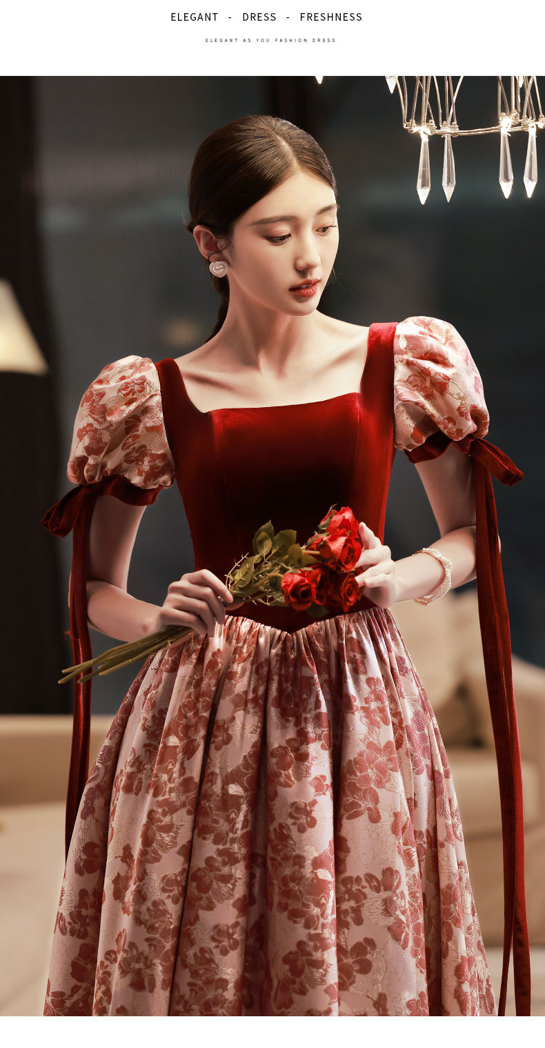 Váy dài dành cho cô dâu trong các buổi tiệc, mang phong cách cổ điển nhẹ nhàng như nàng công chúa. Thiết kế dáng dài với họa tiết hoa nhỏ màu rượu vang tinh tế. Chất vải mềm mại giúp bạn dễ dàng vận động và tạo dáng. Sản phẩm có thể mặc trong những dịp đặc biệt như tiệc đính hôn, hoặc phù hợp để sử dụng hàng ngày. Dễ dàng kết hợp cùng phụ kiện và giày để tạo nên vẻ ngoài ưa nhìn. | Tên sản phẩm: Váy Đầm Liền Thân Dự Tiệc Nữ Họa Tiết Hoa Dùng Trong Lễ Cưới - Thời Trang Nữ | Mã sản phẩm: K0417 - Giá: 1.900.000đ | Mã nhà sản xuất: XUTYYU-G05Hình ảnh sản phẩm