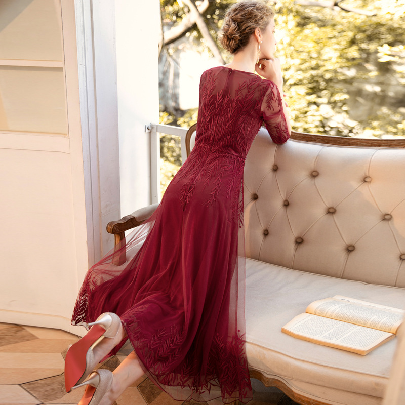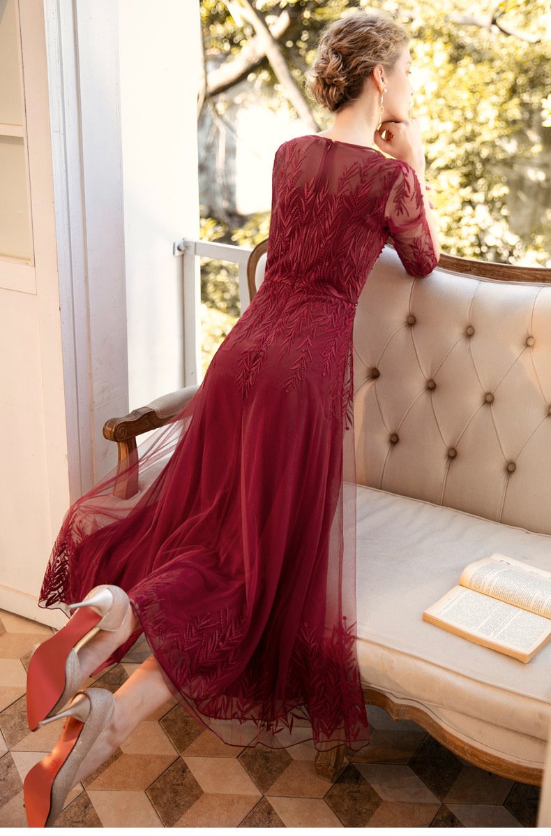 Chiếc đầm dự tiệc dáng dài với phong cách hoài cổ, điểm nhấn là phần thân áo được thêu tỉ mỉ kết hợp hạt cườm lấp lánh trên chất liệu vải mỏng nhẹ. Thiết kế ôm eo tôn lên đường nét cơ thể một cách dịu dàng. Sản phẩm phù hợp cho các buổi họp mặt, liên hoan vào mùa thu. Khi giặt, nên vò nhẹ nhàng bằng tay và phơi nơi râm mát để giữ form áo và độ bền của chi tiết trang trí. | Tên sản phẩm: Váy Đầm Liền Thân Dự Tiệc Nữ Lưới Mỏng Thêu Họa Tiết Hoa Hàng Mùa Xuân Thu Đông Phục Cổ Cổ Điển - Thời Trang Nữ | Mã sản phẩm: A9862 - Giá: 4.350.000đ | Mã nhà sản xuất: SHDAP-G06Hình ảnh sản phẩm
