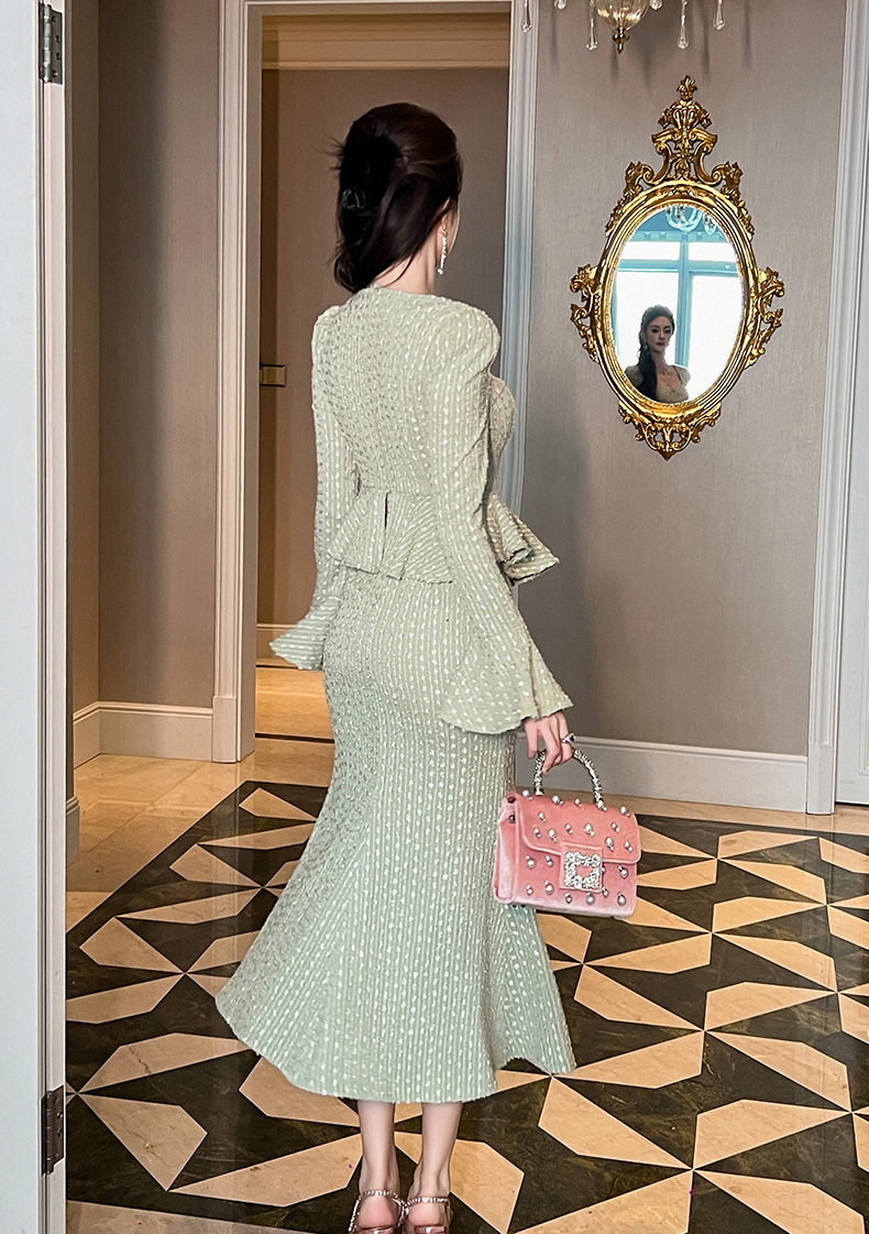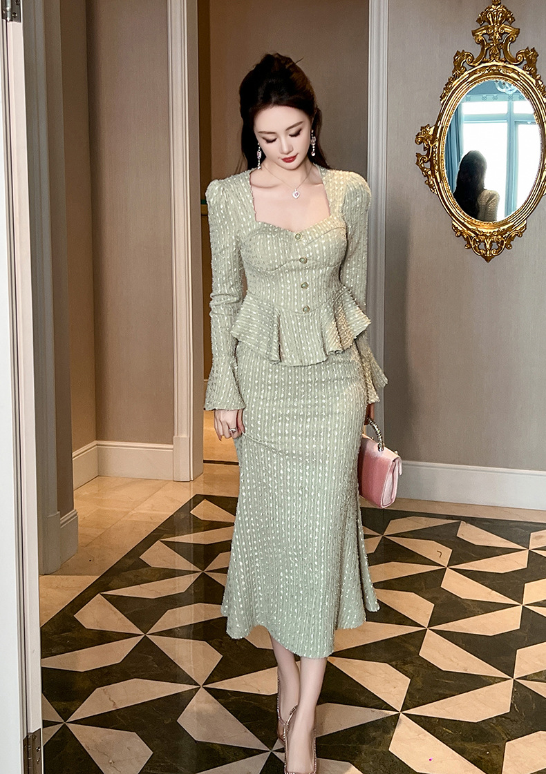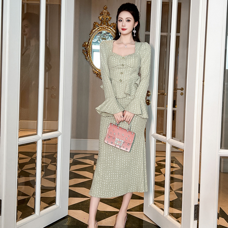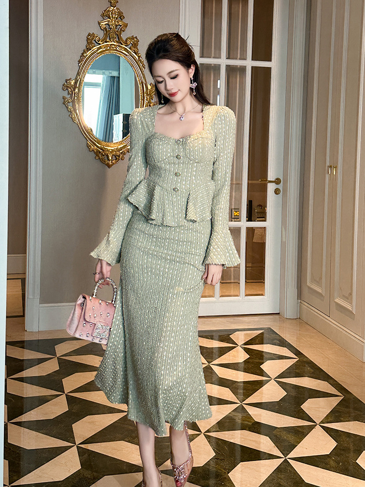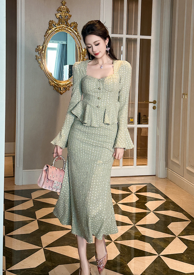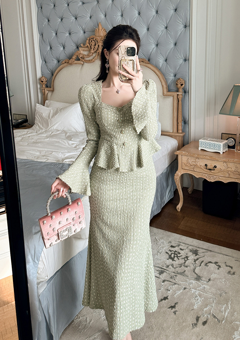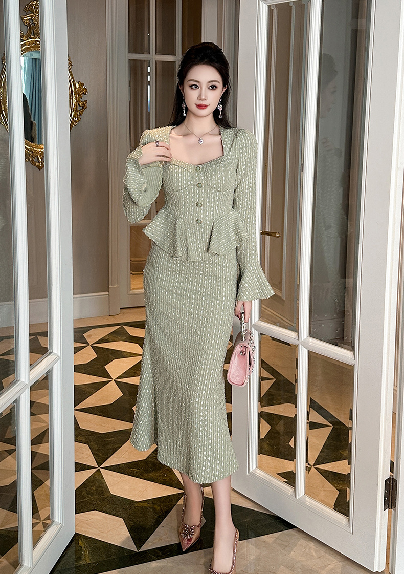 Đầm thiết kế hai lớp dáng dài, cổ vuông thanh lịch kết hợp tay loe duyên dáng. Điểm nhấn eo được bo khéo léo giúp tôn dáng người mặc. Chất vải dày dặn, phù hợp diện trong tiết trời thu đông. Có thể kết hợp cùng giày bệt hoặc boots cổ thấp để tạo phong cách nhẹ nhàng. Sản phẩm dễ dàng phối đồ và phù hợp cho nhiều dịp sinh hoạt hằng ngày. | Tên sản phẩm: Váy Đầm Liền Thân Nữ Cả Bộ 2 Món Hàng Mùa Xuân Thu Đông - Thời Trang Nữ | Mã sản phẩm: B0450 - Giá: 1.350.000đ | Mã nhà sản xuất: CHDG-G04Hình ảnh sản phẩm