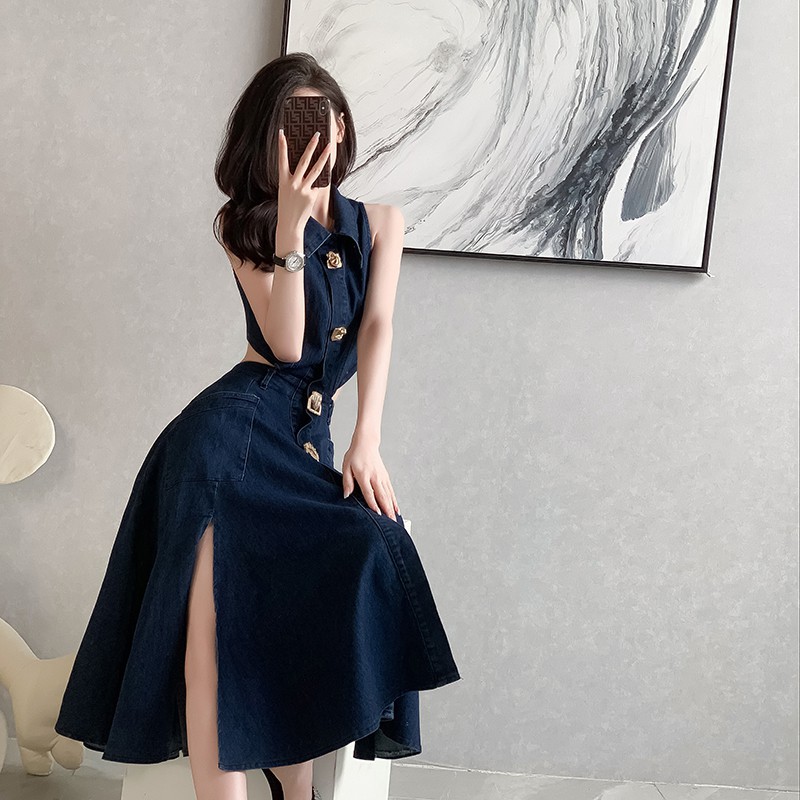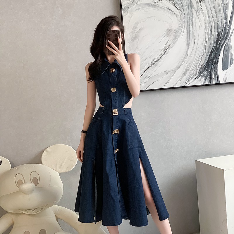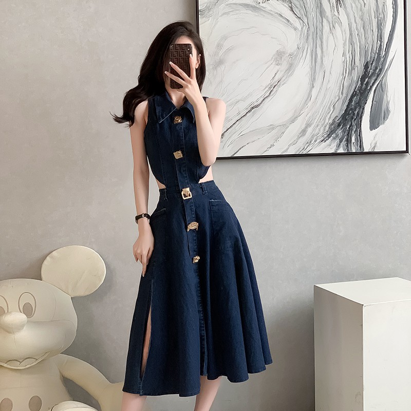 Chiếc đầm jeans không tay mang phong cách hiện đại, dễ phối đồ cho mùa hè. Thiết kế ôm nhẹ với phần eo cao giúp tôn dáng. Điểm nhấn độc đáo ở phía sau với chi tiết khoét hở kết hợp đuôi cá duyên dáng. Chất vải jeans dày dặn tạo form dáng đẹp, phù hợp dạo phố hay gặp gỡ bạn bè. Có thể mặc cùng giày thể thao hoặc sandals để tạo nên những phong cách khác nhau. | Tên sản phẩm: Váy Đầm Liền Thân Nữ Chất Liệu Jean Bò Kiểu Đuôi Cá Hàng Mùa Hè - Thời Trang Nữ | Mã sản phẩm: B5505 - Giá: 1.020.000đ | Mã nhà sản xuất: JUOUTO-G03Hình ảnh sản phẩm