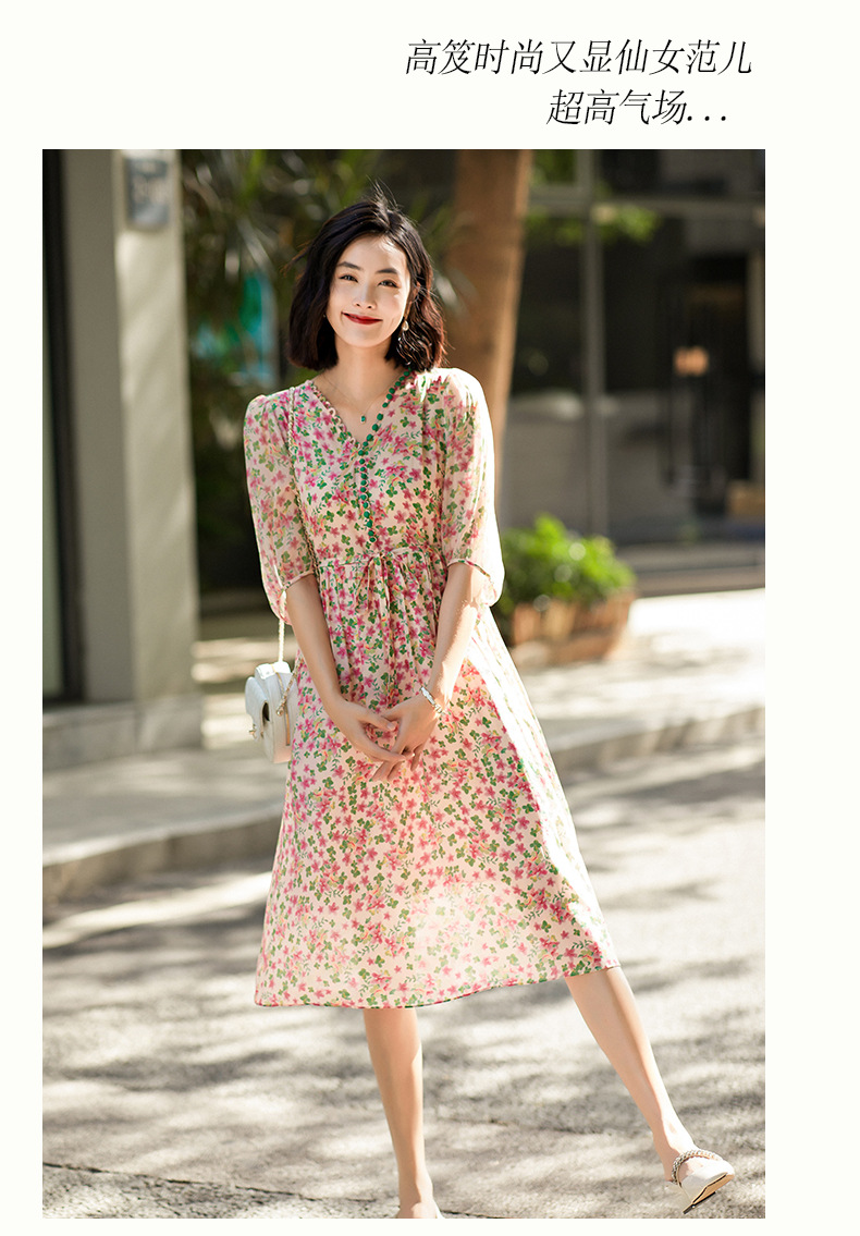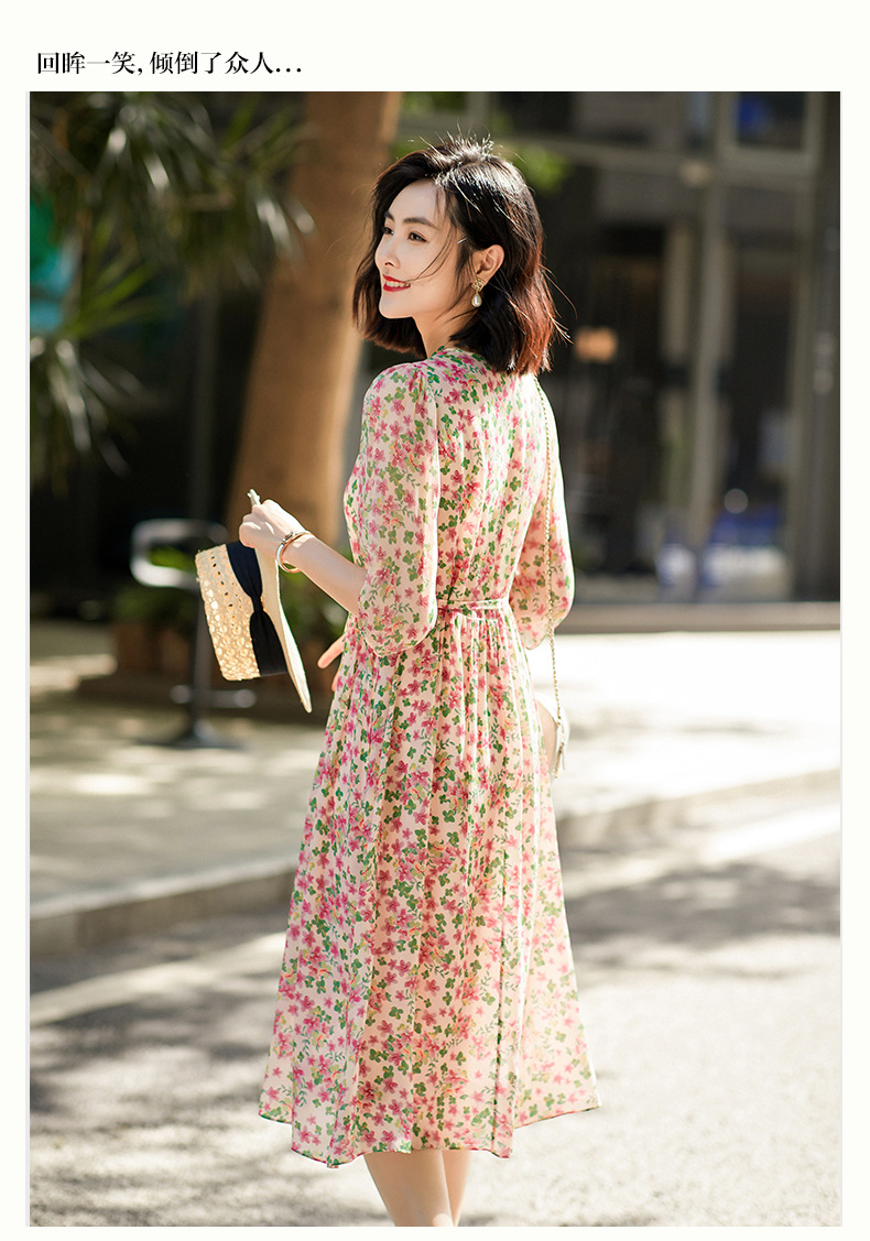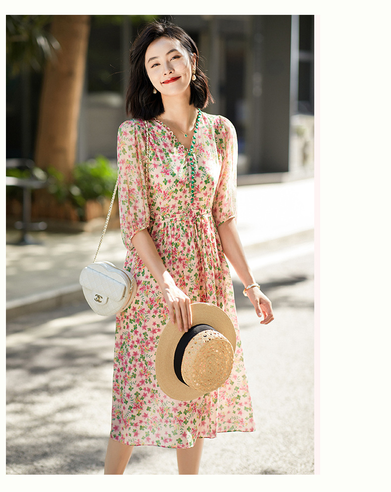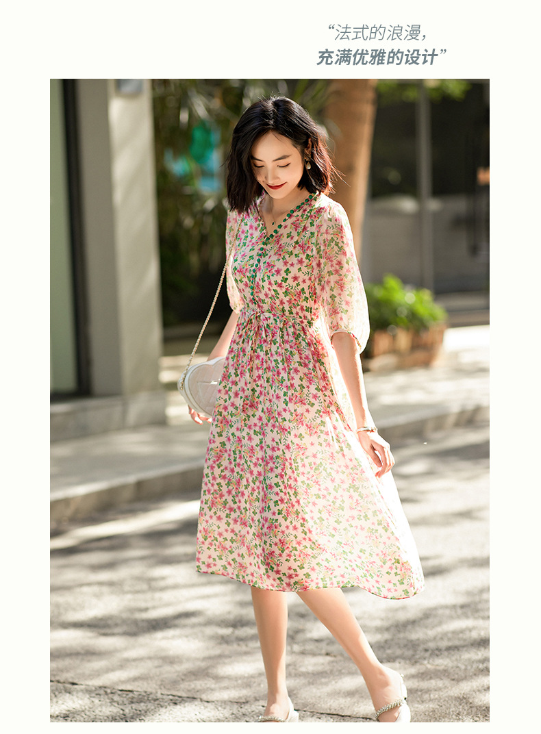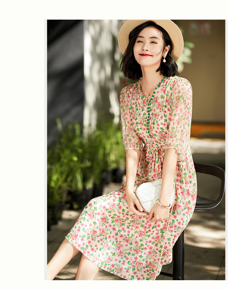 Chiếc váy mặc vào mùa hè này có họa tiết hoa nhỏ xinh, tạo cảm giác tươi trẻ và nhẹ nhàng. Cổ váy dáng chữ V giúp tôn dáng cổ, eo thắt nhẹ cùng dây buộc điều chỉnh linh hoạt giúp ôm sáng cơ thể một cách dịu dàng. Chất liệu lụa mềm mại, thoáng mát, mang lại sự dễ chịu khi mặc. Sản phẩm phù hợp cho nhiều dịp đi chơi, dạo phố hay gặp gỡ bạn bè. | Tên sản phẩm: Váy Đầm Liền Thân Nữ Chất Liệu Lụa Tơ Tằm Dáng Ôm Họa Tiết Hoa Cổ Chữ V Trông Trẻ Hơn Tuổi Hàng Mùa Hè - Thời Trang Nữ | Mã sản phẩm: K7035 - Giá: 3.010.000đ | Mã nhà sản xuất: SHDA-G06Hình ảnh sản phẩm