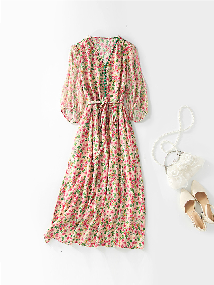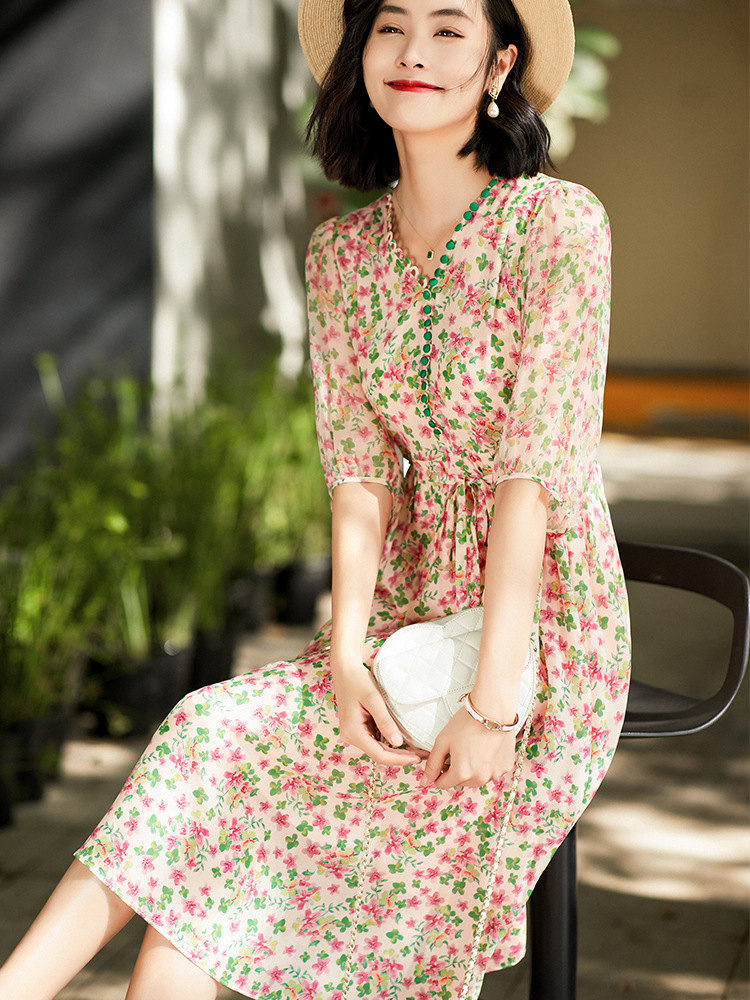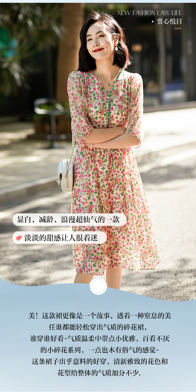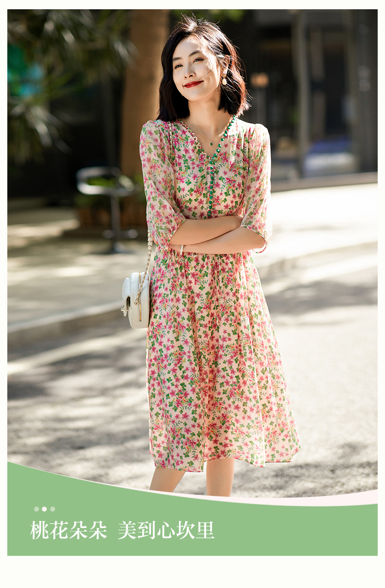 Chiếc váy mặc vào mùa hè này có họa tiết hoa nhỏ xinh, tạo cảm giác tươi trẻ và nhẹ nhàng. Cổ váy dáng chữ V giúp tôn dáng cổ, eo thắt nhẹ cùng dây buộc điều chỉnh linh hoạt giúp ôm sáng cơ thể một cách dịu dàng. Chất liệu lụa mềm mại, thoáng mát, mang lại sự dễ chịu khi mặc. Sản phẩm phù hợp cho nhiều dịp đi chơi, dạo phố hay gặp gỡ bạn bè. | Tên sản phẩm: Váy Đầm Liền Thân Nữ Chất Liệu Lụa Tơ Tằm Dáng Ôm Họa Tiết Hoa Cổ Chữ V Trông Trẻ Hơn Tuổi Hàng Mùa Hè - Thời Trang Nữ | Mã sản phẩm: K7035 - Giá: 3.010.000đ | Mã nhà sản xuất: SHDA-G06Hình ảnh sản phẩm