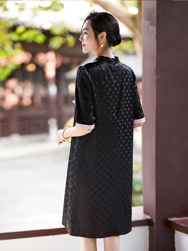 Chiếc đầm dáng áo dài cách tân, lấy cảm hứng từ nét đẹp xưa, được dệt từ chất liệu lụa mềm mại, thoáng mát. Thiết kế ôn nhẹ form dáng, tôn lên đường nét cơ thể một cách tinh tế. Sản phẩm phù hợp cho những dịp gặp mặt, dạo phố hay chụp ảnh. Bạn có thể mặc cùng giày bệt hoặc guốc mộc để tạo nên một phong cách nhẹ nhàng, thanh lịch. | Tên sản phẩm: Váy Đầm Liền Thân Nữ Chất Liệu Lụa Tơ Tằm Hàng Mùa Hè Phục Cổ Cổ Điển - Thời Trang Nữ | Mã sản phẩm: K7013 - Giá: 2.910.000đ | Mã nhà sản xuất: SHDA-G06Hình ảnh sản phẩm