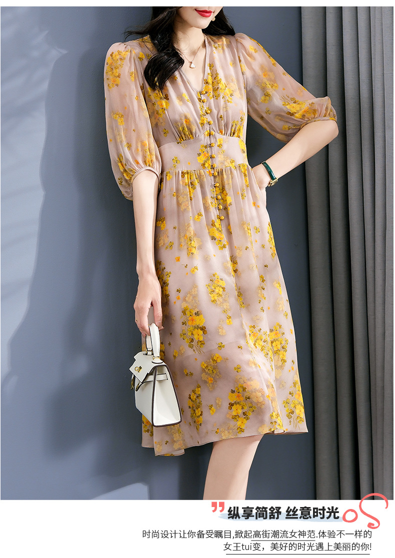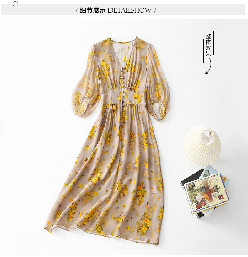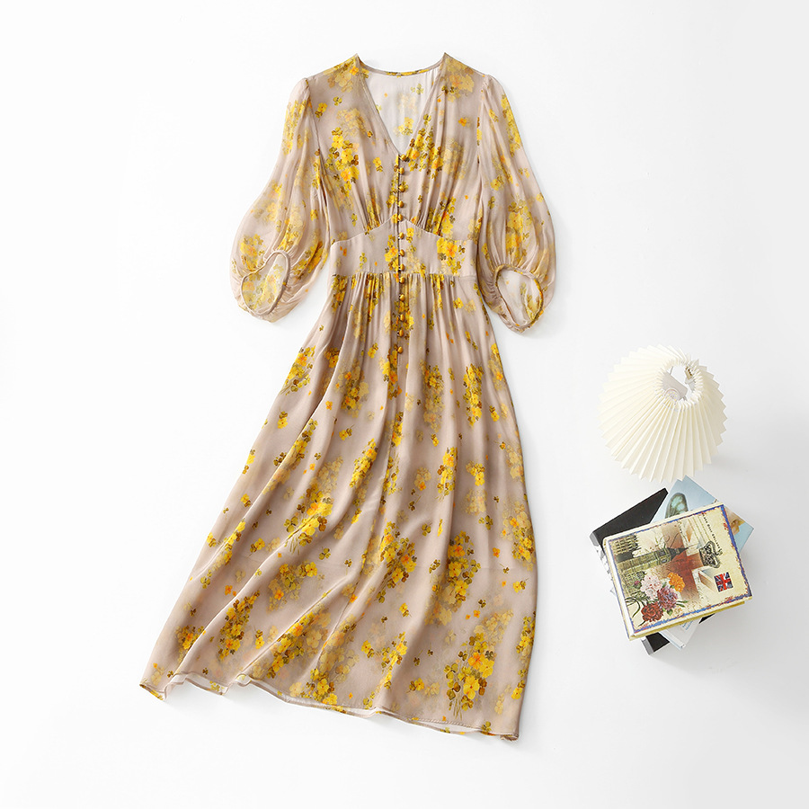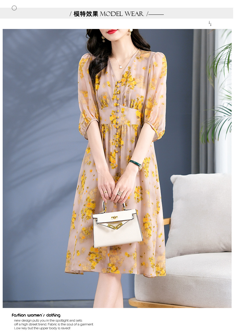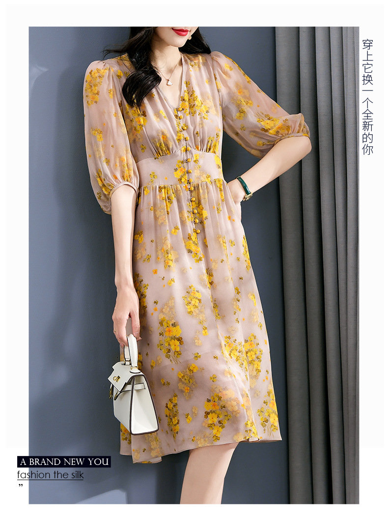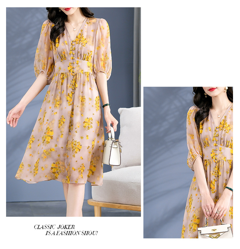 Chiếc váy dành cho những ngày hè, được dệt từ sợi tơ tự nhiên, mang đến cảm giác mát mẻ và nhẹ nhàng. Thiết kế trẻ trung với cổ chữ V, eo có dây thun co giãn ôm vừa vặn, giúp tôn dáng một cách tinh tế. Hoa văn in trên nền vải mỏng nhẹ tạo nên điểm nhấn nữ tính. Bạn có thể mặc đi làm, dạo phố hay dự những buổi gặp mặt thân mật. Giặt tay và phơi trong bóng râm để giữ chất vải được bền đẹp. | Tên sản phẩm: Váy Đầm Liền Thân Nữ Chất Liệu Lụa Tơ Tằm Họa Tiết Hoa Cổ Chữ V Hàng Mùa Hè - Thời Trang Nữ | Mã sản phẩm: K6994 - Giá: 2.870.000đ | Mã nhà sản xuất: SHDA-G06Hình ảnh sản phẩm