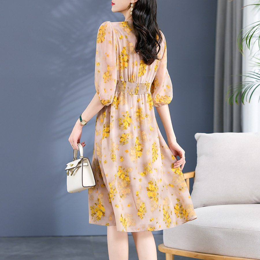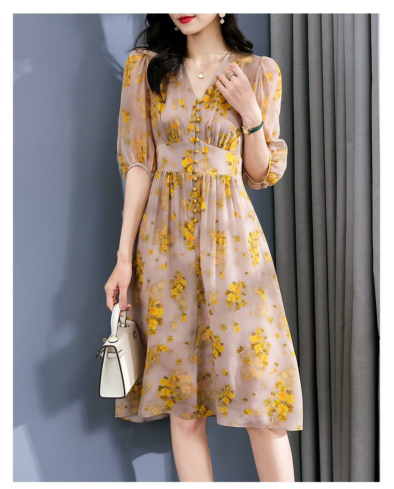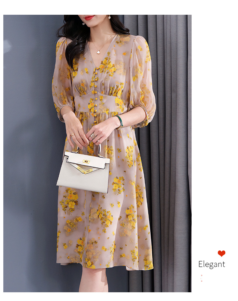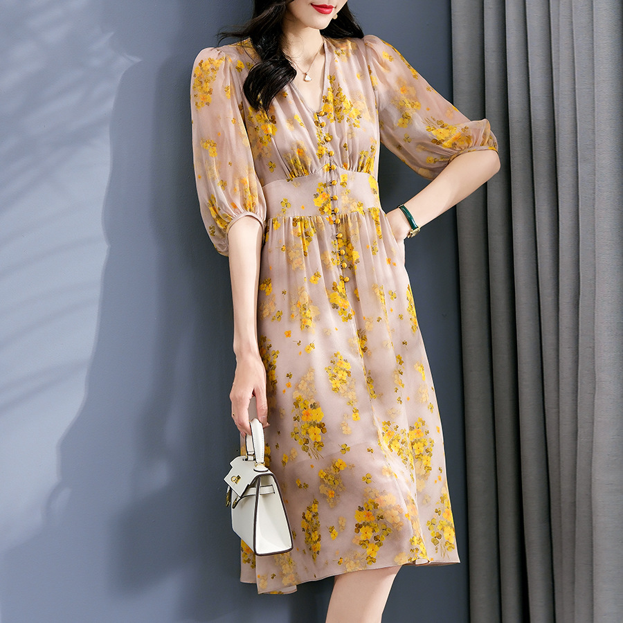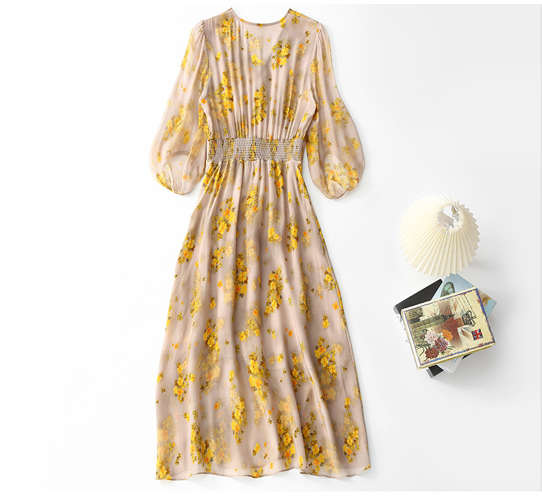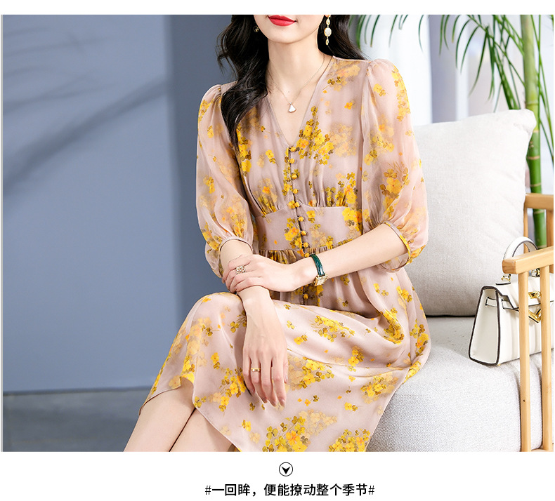 Chiếc váy dành cho những ngày hè, được dệt từ sợi tơ tự nhiên, mang đến cảm giác mát mẻ và nhẹ nhàng. Thiết kế trẻ trung với cổ chữ V, eo có dây thun co giãn ôm vừa vặn, giúp tôn dáng một cách tinh tế. Hoa văn in trên nền vải mỏng nhẹ tạo nên điểm nhấn nữ tính. Bạn có thể mặc đi làm, dạo phố hay dự những buổi gặp mặt thân mật. Giặt tay và phơi trong bóng râm để giữ chất vải được bền đẹp. | Tên sản phẩm: Váy Đầm Liền Thân Nữ Chất Liệu Lụa Tơ Tằm Họa Tiết Hoa Cổ Chữ V Hàng Mùa Hè - Thời Trang Nữ | Mã sản phẩm: K6994 - Giá: 2.870.000đ | Mã nhà sản xuất: SHDA-G06Hình ảnh sản phẩm