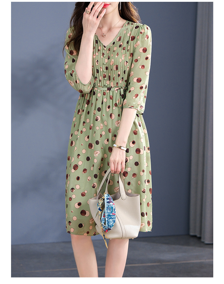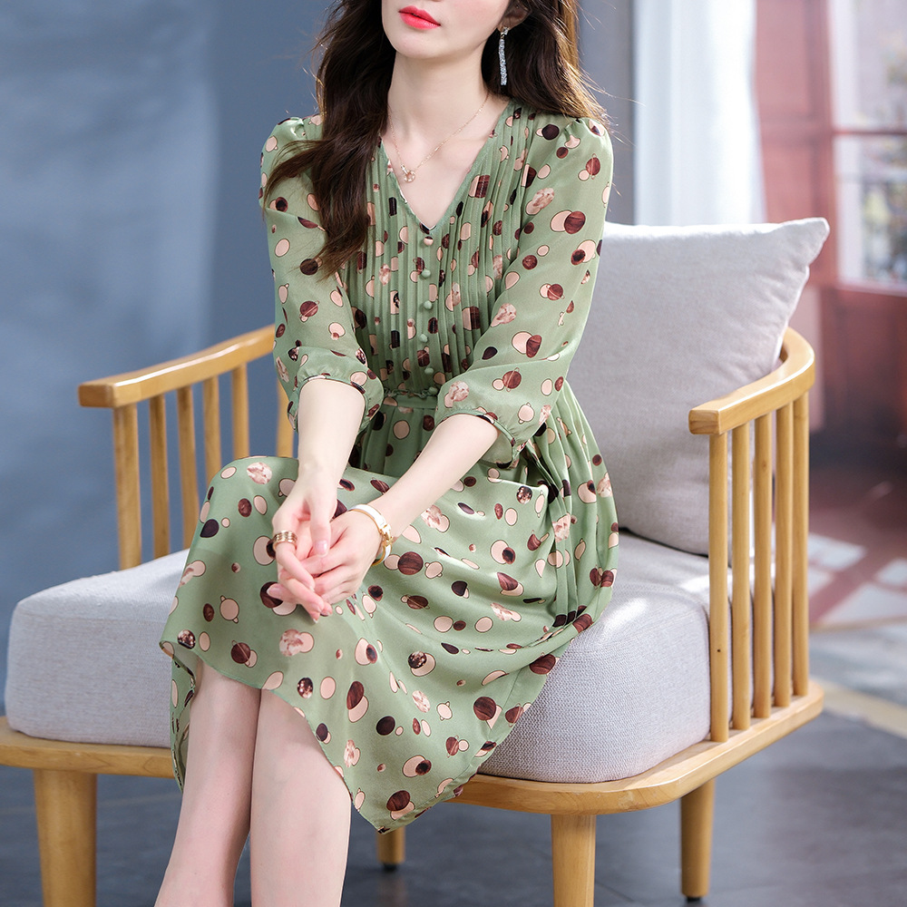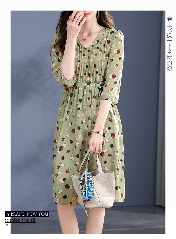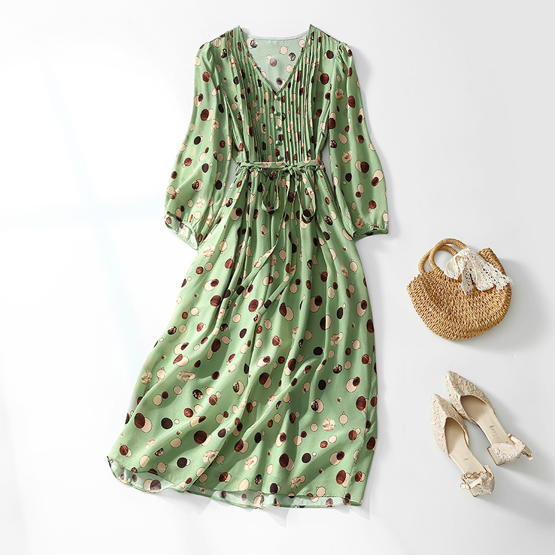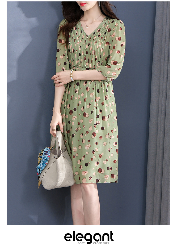 Chiếc đầm mới cho nàng thêm phần duyên dáng. Thiết kế cổ chữ V tôn dáng, eo thắt nơ nhẹ nhàng tạo điểm nhấn. Tay áo dài ba phần tay thời thượng. Chất liệu lụa mềm mại, in họa tiết cùng những đường xếp ly tinh tế. Mẫu đầm này phù hợp cho nhiều dịp gặp gỡ, dễ dàng phối cùng giày cao gót và túi xách. Giặt tay nhẹ nhàng để giữ form vải bền đẹp. | Tên sản phẩm: Váy Đầm Liền Thân Nữ Chất Liệu Lụa Tơ Tằm Họa Tiết Hoa Cổ Chữ V Hàng Mùa Hè - Thời Trang Nữ | Mã sản phẩm: K7017 - Giá: 2.850.000đ | Mã nhà sản xuất: SHDA-G06Hình ảnh sản phẩm