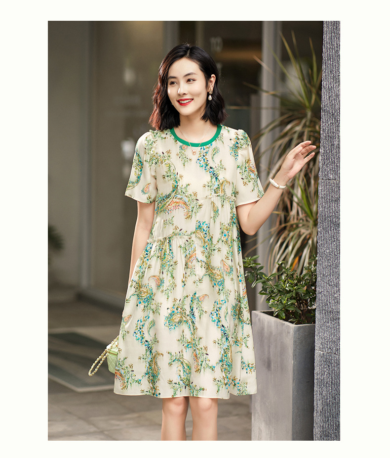 Chiếc đầm này được dệt từ chất liệu tơ lụa mềm mại, mang đến cảm giác dễ chịu khi mặc. Kiểu dáng rộng rãi thoải mái với phần cổ được may kiểu xoắn đặc biệt, tạo nên nét đẹp trẻ trung và thanh thoát. Trên nền vải là họa tiết hoa văn hình hạt điều tinh tế. Sản phẩm phù hợp để mặc đi làm hoặc dự những buổi gặp mặt thân mật, dễ dàng phối cùng giày dép và phụ kiện. | Tên sản phẩm: Váy Đầm Liền Thân Nữ Chất Liệu Lụa Tơ Tằm Họa Tiết Hoa Dày Ấm Trông Trẻ Hơn Tuổi - Thời Trang Nữ | Mã sản phẩm: B4982 - Giá: 2.820.000đ | Mã nhà sản xuất: SHDA-G06Hình ảnh sản phẩm