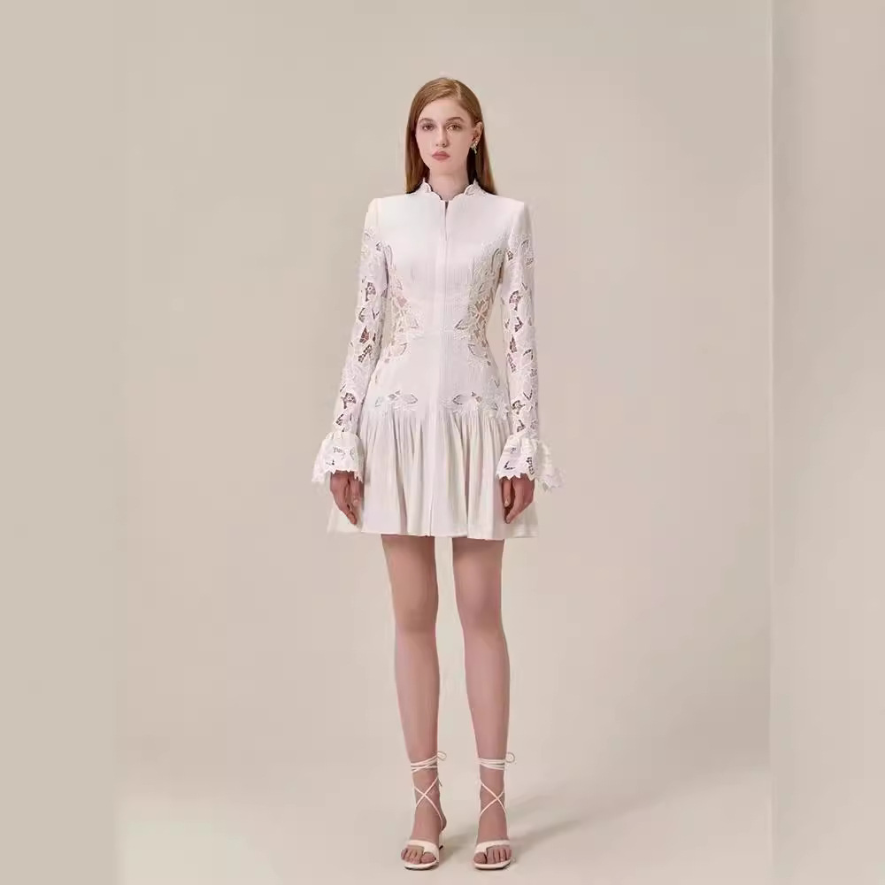 Chiếc đầm ngắn tay dài này có điểm nhấn đặc biệt ở phần tạo hình móc xếp lớp tinh tế, tạo nên những họa tiết ren rỗng duyên dáng. Thiết kế ôm nhẹ vòng eo, giúp tôn dáng người mặc. Chất vải màu trắng mềm mại mang lại cảm giác dễ chịu. Sản phẩm phù hợp để mặc trong nhiều dịp khác nhau. Có thể giặt bằng tay hoặc máy ở chế độ nhẹ để giữ form áo và độ bền của chất liệu. | Tên sản phẩm: Váy Đầm Liền Thân Nữ Chất Liệu Ren Dài Tay Họa Tiết Hoa - Thời Trang Nữ | Mã sản phẩm: K0766 - Giá: 4.070.000đ | Mã nhà sản xuất: FORYCT-G06Hình ảnh sản phẩm