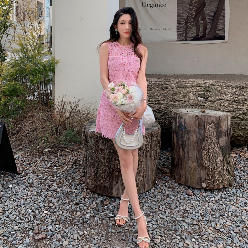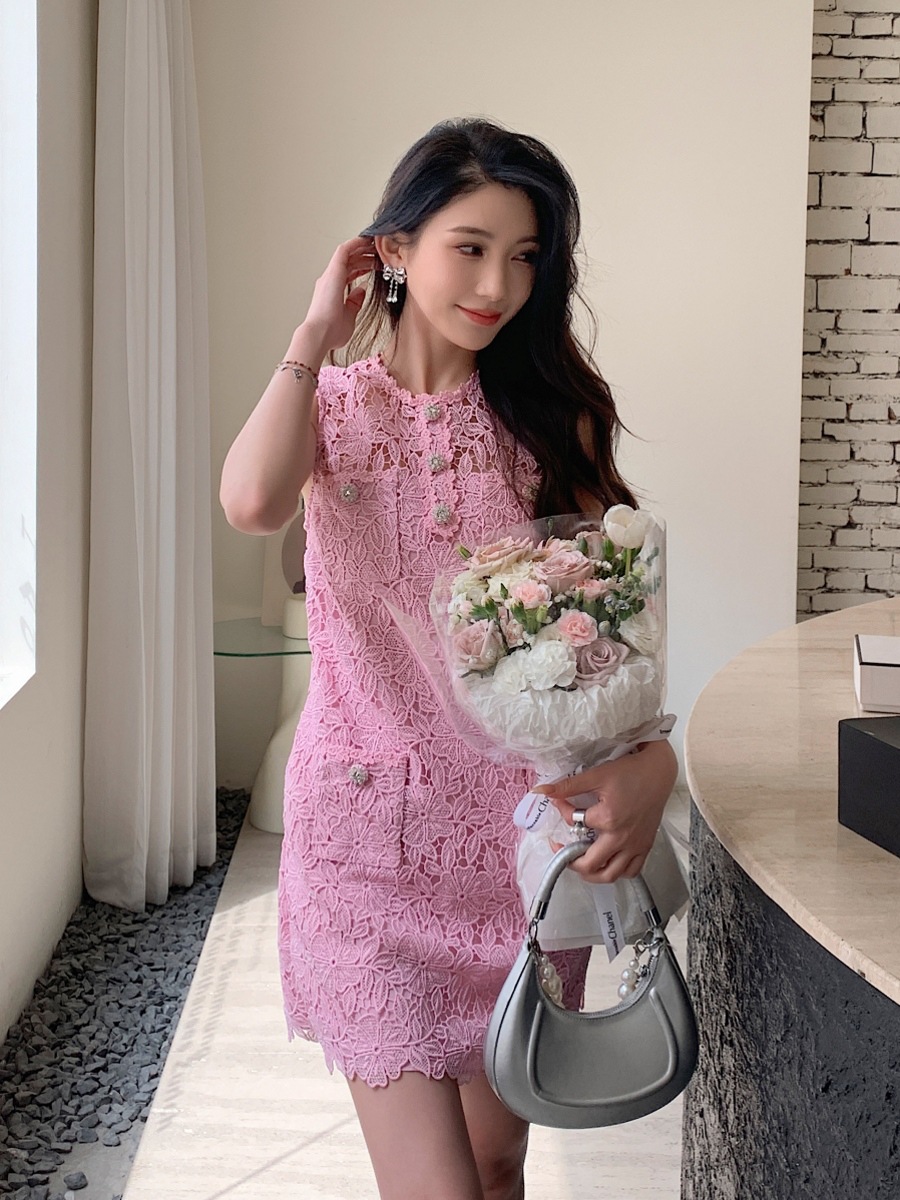 Chiếc váy ngắn không tay cho các bạn gái, kiểu dáng chữ A thanh thoát. Điểm nhấn là chất ren màu hồng phấn dịu dàng, kết hợp họa tiết thời trang. Thiết kế này phù hợp cho mùa xuân và hè. Bạn có thể mặc đi chơi, dạo phố hay dự những buổi gặp mặt thân mật. Dễ dàng phối cùng giày búp bê hoặc sandals để tạo vẻ ngoại trẻ trung, năng động. | Tên sản phẩm: Váy Đầm Liền Thân Nữ Chất Liệu Ren Dáng Chữ A Hàng Mùa Hè - Thời Trang Nữ | Mã sản phẩm: A0687 - Giá: 2.120.000đ | Mã nhà sản xuất: HADN-G05Hình ảnh sản phẩm