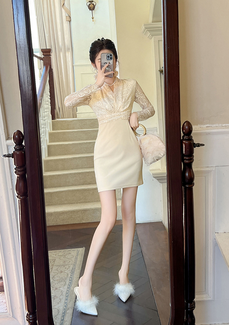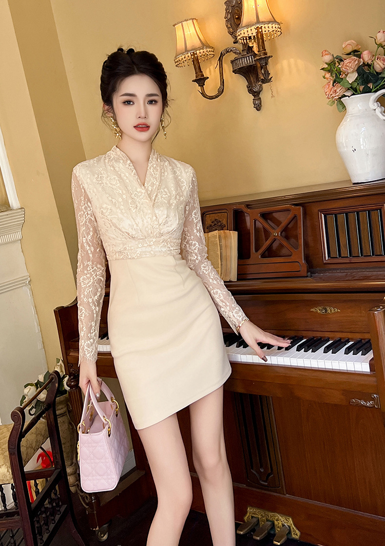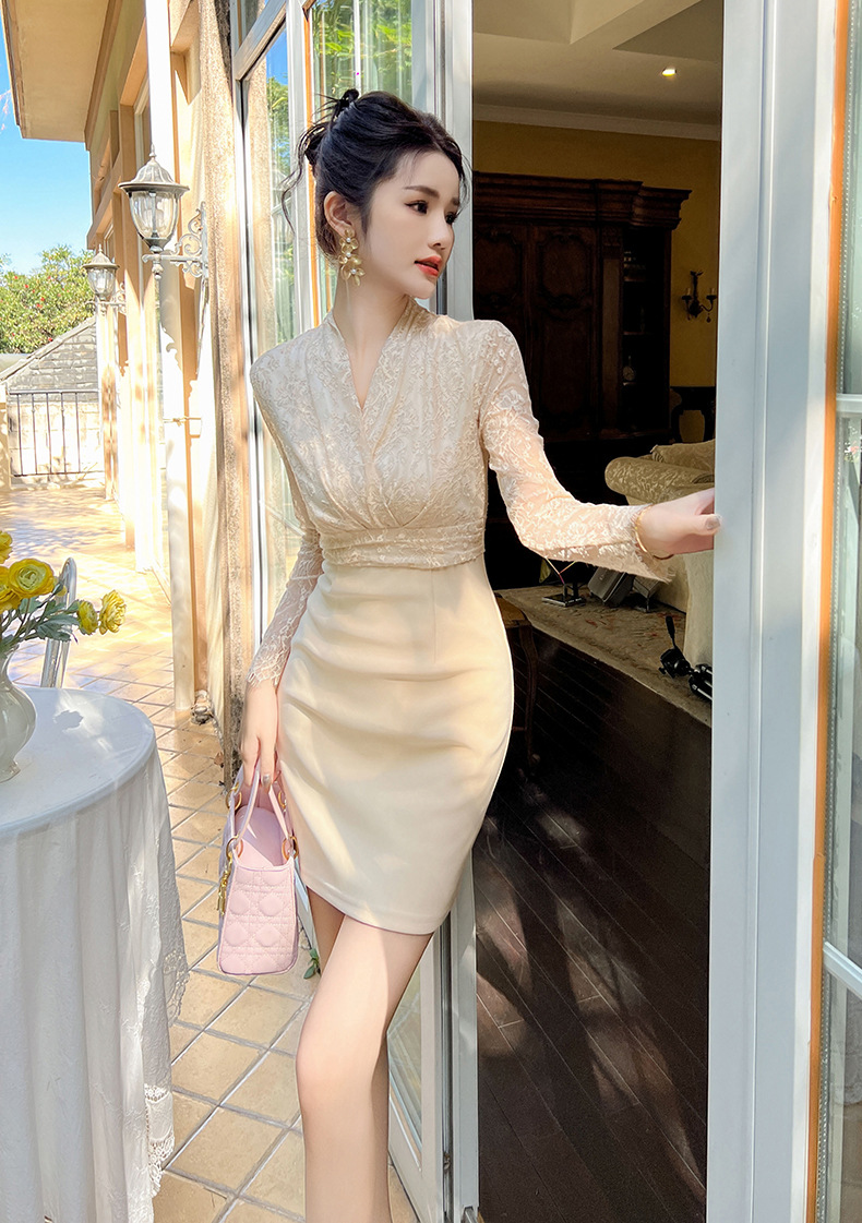 Chiếc đầm mới cho mùa xuân 2024, được thiết kế theo kiểu hai lớp tạo vẻ thanh lịch. Cổ chữ V nhẹ nhàng kết hợp cùng điểm nhấn là chi tiết đăng ten tinh tế, giúp tôn lên đường nét cơ thể một cách dịu dàng. Kiểu dáng ôm vừa phải và phần eo bo gọn phù hợp cho nhiều dịp gặp mặt. Mặc cùng giày cao gót hoặc giày đế bằng đều phù hợp, dễ dàng phối đồ để có vẻ ngoài ưa nhìn. | Tên sản phẩm: Váy Đầm Liền Thân Nữ Chất Liệu Ren Dáng Ôm Cả Bộ 2 Món Cổ Chữ V Hàng Mùa Xuân Thu Đông - Thời Trang Nữ | Mã sản phẩm: K7824 - Giá: 1.090.000đ | Mã nhà sản xuất: CHDG-G03Hình ảnh sản phẩm