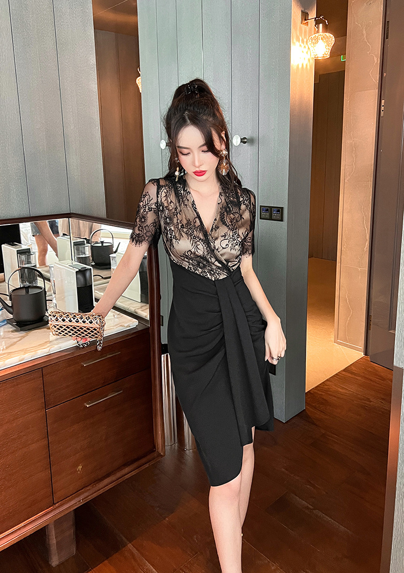 Chiếc váy này có kiểu dáng ôn hòa, tôn lên dáng người một cách nhẹ nhàng. Cổ chữ V kết hợp cùng chất vải ren tinh tế, giúp tạo điểm nhấn cho khuôn mặt. Thiết kế eo thon cùng phần bụng có các nếp gấp xử lý khéo léo, giúp che đi những phần chưa hoàn hảo. Bạn có thể mặc chiếc váy này để đi làm, dự tiệc hay gặp mặt bạn bè, đều rất phù hợp và dễ chịu. | Tên sản phẩm: Váy Đầm Liền Thân Nữ Chất Liệu Ren Dáng Ôm Hàng Mùa Hè Phong Cách Hàn Quốc - Thời Trang Nữ | Mã sản phẩm: K3193 - Giá: 1.050.000đ | Mã nhà sản xuất: CHDG-G03Hình ảnh sản phẩm