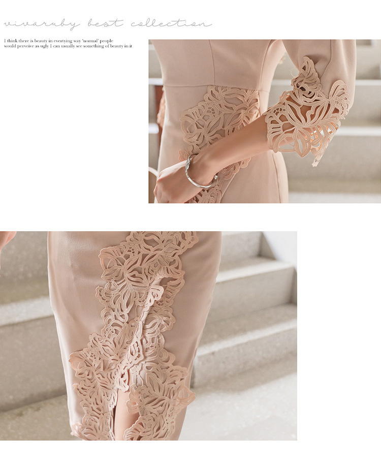 Chiếc đầm dáng dài ôm sát với điểm nhấn là đường ghép vải ren tinh tế dọc thân. Thiết kế này tôn lên đường nét cơ thể một cách thanh lịch, phù hợp cho nhiều dịp gặp mặt. Bạn có thể mặc nó khi đi làm, dự tiệc hay dạo phố. Sản phẩm tạo nên vẻ ngoại hình ưa nhìn, nữ tính và có phong cách cho người mặc. | Tên sản phẩm: Váy Đầm Liền Thân Nữ Chất Liệu Ren Dáng Ôm Họa Tiết Hoa - Thời Trang Nữ | Mã sản phẩm: T2138 - Giá: 800.000đ | Mã nhà sản xuất: JUOUTO-G02Hình ảnh sản phẩm