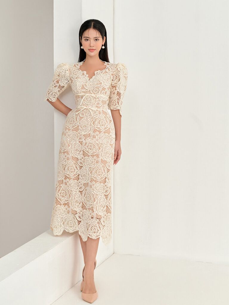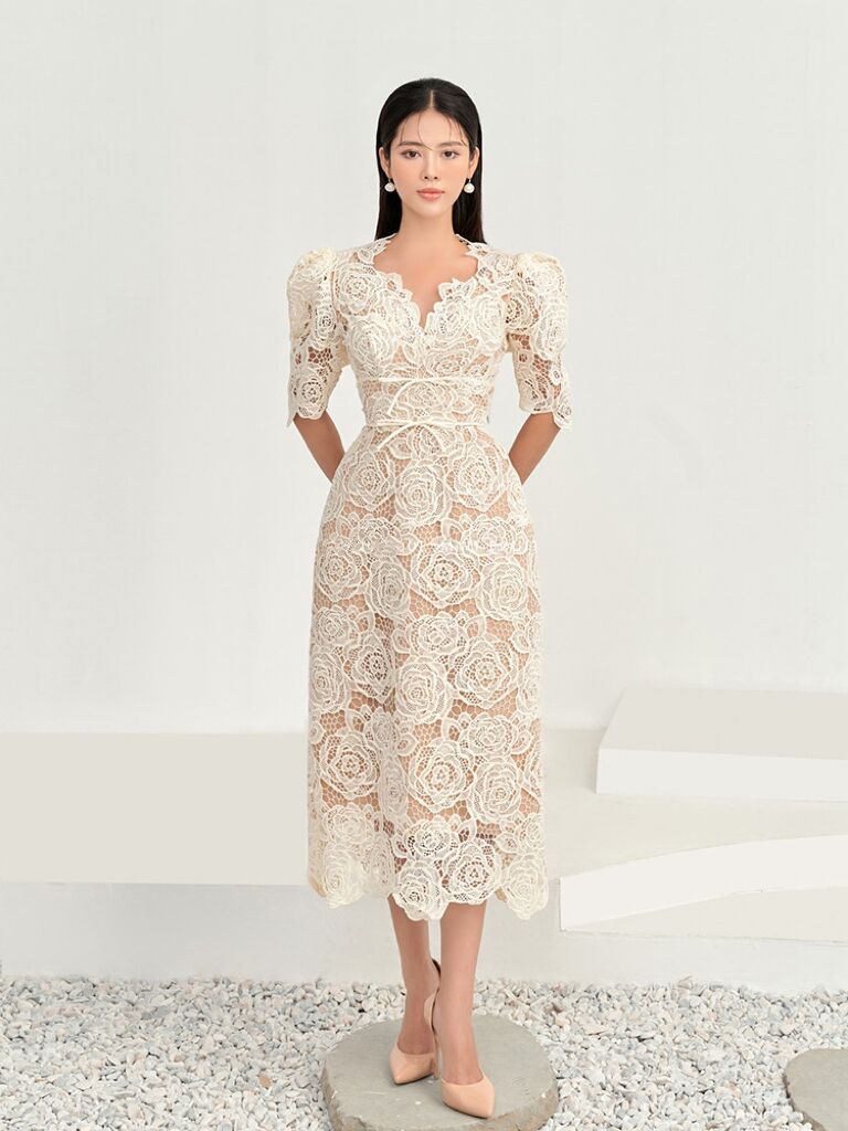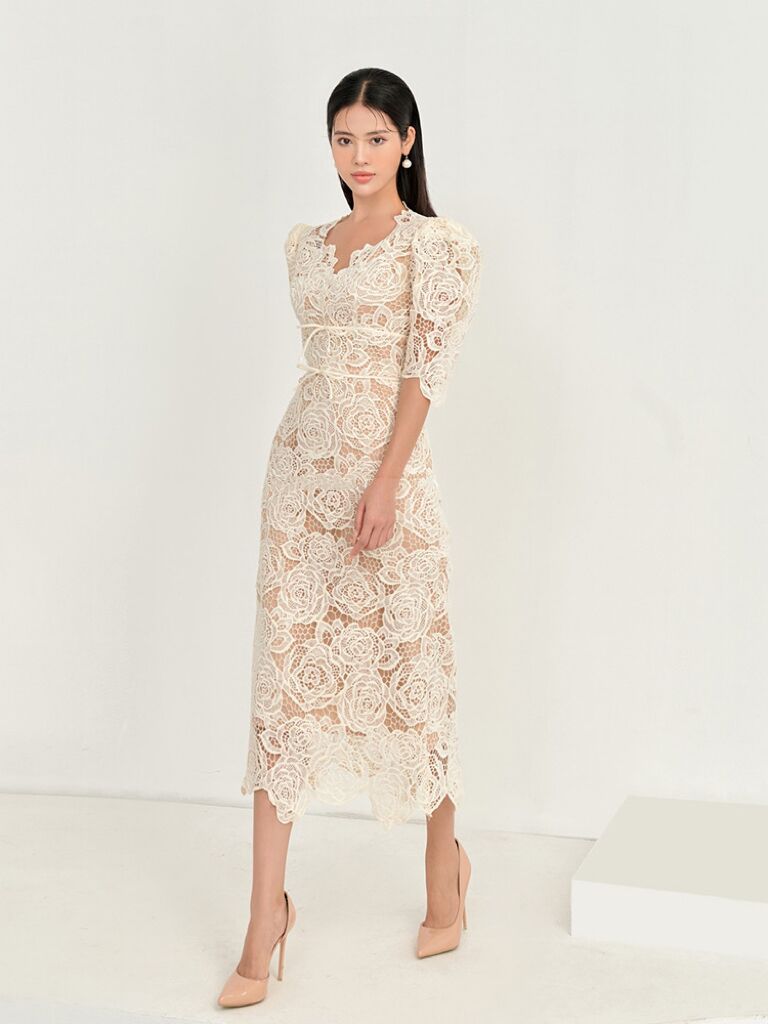 Chiếc váy ngắn tay thêu ren này là sự lựa chọn hoàn hảo cho mùa xuân hè năm 2023, mang đến cho bạn phong cách trẻ trung và thanh lịch. Được thiết kế với kiểu dáng ôm sát, chiếc váy tôn lên đường cong cơ thể một cách tinh tế. Chất liệu ren mềm mại, thoáng khí giúp bạn thoải mái di chuyển trong những ngày nắng nóng. Váy có thể kết hợp với giày cao gót hoặc dép sandal để tạo nên diện mạo nổi bật. Hãy diện chiếc váy này trong những buổi tiệc hoặc gặp gỡ bạn bè để thu hút mọi ánh nhìn! | Tên sản phẩm: Váy Đầm Liền Thân Nữ Chất Liệu Ren Dáng Ôm Ngắn Tay Thêu Họa Tiết Hoa Hàng Mùa Hè - Thời Trang Nữ | Mã sản phẩm: T4485 - Giá: 1.290.000đ | Mã nhà sản xuất: GUDG-G04Hình ảnh sản phẩm