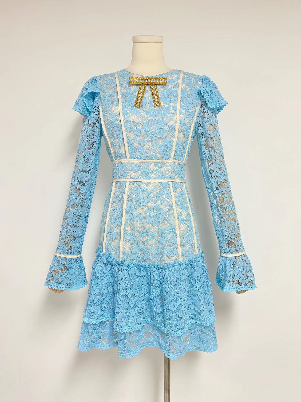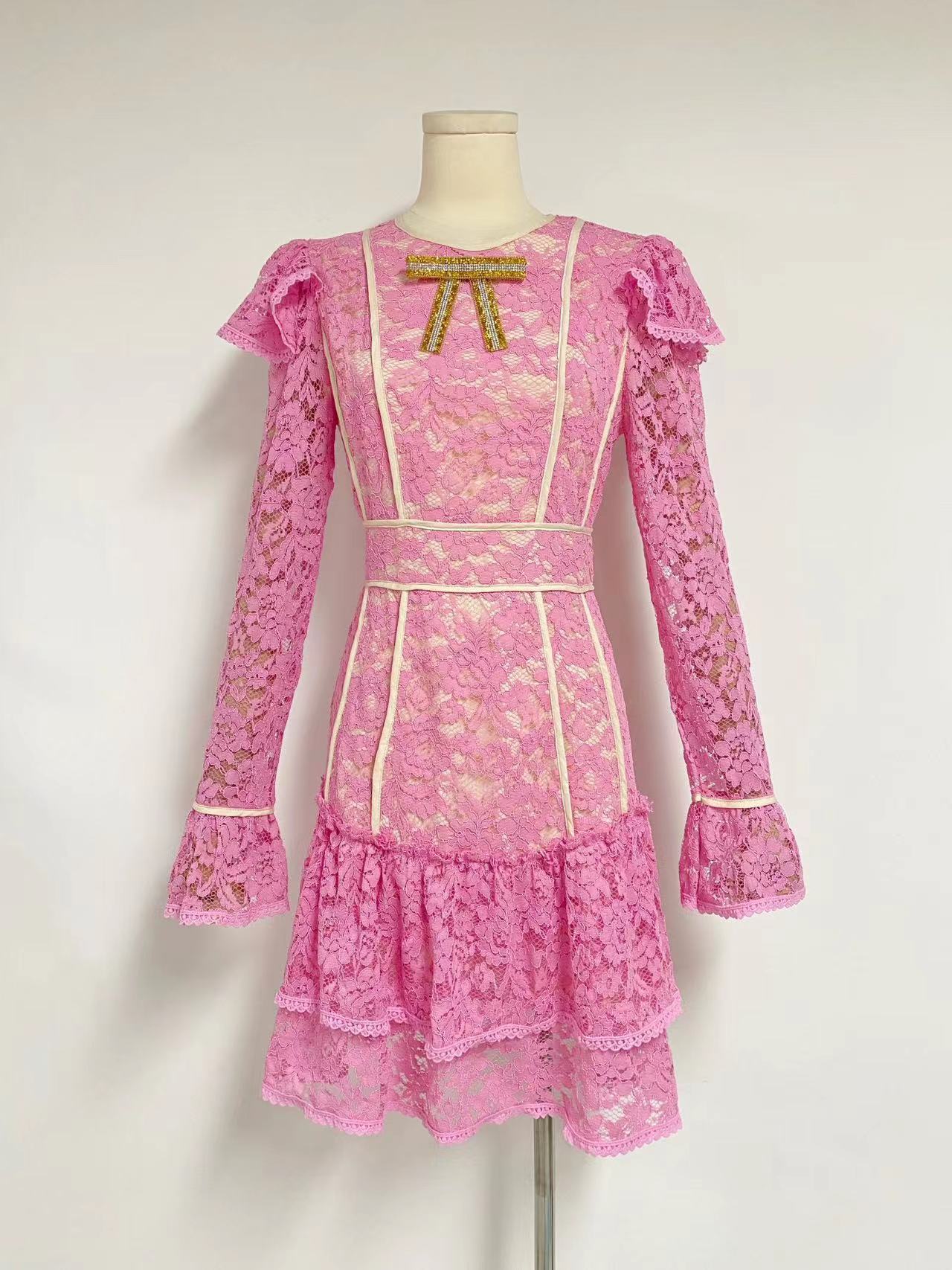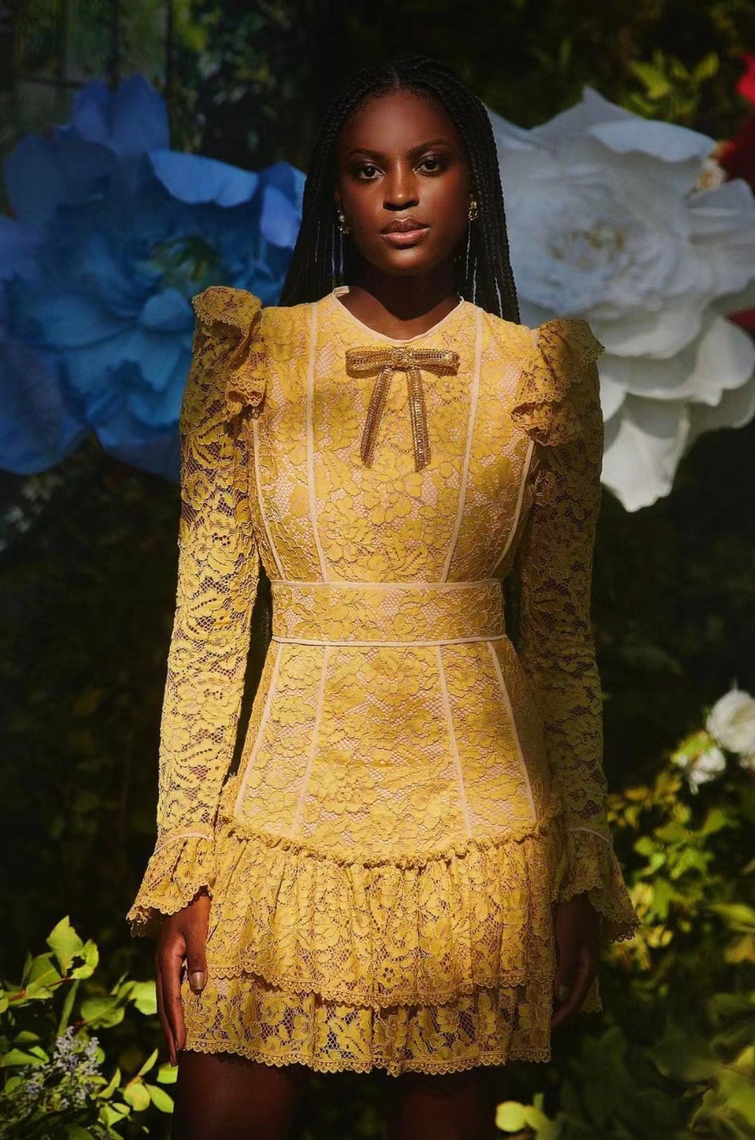 Chiếc đầm ngắn tay loe này là lựa chọn tuyệt vời cho mùa thu. Cổ tròn và eo chiết giúp tôn dáng. Điểm nhấn đặc biệt đến từ các đường viền kết hợp chất liệu ren tinh tế ở tay áo và phần chân váy, tạo nên vẻ đẹp nữ tính và duyên dáng. Mẫu đầm dễ dàng phối hợp với giày cao gót hay giày bệt. Bạn có thể mặc đi làm, đi chơi hoặc dự tiệc nhẹ. | Tên sản phẩm: Váy Đầm Liền Thân Nữ Chất Liệu Ren Hàng Mùa Xuân Thu Đông - Thời Trang Nữ | Mã sản phẩm: K7591 - Giá: 2.290.000đ | Mã nhà sản xuất: GUDG-G05Hình ảnh sản phẩm