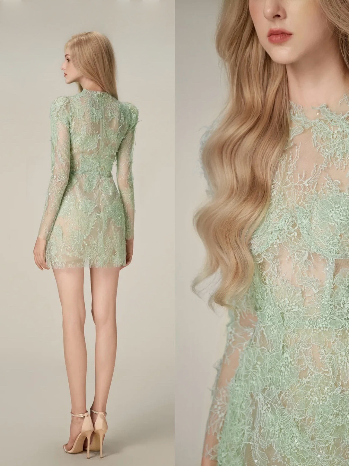 Chiếc đầm ngắn mang sắc xanh tươi mát, điểm nhấn là phần thiết kế ren kết hợp thêu tinh tế tạo nên vẻ đẹp dịu dàng. Chất vải mỏng nhẹ tạo cảm giác thoải mái khi mặc. Kiểu dáng phù hợp cho những buổi gặp mặt thân mật hoặc dạo phố cuối tuần. Sản phẩm mặc kèm áo lót bên trong để tôn lên vẻ duyên dáng. Dễ dàng phối cùng giày sandal hoặc giày bệt để hoàn thiện bộ trang phục. | Tên sản phẩm: Váy Đầm Liền Thân Nữ Chất Liệu Ren Thêu Họa Tiết Hoa Hàng Mùa Xuân Thu Đông - Thời Trang Nữ | Mã sản phẩm: k0613 - Giá: 1.390.000đ | Mã nhà sản xuất: GUDG-G04Hình ảnh sản phẩm