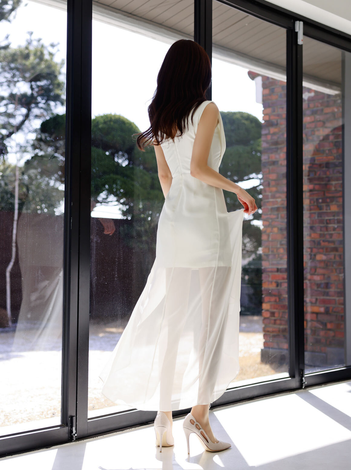 Váy kết hợp chất liệu voan mỏng nhẹ, kiểu dáng một v tạo điểm nhấn cá tính và quyến rũ. Thiết kế kết hợp phần thân ôm nhẹ và vạt xòe rộng phía sau như đuôi chim, tạo dáng điệu thướt tha khi di chuyển. Sản phẩm phù hợp cho các dịp dạo phố, du lịch hoặc dự tiệc. Mặc kèm với giày sandal hoặc giày gót nhẹ để hoàn thiện bộ trang phục. | Tên sản phẩm: Váy Đầm Liền Thân Nữ Chất Liệu Vải Voan - Thời Trang Nữ | Mã sản phẩm: B5558 - Giá: 770.000đ | Mã nhà sản xuất: JUOUTO-G02Hình ảnh sản phẩm