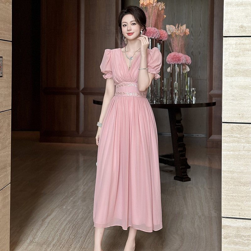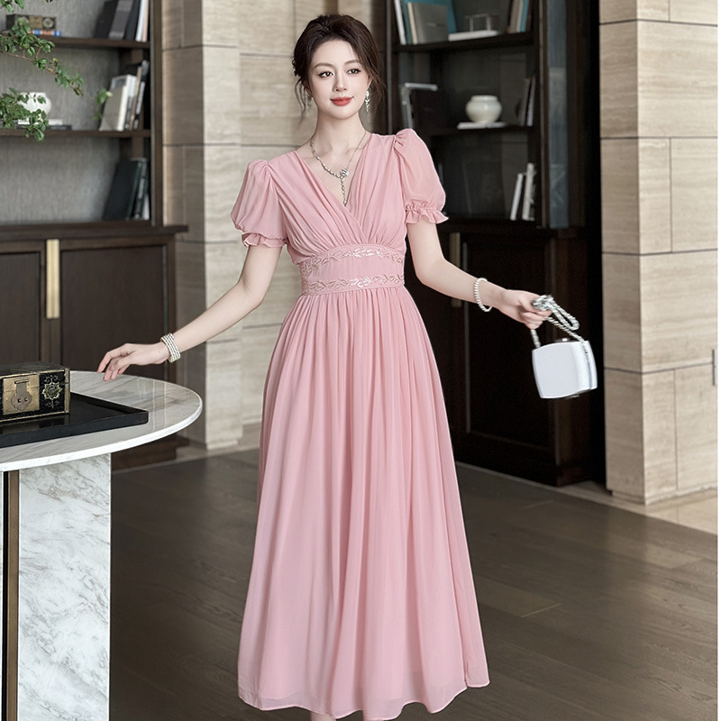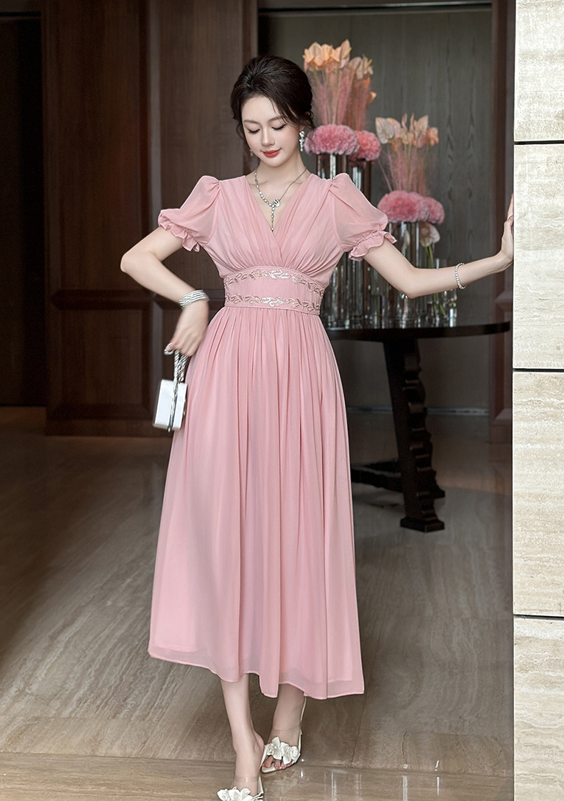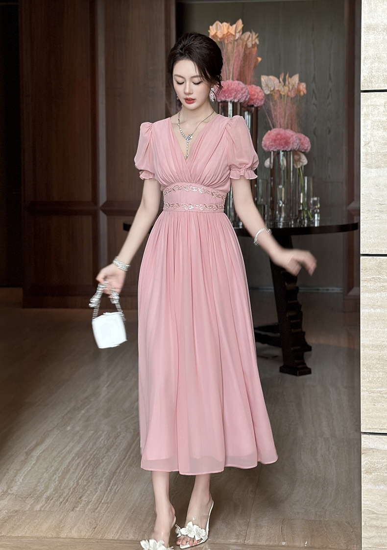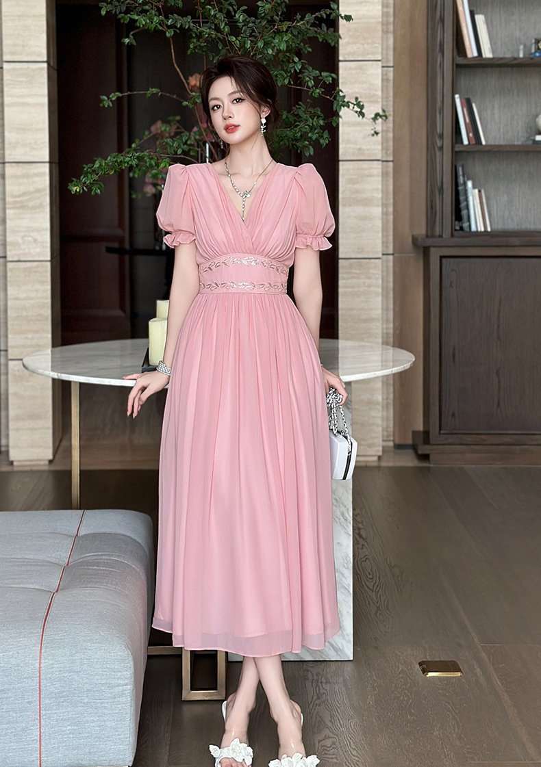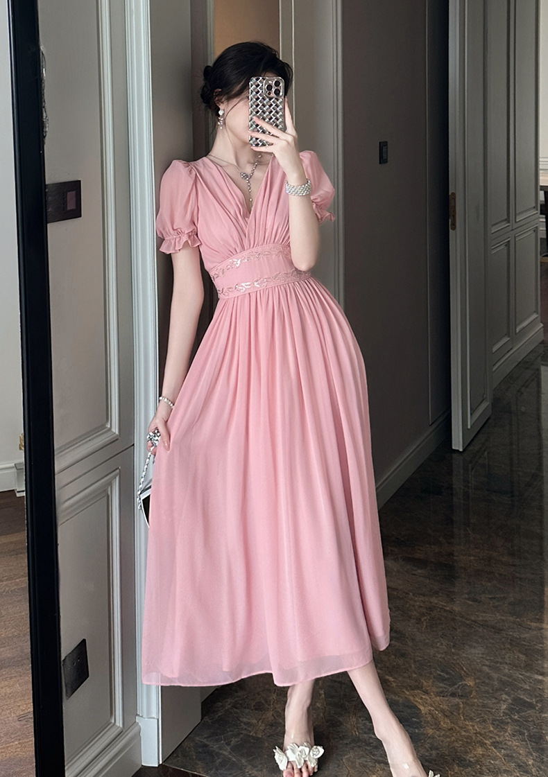 Chiếc váy mới cho mùa hè, mang phong cách Pháp nhẹ nhàng. Váy có cổ chữ V tôn dáng, phần eo được may ôn tạo điểm nhấn. Chất vải mỏng nhẹ bay bổng giúp người mặc cảm thấy thoải mái và năng động. Sắc hồng dịu dàng phù hợp cho những chuyến du lịch hay dạo phố. Dễ dàng phối cùng giày bệt hoặc sandal để có vẻ ngoài tươi tắn. | Tên sản phẩm: Váy Đầm Liền Thân Nữ Chất Liệu Vải Voan Cổ Chữ V Hàng Mùa Hè - Thời Trang Nữ | Mã sản phẩm: L2206 - Giá: 1.390.000đ | Mã nhà sản xuất: CHDG-G04Hình ảnh sản phẩm