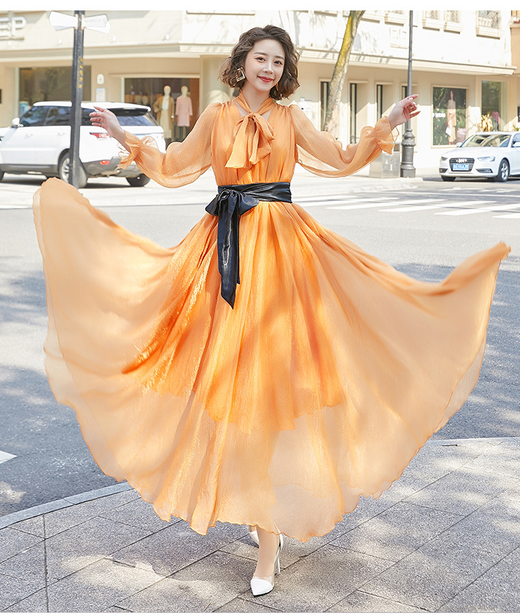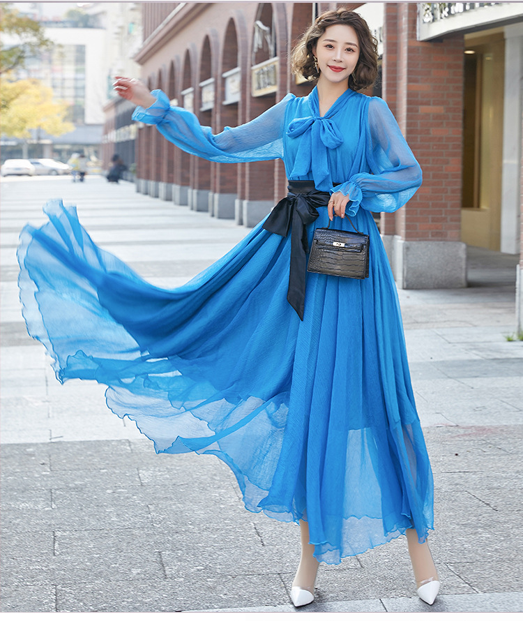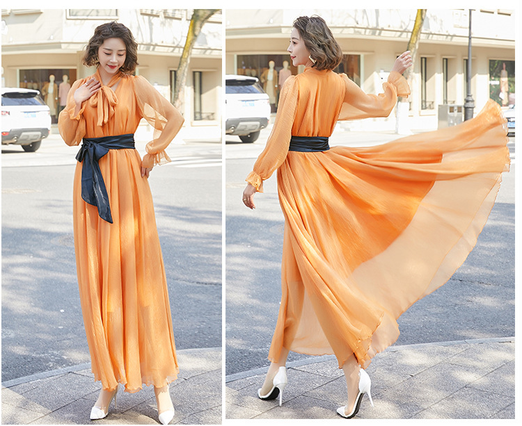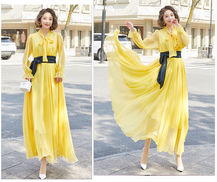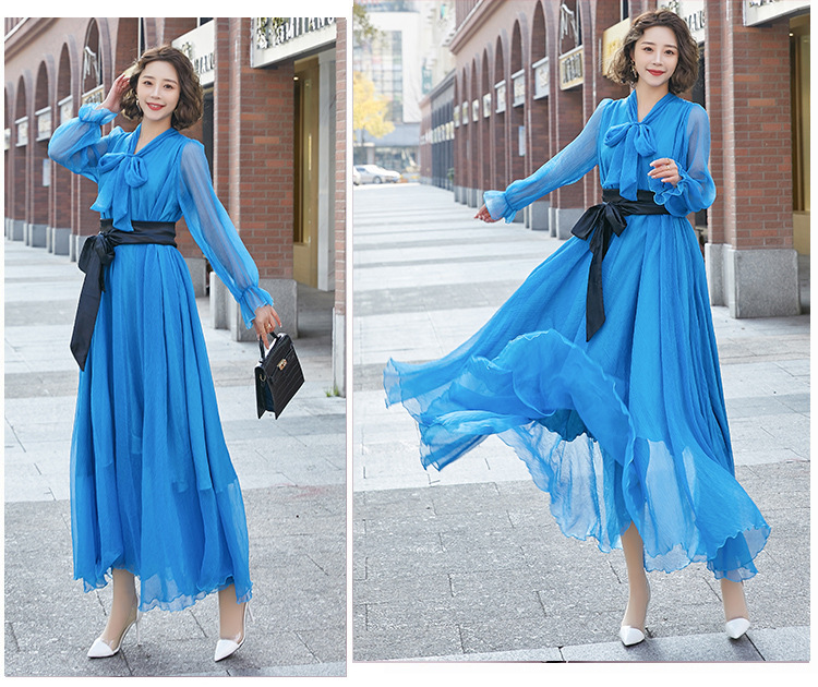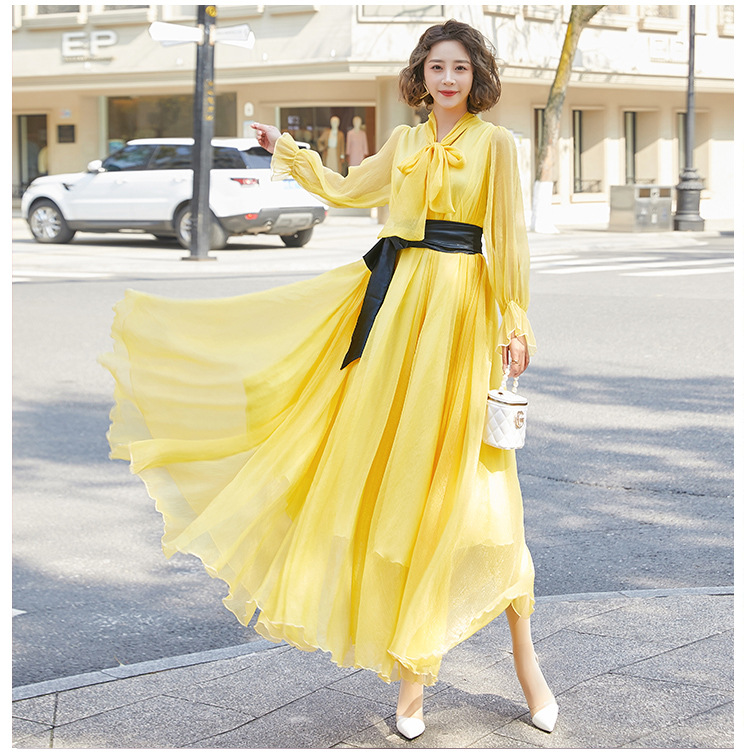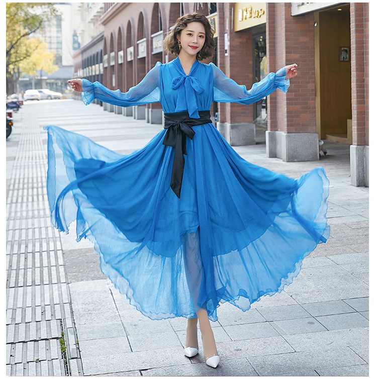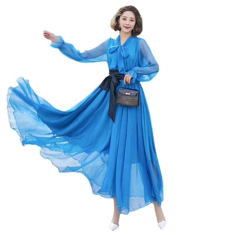 Chiếc váy dài tay dành cho những ngày hè, được may từ chất liệu voan mỏng nhẹ tạo cảm giác thoải mái và dễ chịu. Kiểu dáng thướt tha, phù hợp để đi chơi, dạo phố hay những chuyến du lịch biển. Bạn có thể phối cùng dép sandal và một chiếc mũ rộng vành để tạo điểm nhấn. Mẫu váy này dễ mặc và dễ kết hợp, giúp bạn có được vẻ ngoại năng động và tươi tắn. | Tên sản phẩm: Váy Đầm Liền Thân Nữ Chất Liệu Vải Voan Dài Tay Hàng Mùa Hè Phong Cách Âu Mỹ Đồ Đi Biển Váy Maxi - Thời Trang Nữ | Mã sản phẩm: H5125 - Giá: 940.000đ | Mã nhà sản xuất: TARYUN-G03Hình ảnh sản phẩm