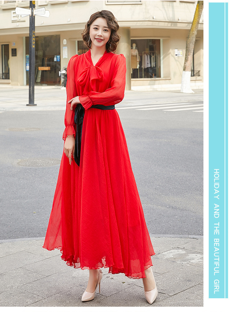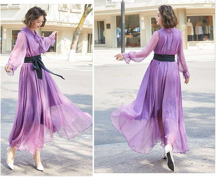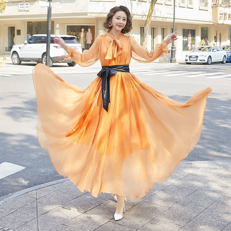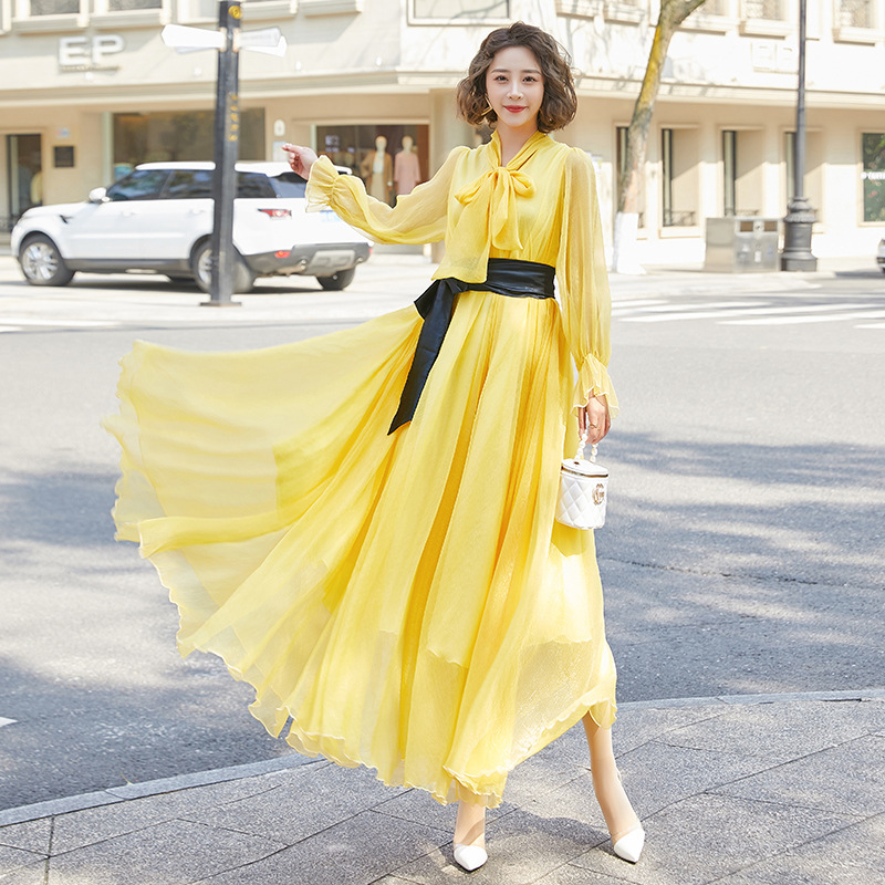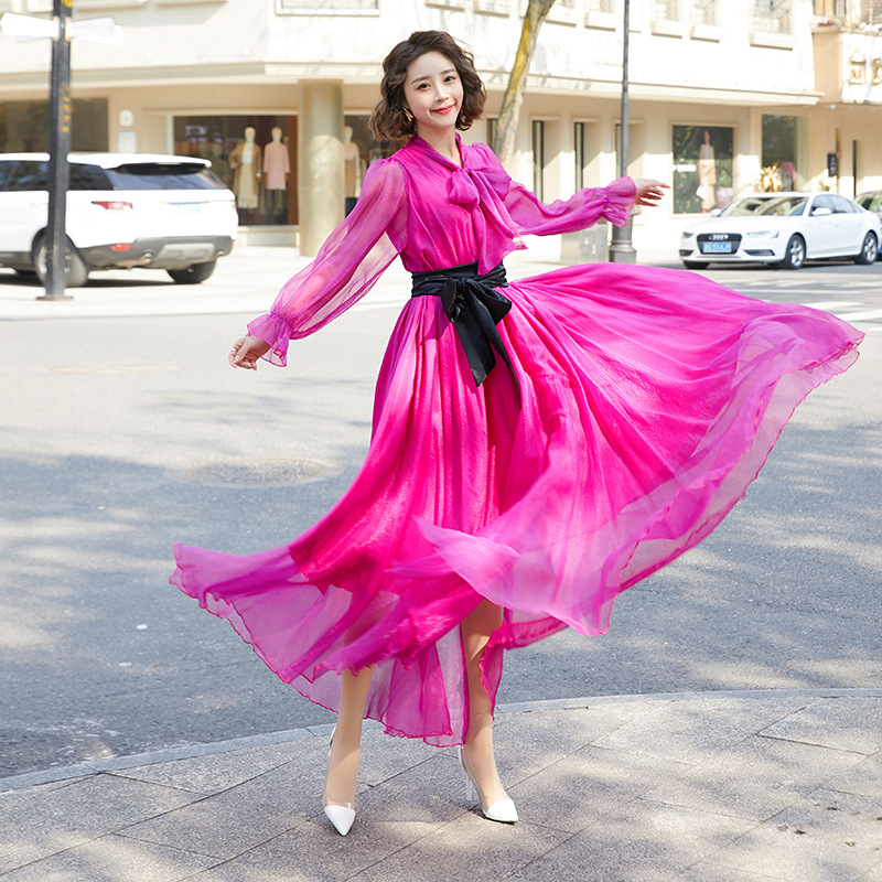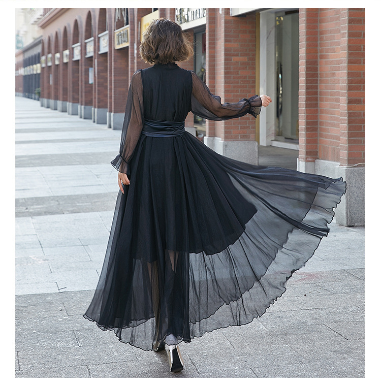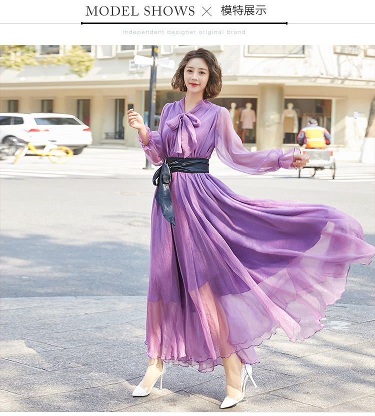 Chiếc váy dài tay dành cho những ngày hè, được may từ chất liệu voan mỏng nhẹ tạo cảm giác thoải mái và dễ chịu. Kiểu dáng thướt tha, phù hợp để đi chơi, dạo phố hay những chuyến du lịch biển. Bạn có thể phối cùng dép sandal và một chiếc mũ rộng vành để tạo điểm nhấn. Mẫu váy này dễ mặc và dễ kết hợp, giúp bạn có được vẻ ngoại năng động và tươi tắn. | Tên sản phẩm: Váy Đầm Liền Thân Nữ Chất Liệu Vải Voan Dài Tay Hàng Mùa Hè Phong Cách Âu Mỹ Đồ Đi Biển Váy Maxi - Thời Trang Nữ | Mã sản phẩm: H5125 - Giá: 940.000đ | Mã nhà sản xuất: TARYUN-G03Hình ảnh sản phẩm