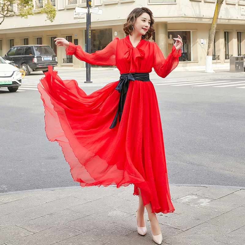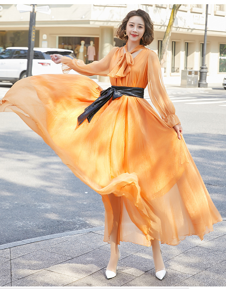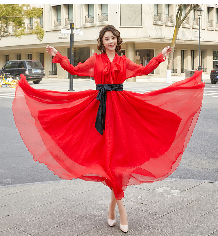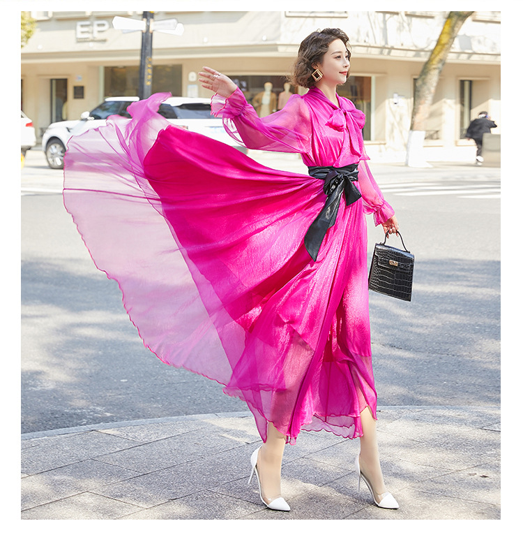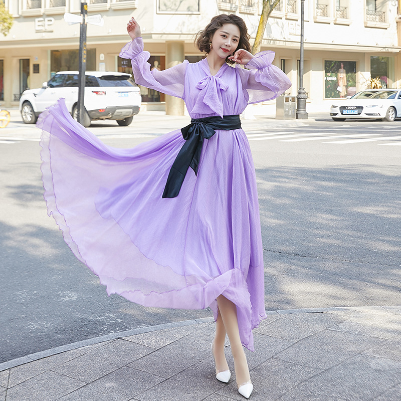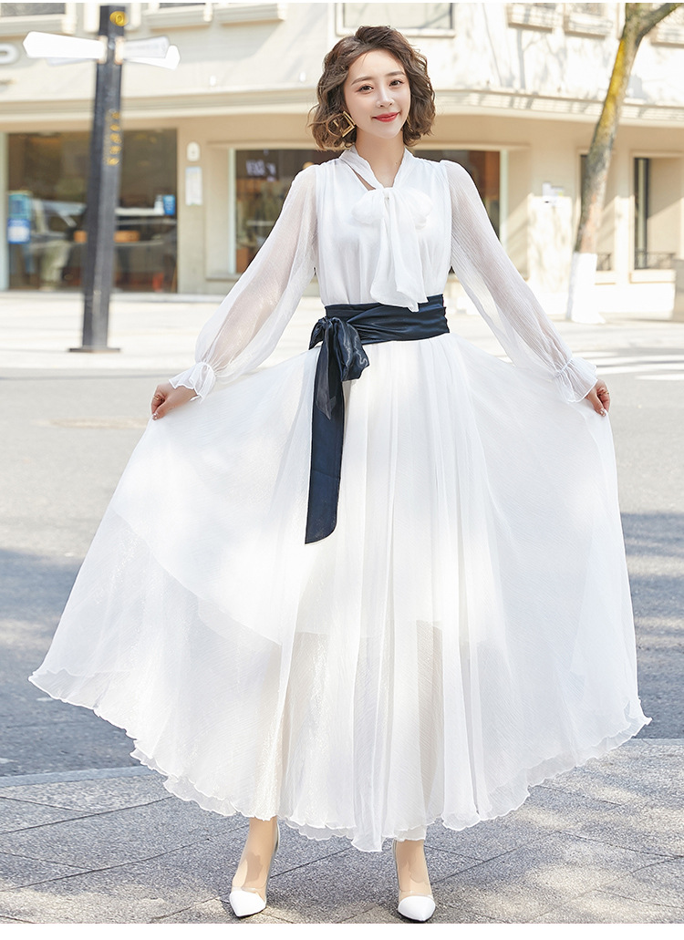 Chiếc váy dài tay dành cho những ngày hè, được may từ chất liệu voan mỏng nhẹ tạo cảm giác thoải mái và dễ chịu. Kiểu dáng thướt tha, phù hợp để đi chơi, dạo phố hay những chuyến du lịch biển. Bạn có thể phối cùng dép sandal và một chiếc mũ rộng vành để tạo điểm nhấn. Mẫu váy này dễ mặc và dễ kết hợp, giúp bạn có được vẻ ngoại năng động và tươi tắn. | Tên sản phẩm: Váy Đầm Liền Thân Nữ Chất Liệu Vải Voan Dài Tay Hàng Mùa Hè Phong Cách Âu Mỹ Đồ Đi Biển Váy Maxi - Thời Trang Nữ | Mã sản phẩm: H5125 - Giá: 940.000đ | Mã nhà sản xuất: TARYUN-G03Hình ảnh sản phẩm