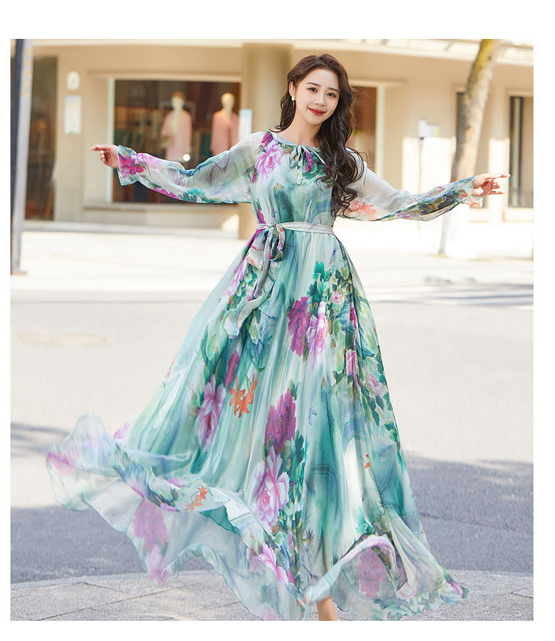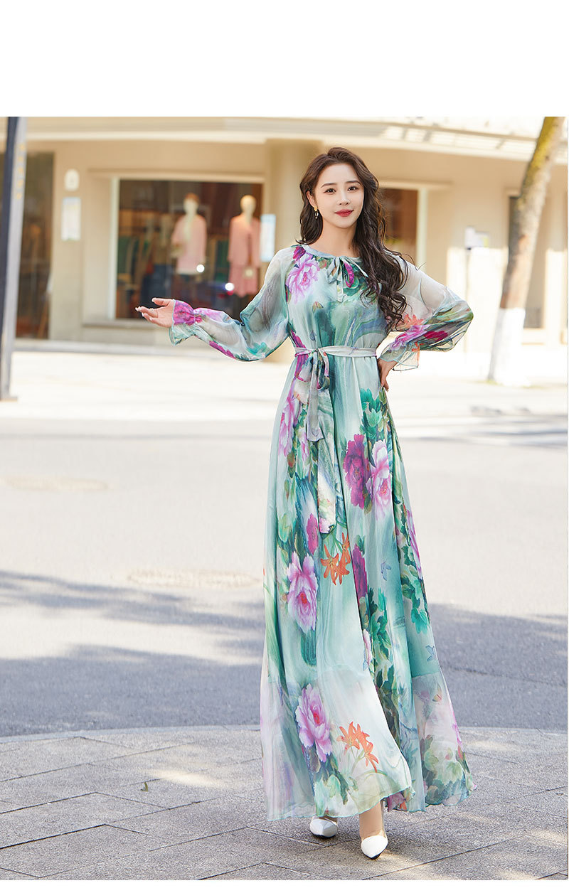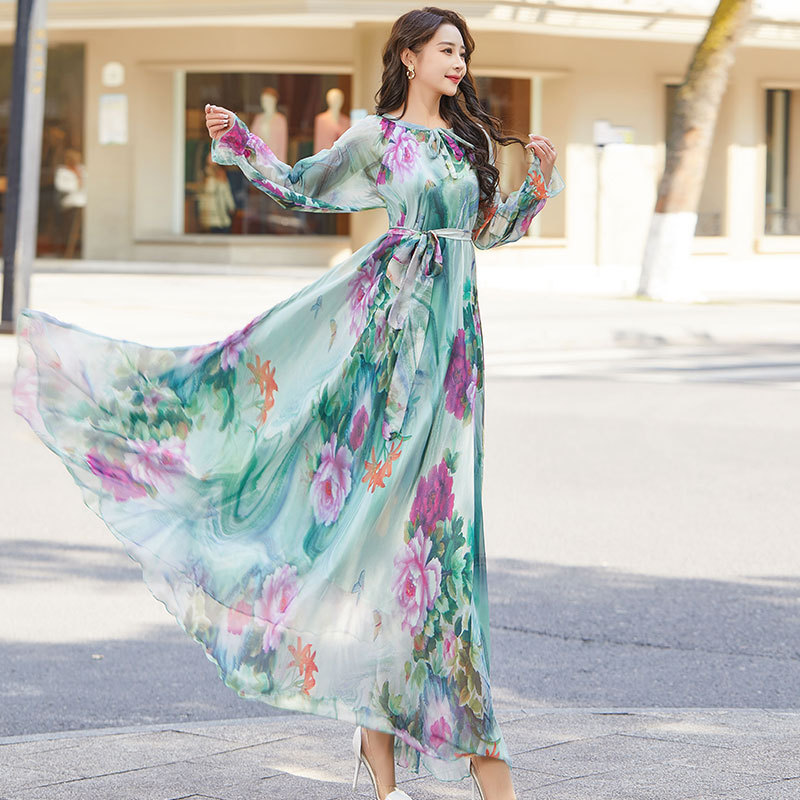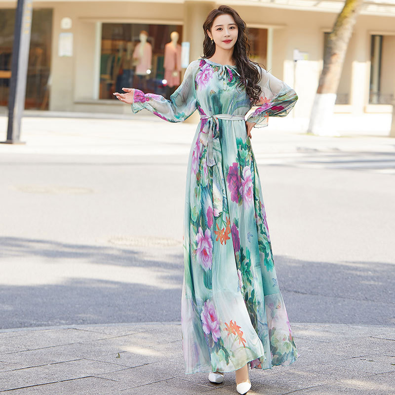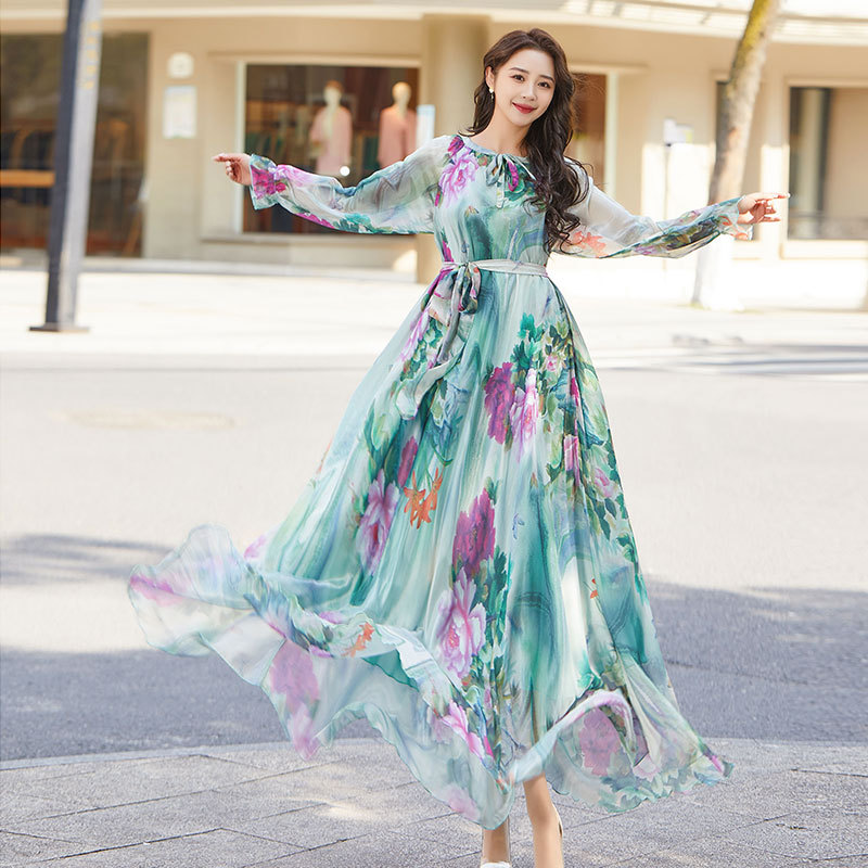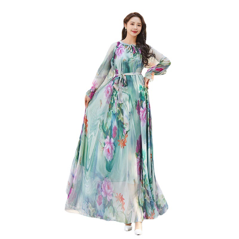 Chiếc đầm dáng dài tay lỡ, chất vải mỏng nhẹ tạo cảm giác thoải mái cho những ngày hè. Kiểu dáng phóng khoáng theo phong cách phương Tây, phù hợp khi dạo phố hay đi chơi biển. Bạn có thể mặc một mình hoặc kết hợp với áo khoác mỏng tùy thích. Vải có độ rũ nhẹ, tôn lên vẻ dịu dàng và nữ tính cho người mặc. | Tên sản phẩm: Váy Đầm Liền Thân Nữ Chất Liệu Vải Voan Dài Tay Hàng Mùa Hè Phong Cách Âu Mỹ Đồ Đi Biển Váy Maxi - Thời Trang Nữ | Mã sản phẩm: H5217 - Giá: 890.000đ | Mã nhà sản xuất: TARYUN-G03Hình ảnh sản phẩm