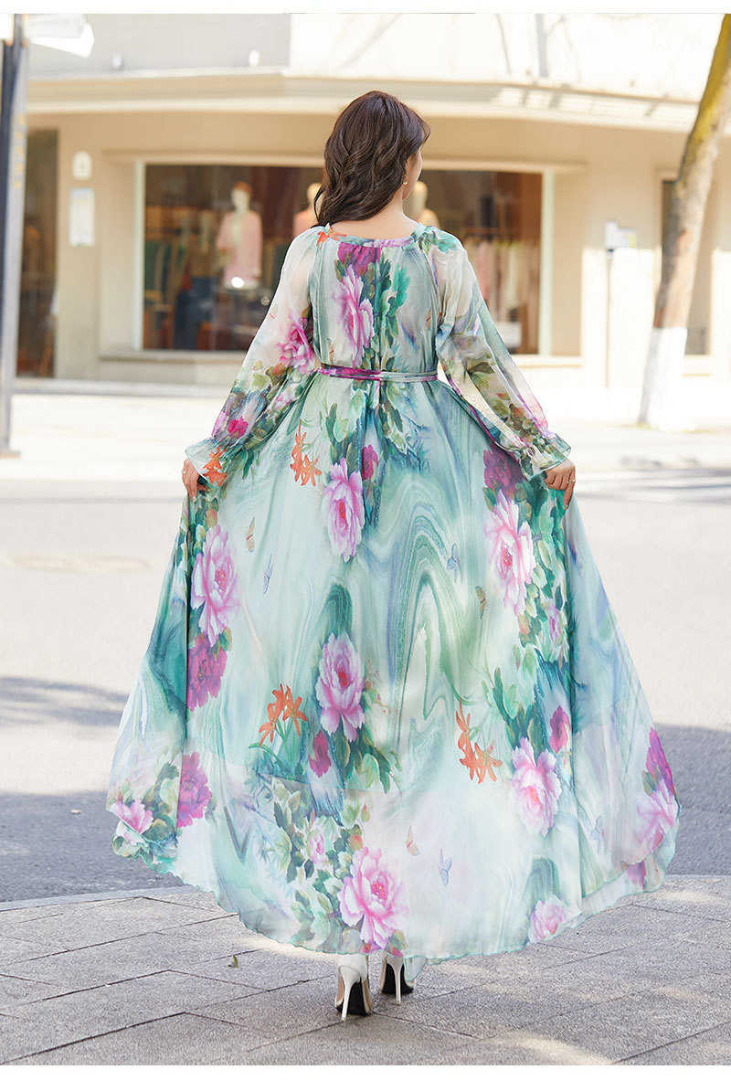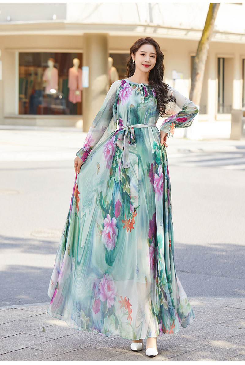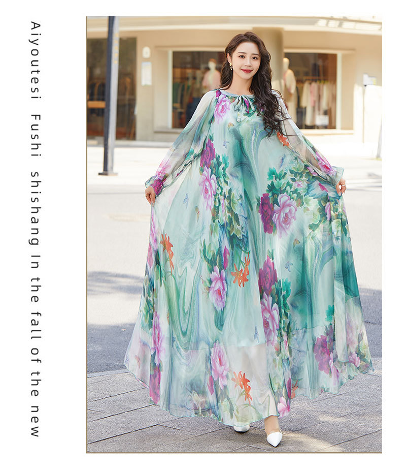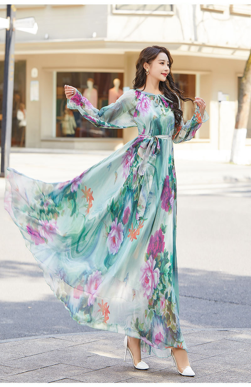 Chiếc đầm dáng dài tay lỡ, chất vải mỏng nhẹ tạo cảm giác thoải mái cho những ngày hè. Kiểu dáng phóng khoáng theo phong cách phương Tây, phù hợp khi dạo phố hay đi chơi biển. Bạn có thể mặc một mình hoặc kết hợp với áo khoác mỏng tùy thích. Vải có độ rũ nhẹ, tôn lên vẻ dịu dàng và nữ tính cho người mặc. | Tên sản phẩm: Váy Đầm Liền Thân Nữ Chất Liệu Vải Voan Dài Tay Hàng Mùa Hè Phong Cách Âu Mỹ Đồ Đi Biển Váy Maxi - Thời Trang Nữ | Mã sản phẩm: H5217 - Giá: 890.000đ | Mã nhà sản xuất: TARYUN-G03Hình ảnh sản phẩm