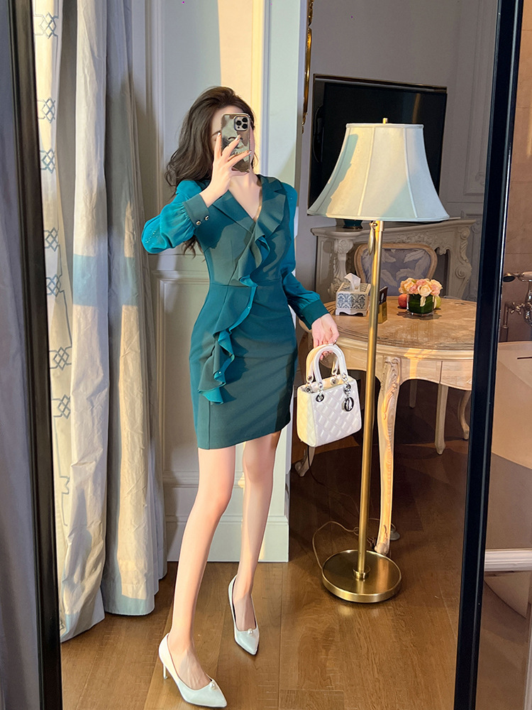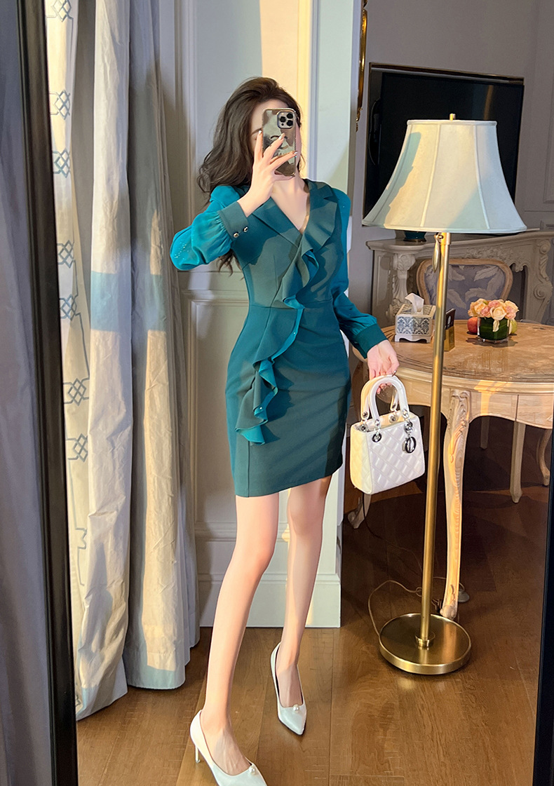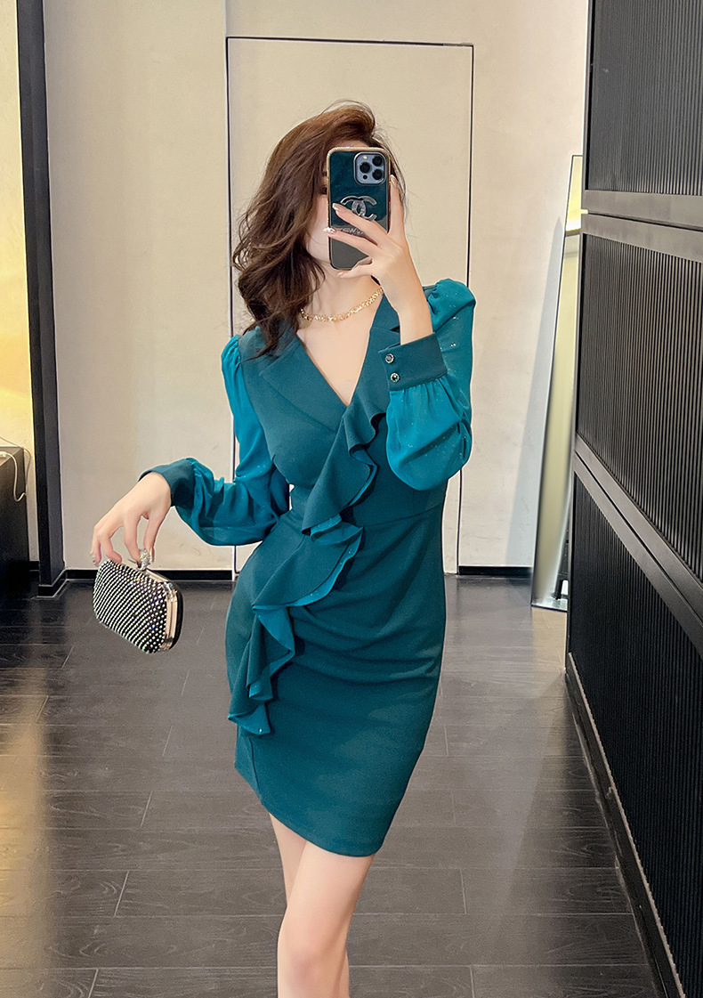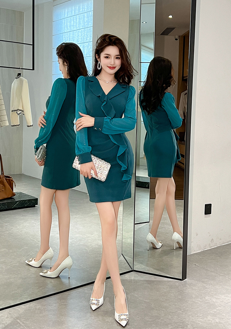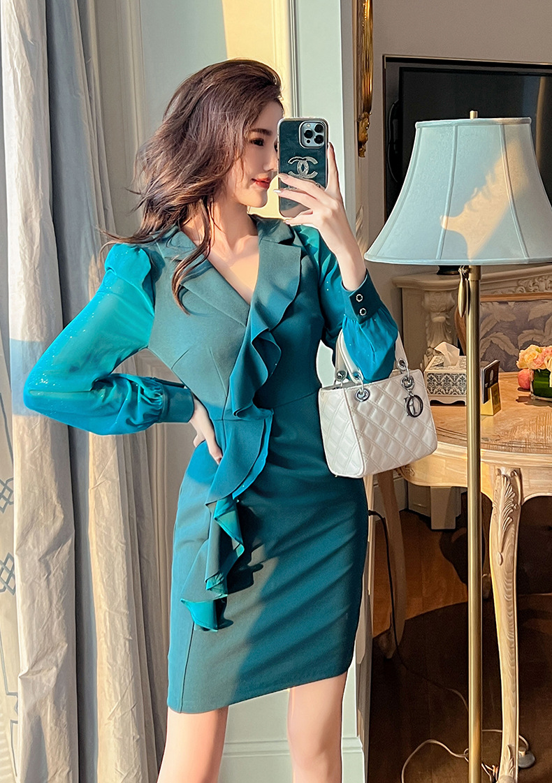 Chiếc váy này có kiểu dáng ôm dáng, phần cổ khoét sâu tạo nên điểm nhấn thanh lịch. Điểm nổi bật là đường viền tay và phần eo được thiết kế xếp lớp mềm mại, giúp tôn lên đường nét cơ thể một cách tinh tế. Thiết kế phần thân dưới ôm vừa phải, phù hợp để mặc đi làm hoặc dự những buổi gặp mặt. Bạn có thể phối cùng giày cao gót và một chiếc túa xách nhỏ để hoàn thiện bộ trang phục. | Tên sản phẩm: Váy Đầm Liền Thân Nữ Cổ Chữ V Hàng Mùa Xuân Thu Đông - Thời Trang Nữ | Mã sản phẩm: B1346 - Giá: 1.110.000đ | Mã nhà sản xuất: CHDG-G04Hình ảnh sản phẩm