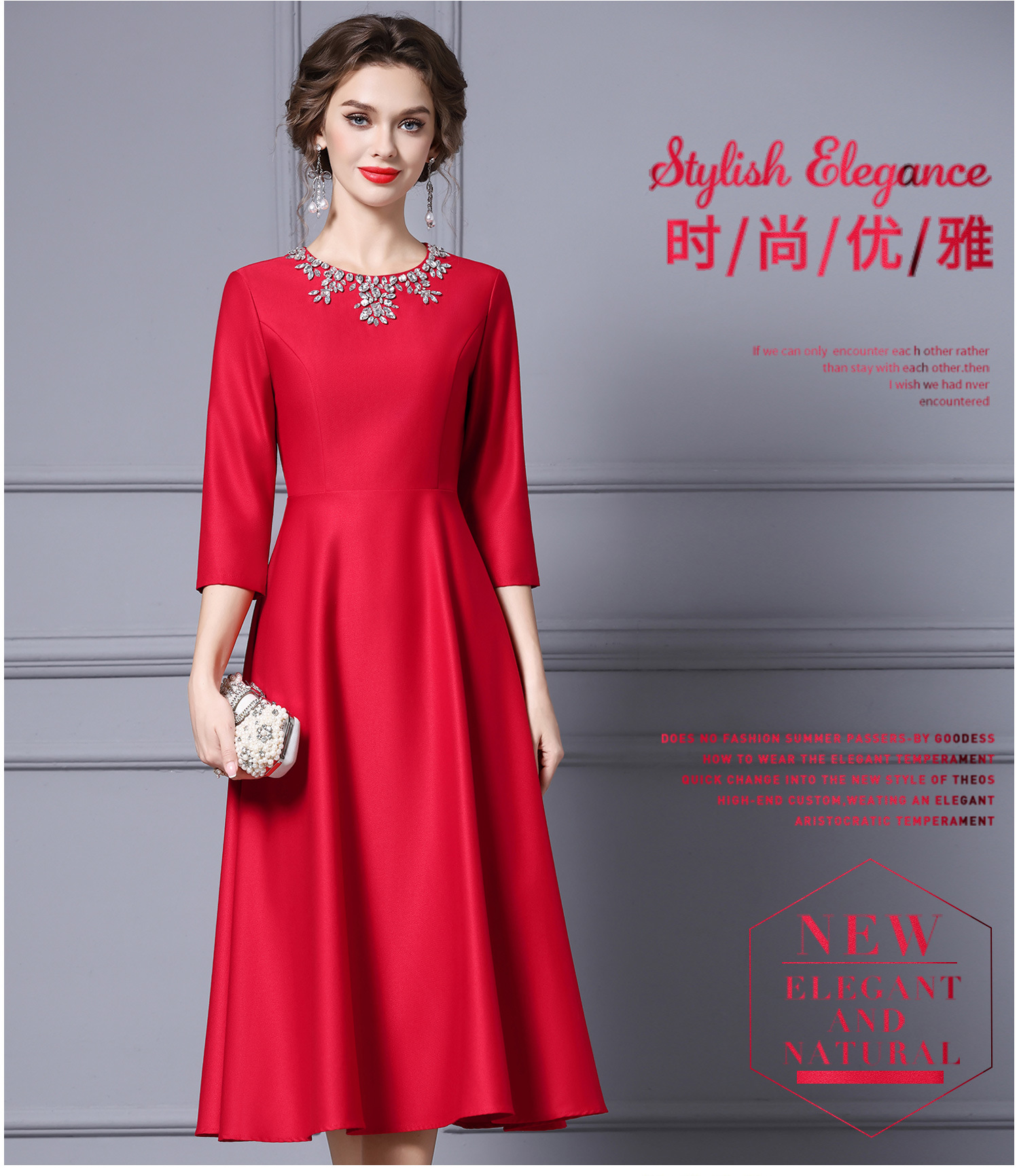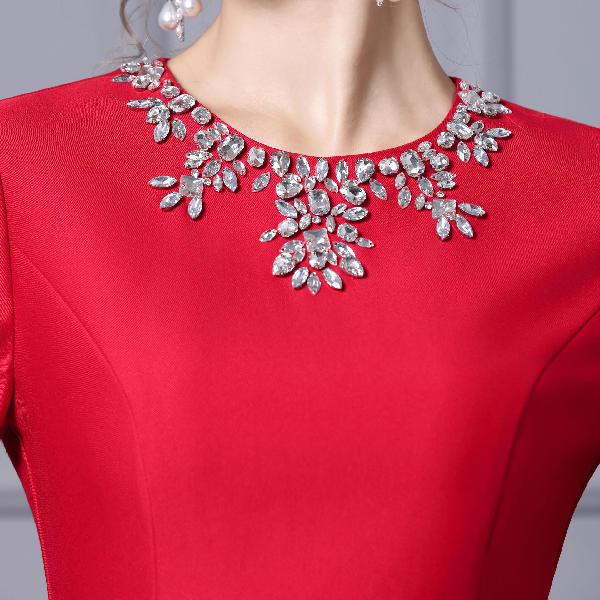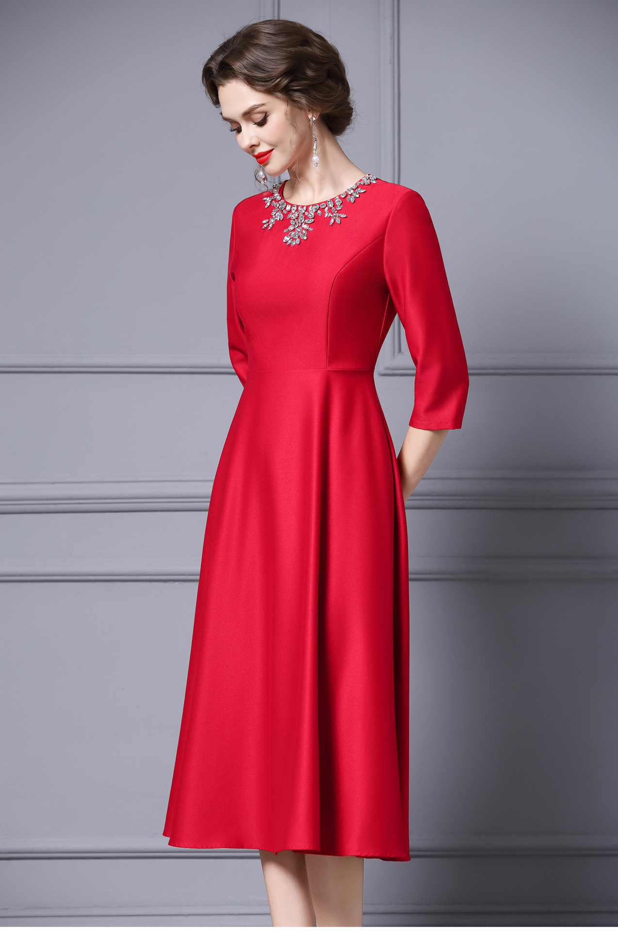 Chiếc váy dành cho những dịp quan trọng, với thiết kế dáng chữ A thanh lịch, dài qua gối phù hợp cho người có chiều cao. Trang trí tinh tế bằng các hạt đá lấp lánh gắn cẩn thận. Váy có màu đỏ nổi bật, được thiết kế cho mùa thu. Sản phẩm dễ dàng phối cùng giày cao gót và túi xách. Giữ gìn bằng cách giặt tay nhẹ nhàng và bảo quản nơi khô ráo. | Tên sản phẩm: Váy Đầm Liền Thân Nữ Dài Quá Gối Hàng Mùa Xuân Thu Đông - Thời Trang Nữ | Mã sản phẩm: A9845 - Giá: 2.870.000đ | Mã nhà sản xuất: SHDAP-G06Hình ảnh sản phẩm